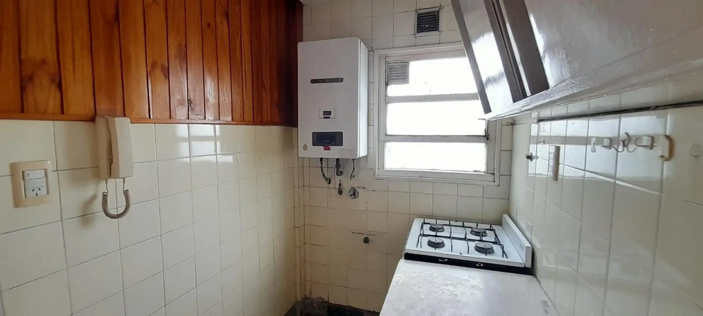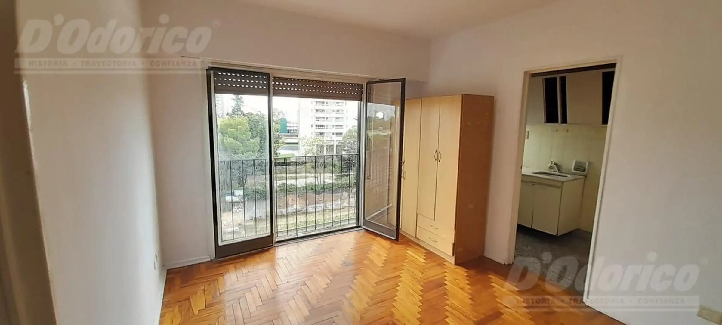 Kitnet para alugar em Caballito, com 1 ambiente, cozinha separada e banheiro completo. Vista lateral aberta, orientação norte e varanda do tipo balcão francês. Piso em parquet e armário embutido; o imóvel fica perto da estação Ferrocarril Sarmiento, da Av. Rivadavia, do Subte A e do centro comercial. Não aceitam animais de estimação. Para entrada: 1 mês adiantado e 1 mês de depósito em dólares. Contrato de 2 anos com reajuste trimestral pelo IPC; exigem renda comprovada que triplique o valor do