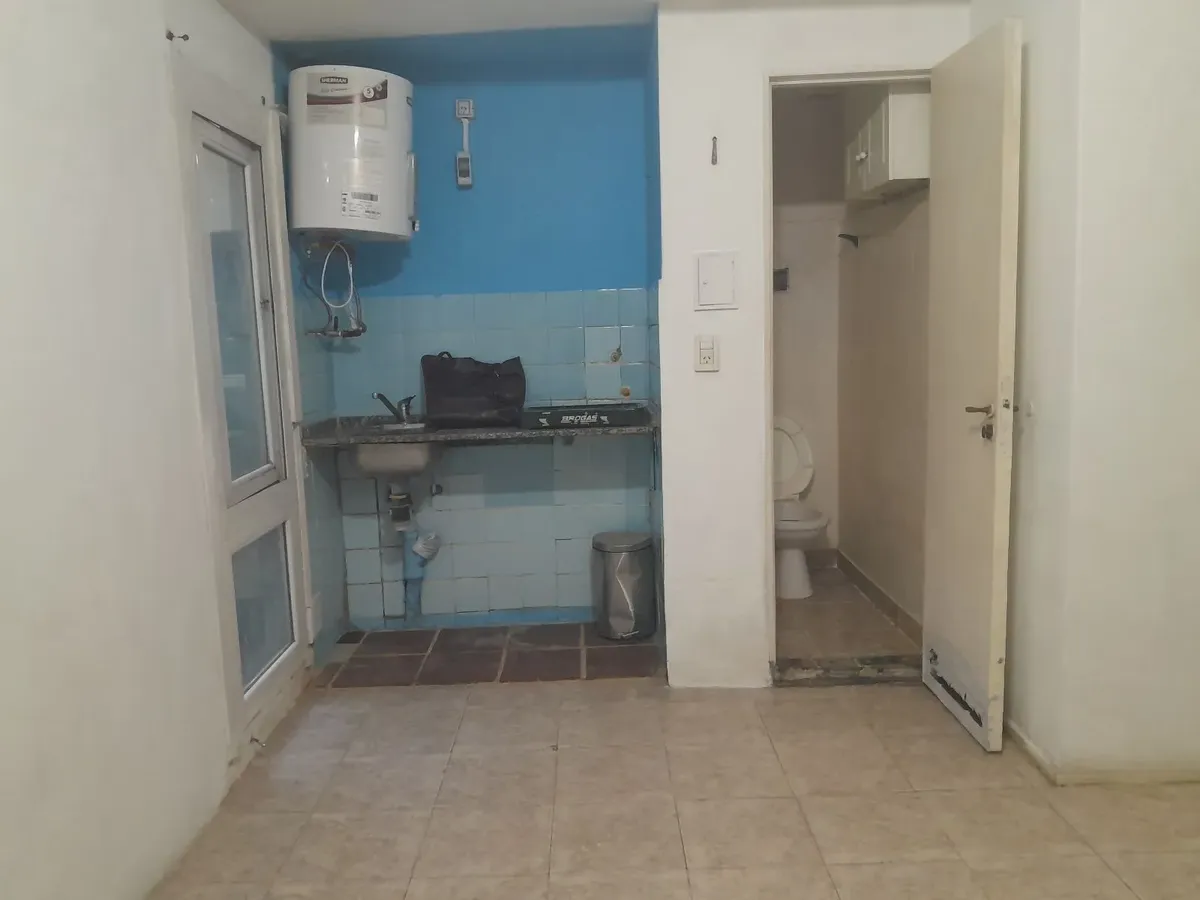 Kitnet para aluguel em Caballito, na zona do Parque Centenario. O anúncio indica despesas de condomínio baixas, fogão/anefo a gás e armário amplo. A unidade é apta para uso profissional.