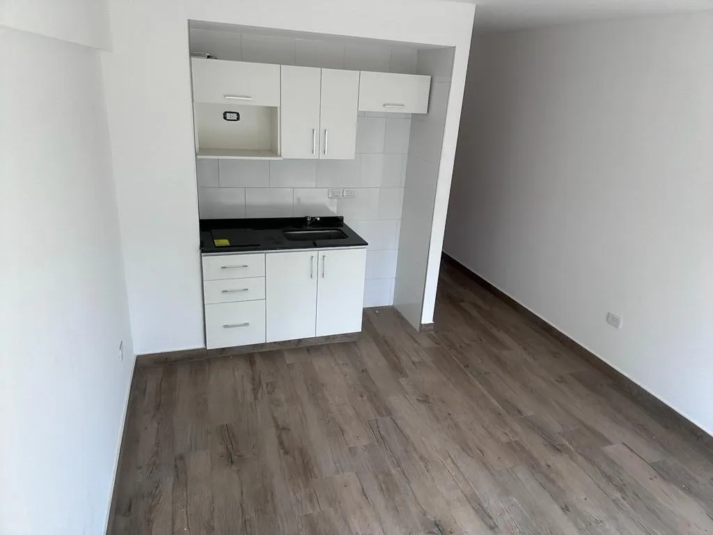 Kitnet de 1 ambiente em Caballito, de fundos, com balcão e vista aberta. Cozinha integrada com fogão elétrico (vitrocerâmico), bancada de mármore e armários sob e sobre a bancada com acabamento em alumínio. Banheiro completo com louças Roca e pisos flutuantes; água quente central e porteiro com visor. Não há conexão para máquina de lavar. A unidade pode ser usada para atividade profissional. Condomínio (expensas) e encargos não informados.