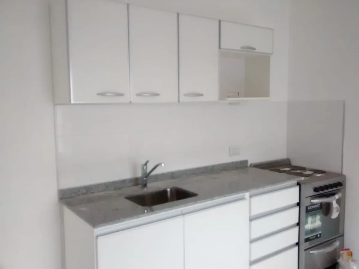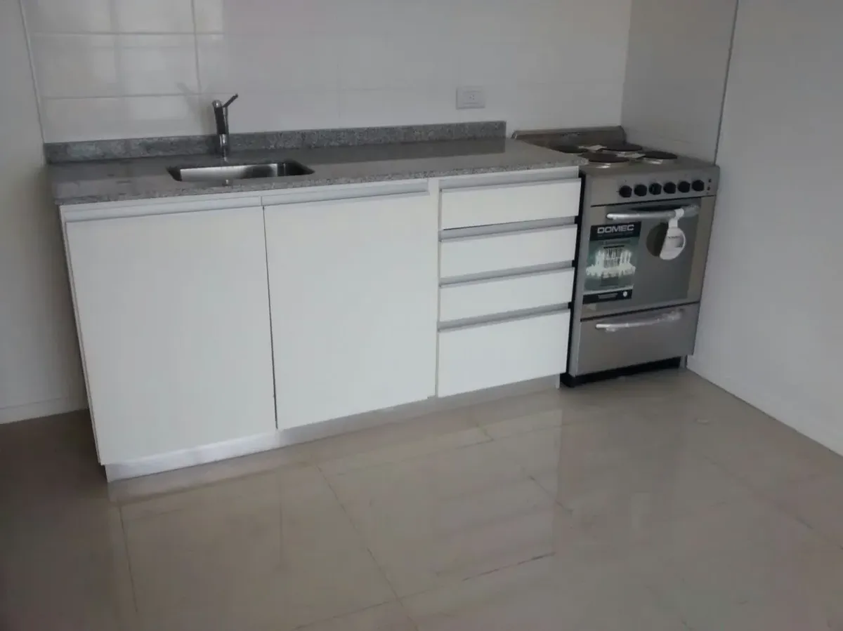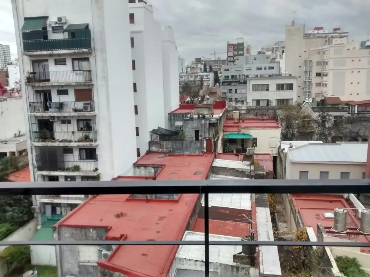 Kitnet divisível em Caballito, com contrafrente e orientação noroeste. Piso com porcelanato, banheiro completo com janela, água quente central por termotanque a gás e cozinha com armários sob e sobre a bancada, com fogão elétrico Domec de 4 bocas e forno, além de pia de mármore. Há ar-condicionado (2 unidades), placard com interior, elevador de última geração e hall de entrada; o imóvel inclui varanda, área de churrasco (parrilla) e solário no prédio. O aluguel é a partir de maio (imóvel liberad