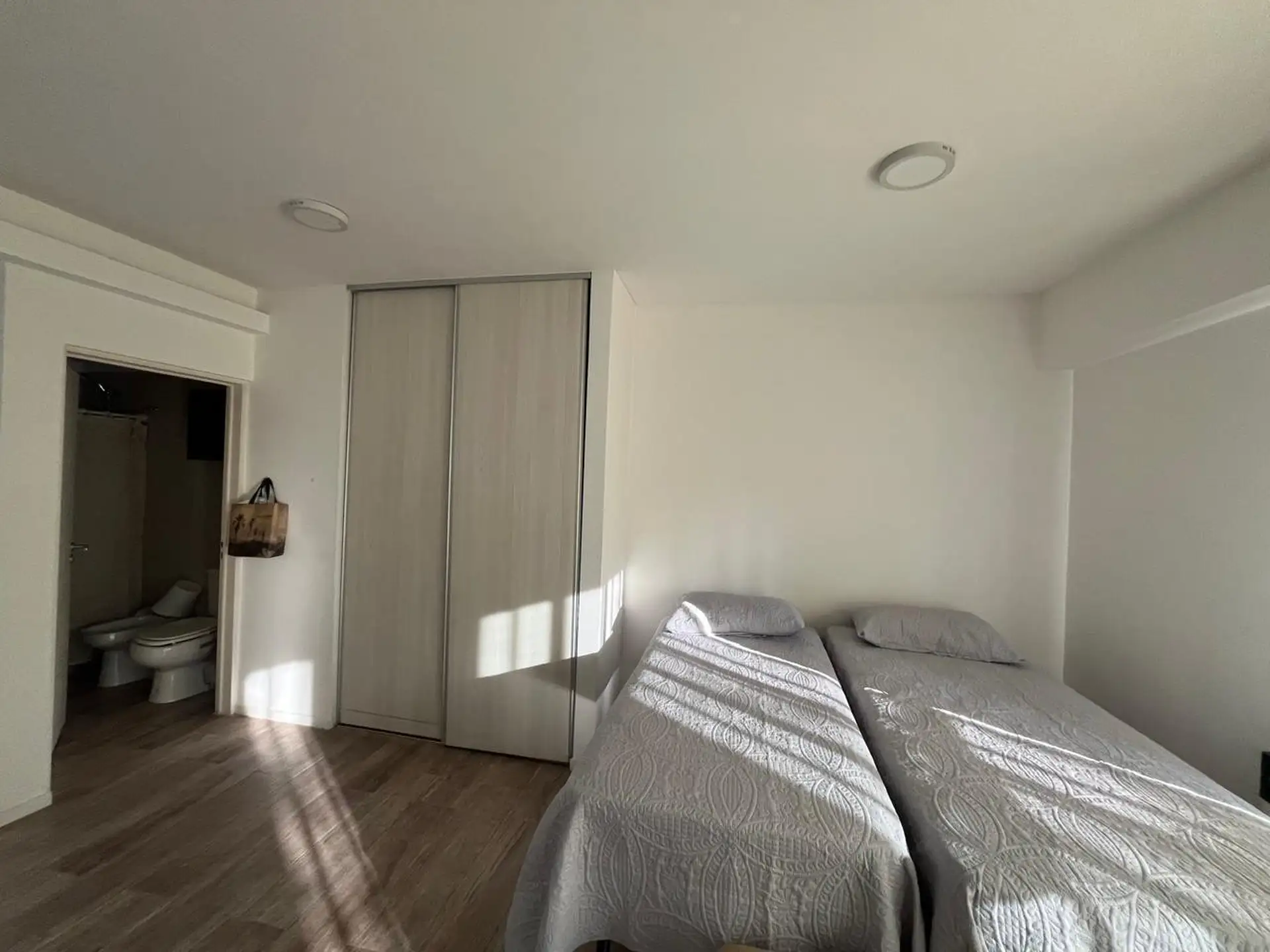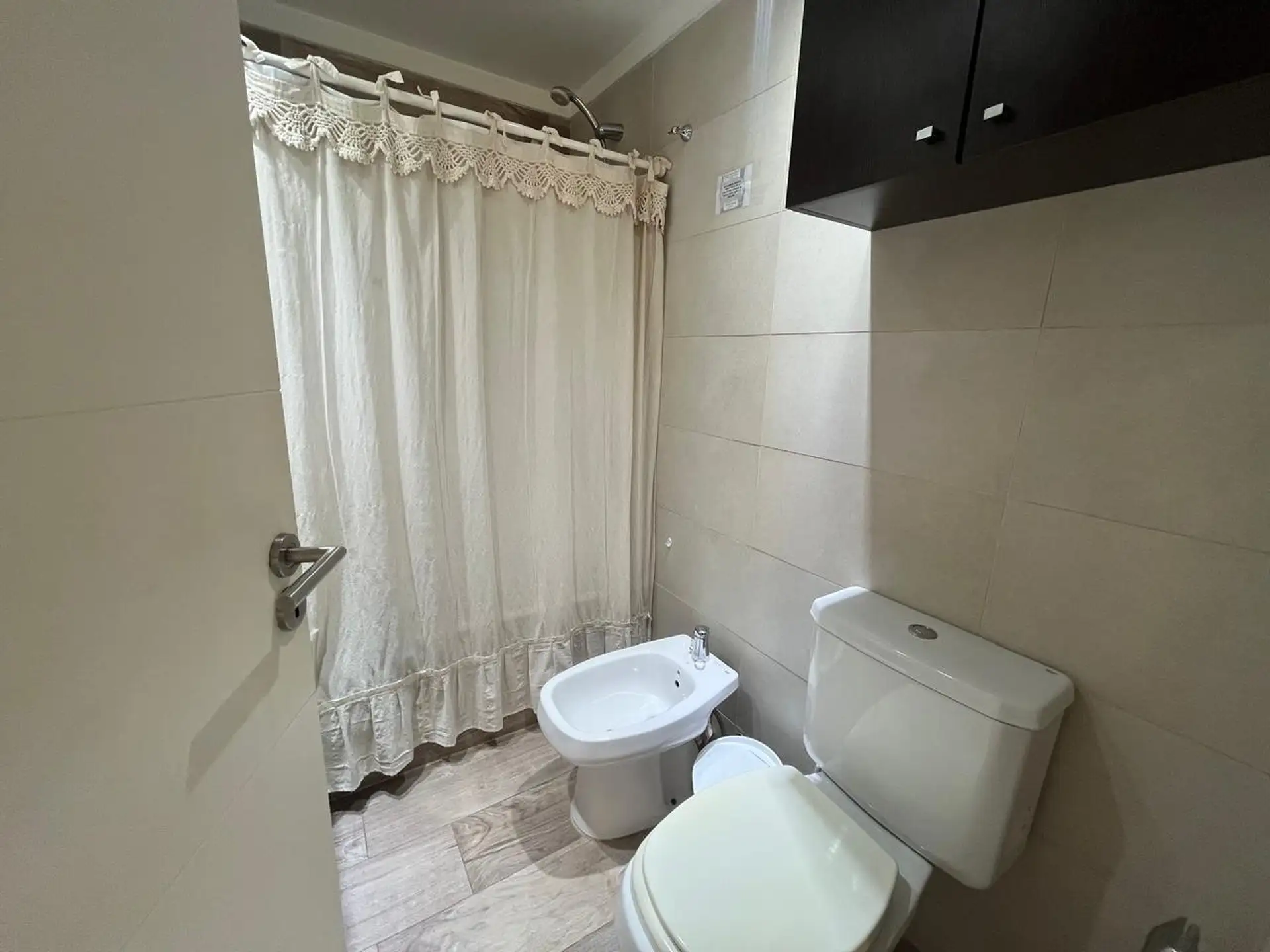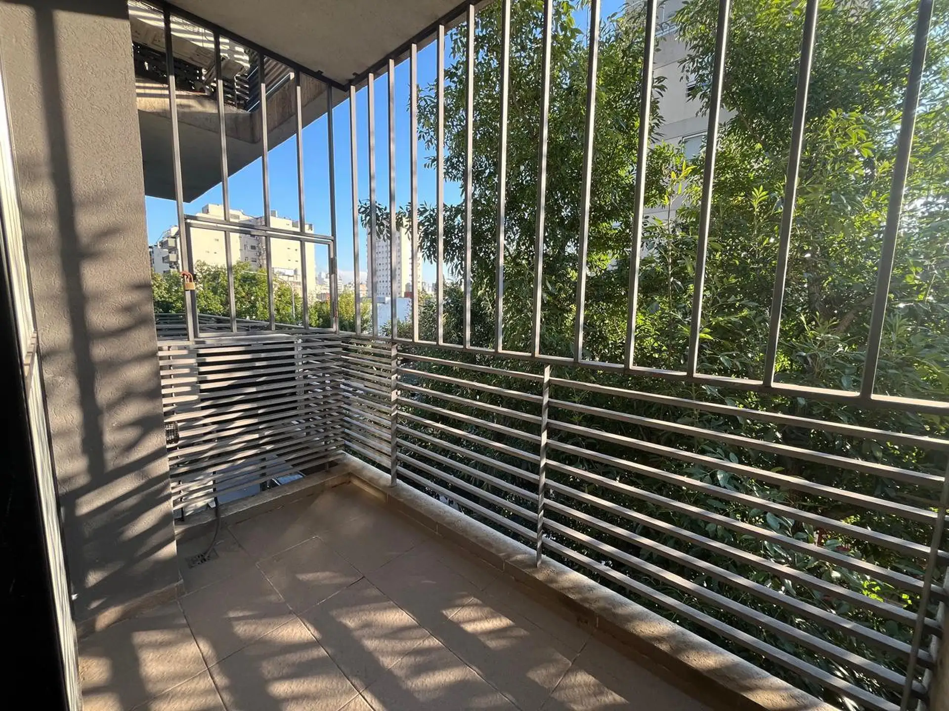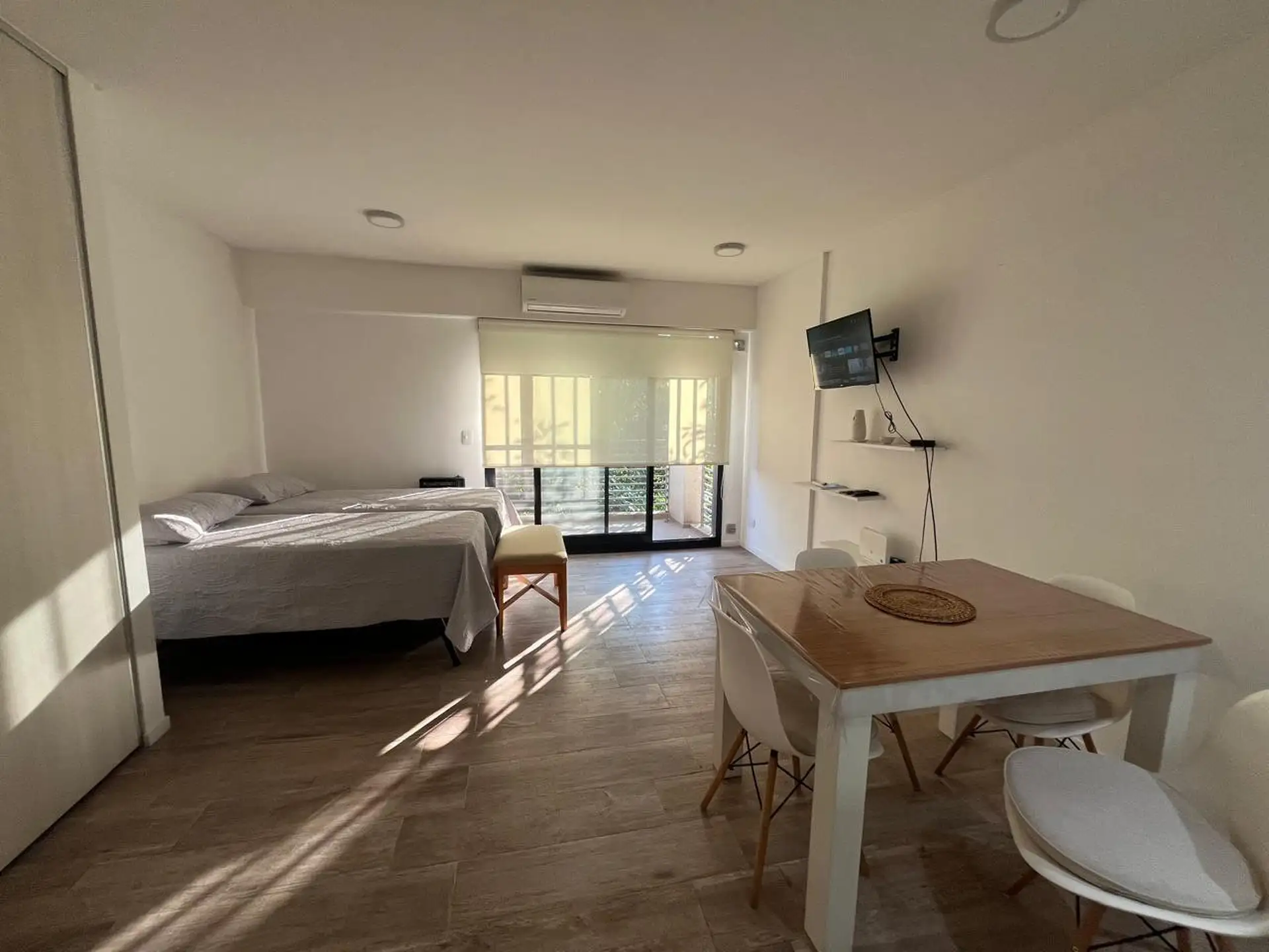 Apartamento de 1 ambiente com 6 m x 3,50 m, mobiliado e com armário embutido. Varanda de 3 m x 1,10 m, de frente para a rua. Possui ar-condicionado quente/frio e aquecedor; cozinha com armários na parte inferior e cristaleira, com área de lavanderia integrada. Banheiro completo com banheira. O prédio tem terraço de uso comum, área de churrasco e solarium.