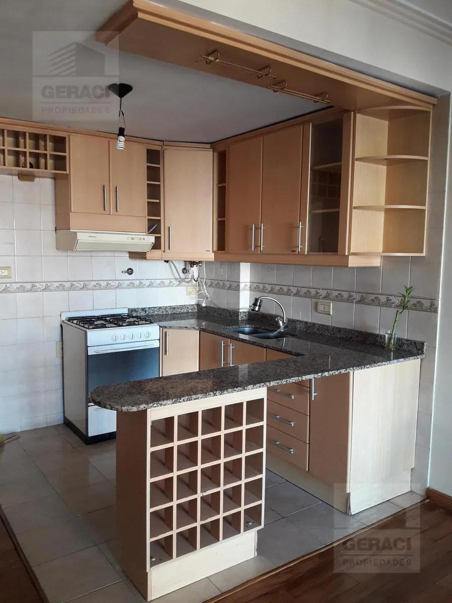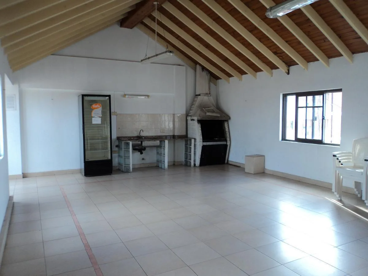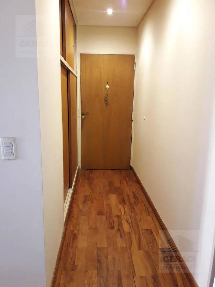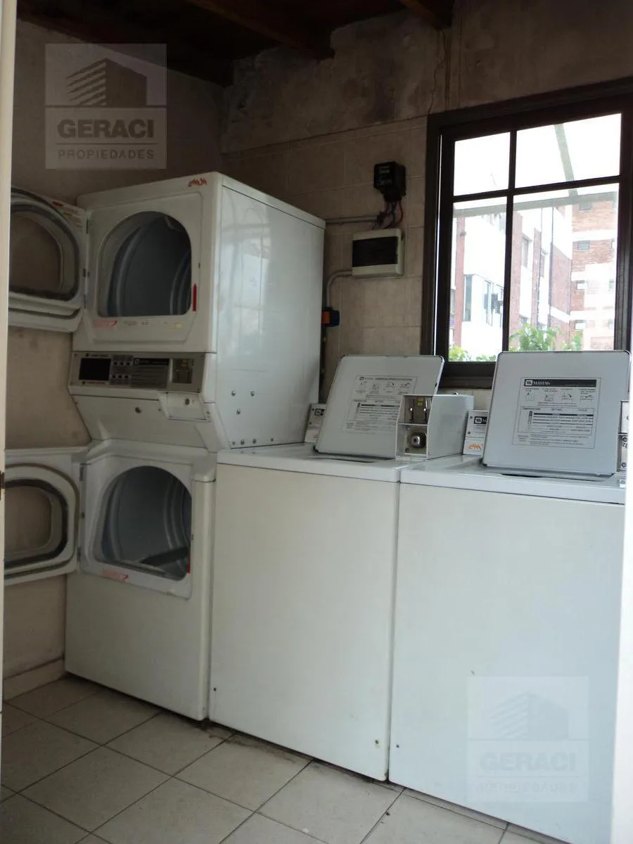 Kitnet de 1 ambiente com varanda de frente para a rua. Possui cozinha americana com armários aéreos e na parte inferior, amplo armário no hall de entrada e banheiro com box/vaso de lavatório e banheira. Há área de serviço com lavadora automática no edifício, além de terraço e salão comunitário com área de churrasco (parrilla).