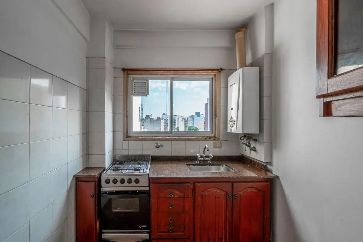 Kitnet mobiliada em Caballito, em unidade de fundos (contrafrente). Inclui cozinha separada, TV LED e ar-condicionado. O valor do aluguel inclui condomínio, água, ABL e internet. O imóvel fica na rua Colpayo, a 2 quadras das Av. Rivadavia e Acoyte.