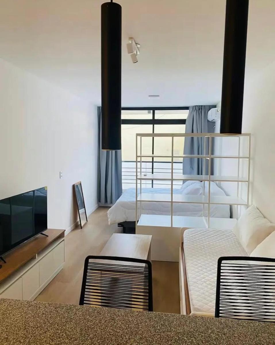 Kitnet de 1 ambiente com 33 m² cobertos e cerca de 38 m² totais, no 1º andar (por escada), de frente para a rua, com orientação ao norte. Possui cozinha com móveis planejados acima e abaixo da bancada, área principal com armários embutidos e 1 banheiro completo. Fica na rua Fraga, entre Av. Jorge Newbery e Maure, em Chacarita.