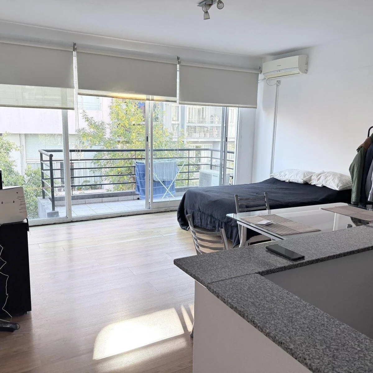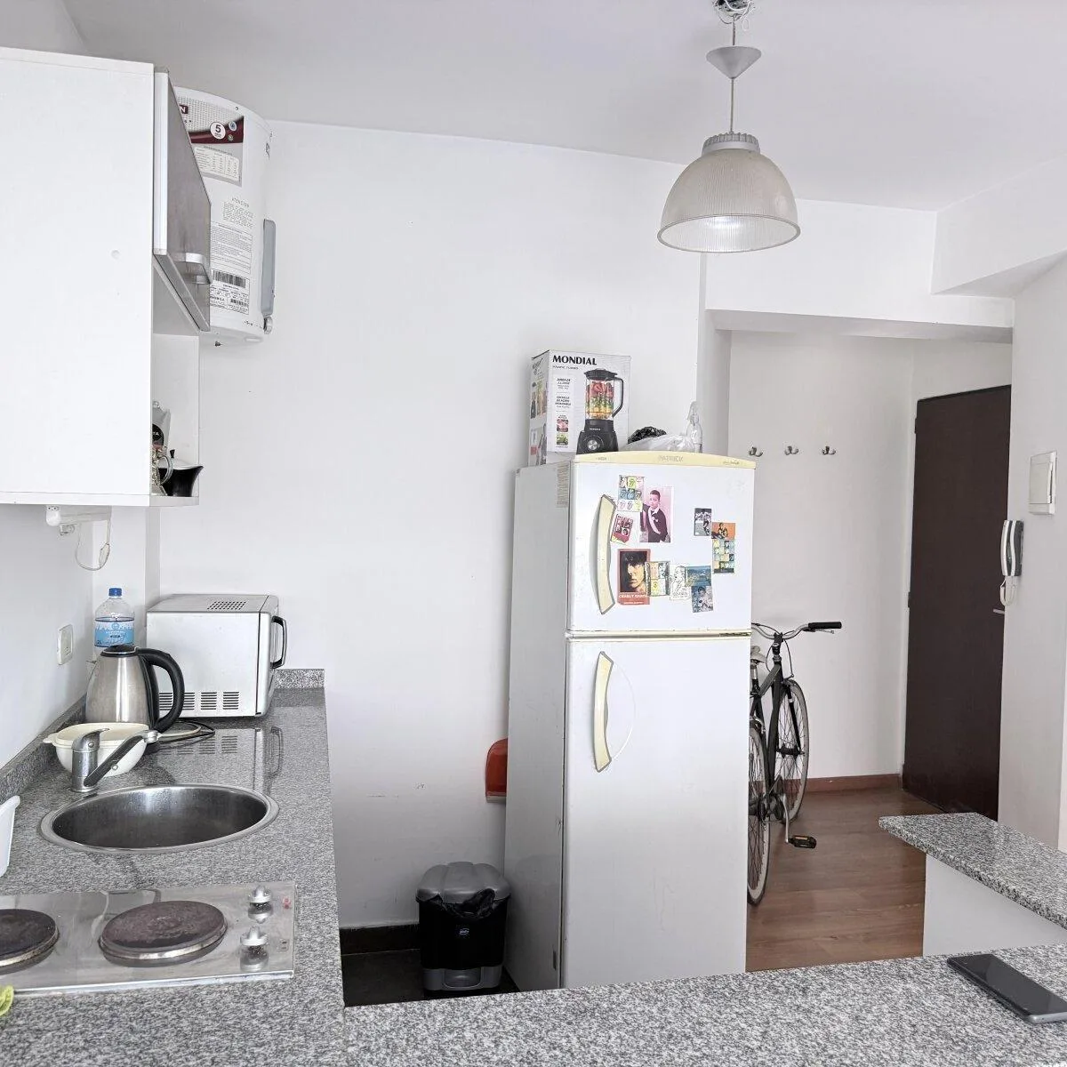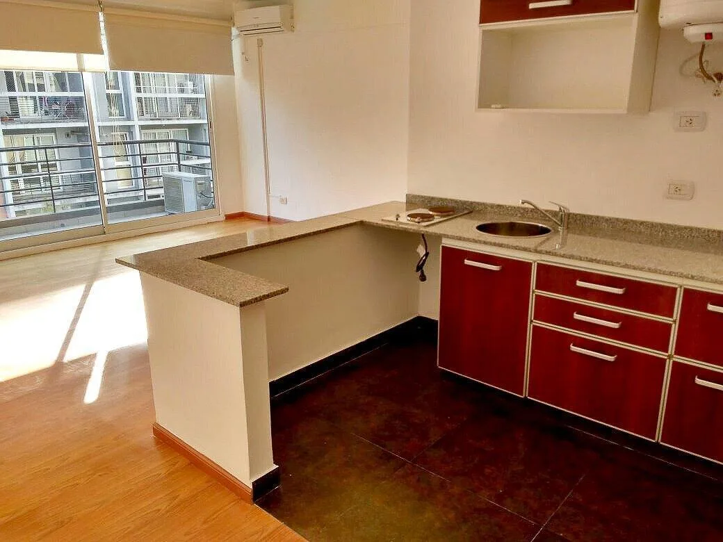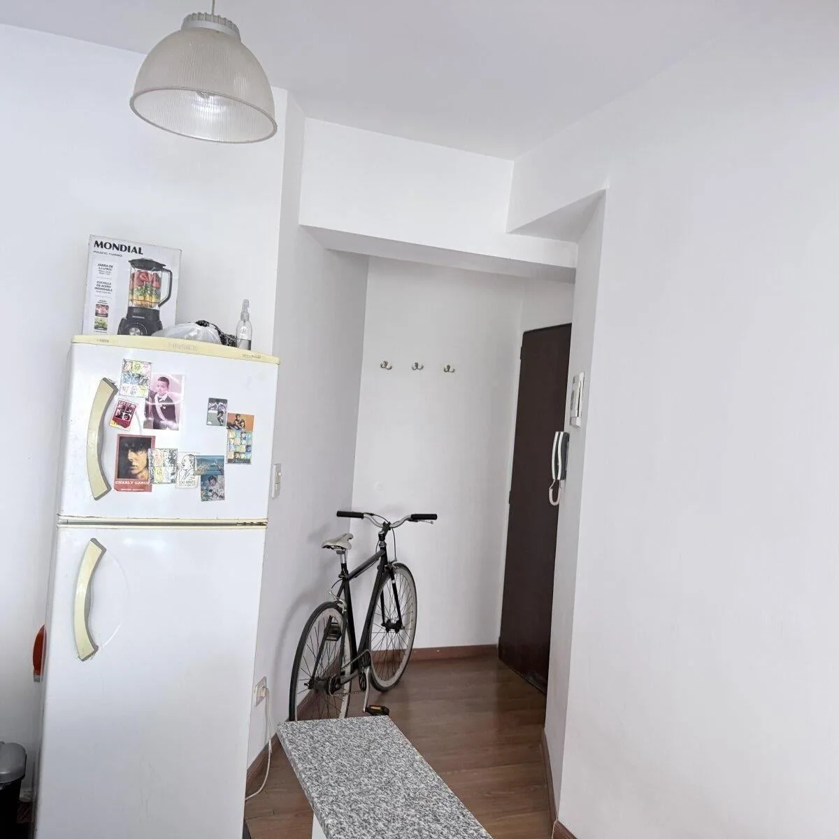 Kitnet para aluguel, apto profissional, no 4º andar de frente para a rua, com orientação norte e varanda. Cozinha elétrica com móveis sob a bancada e banheiro completo com conexão para máquina de lavar. Espaço principal amplo e flexível, sem armário. Acesso por elevador. Contrato de 2 anos com reajuste trimestral; exigem-se garantia por propriedade e seguro fiança, além de renda comprovável.
