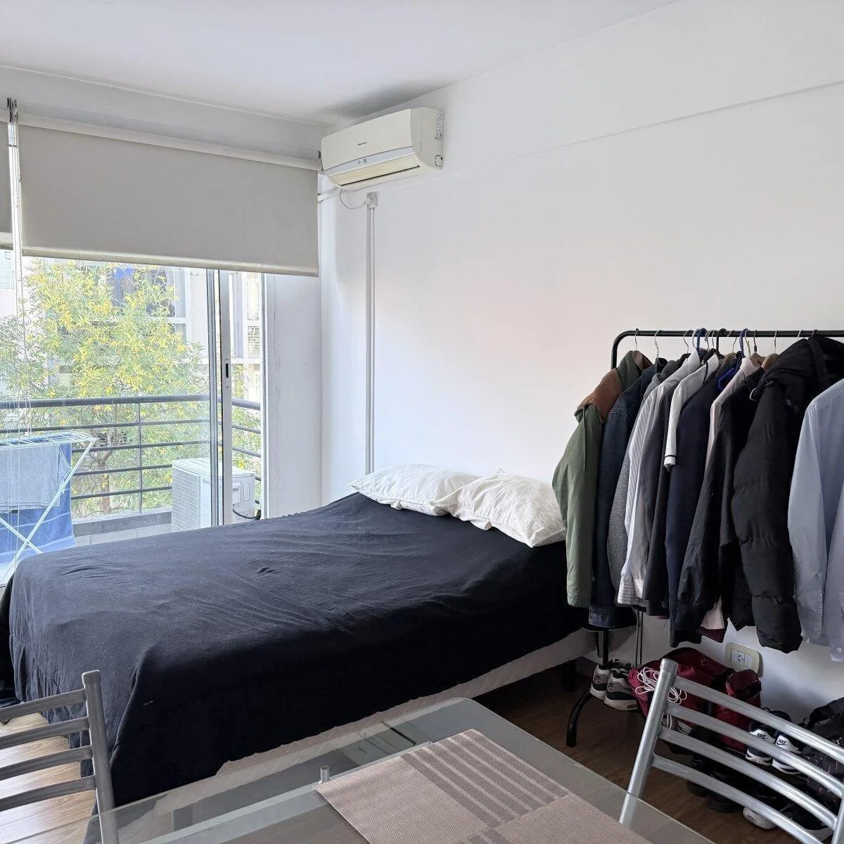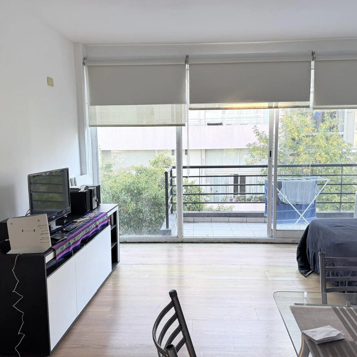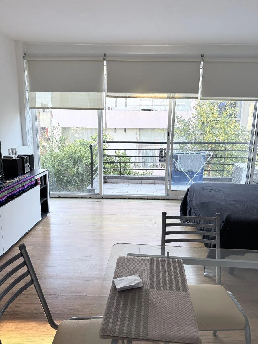 Kitnet para aluguel, apto profissional, no 4º andar de frente para a rua, com orientação norte e varanda. Cozinha elétrica com móveis sob a bancada e banheiro completo com conexão para máquina de lavar. Espaço principal amplo e flexível, sem armário. Acesso por elevador. Contrato de 2 anos com reajuste trimestral; exigem-se garantia por propriedade e seguro fiança, além de renda comprovável.