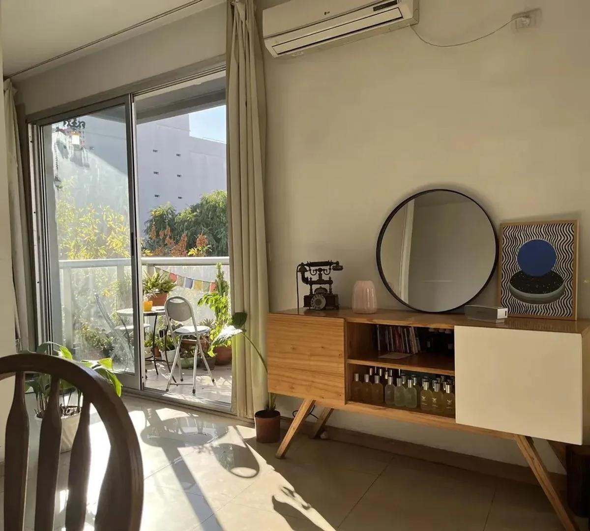 Loft de um ambiente com 47 m² em Chacarita. Unidade totalmente reformada, mobiliada com cama queen, móveis e divisor de ambientes em 3 partes com biblioteca. Inclui TV de 42 polegadas, ar-condicionado, cozinha elétrica com 4 bocas, forno elétrico, micro-ondas e cafeteira.