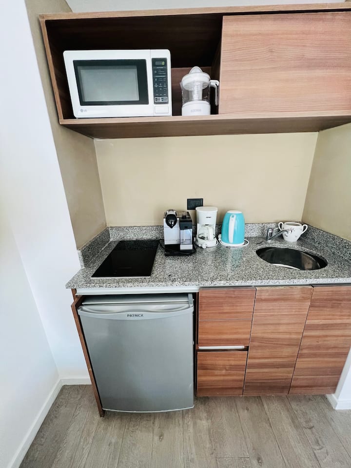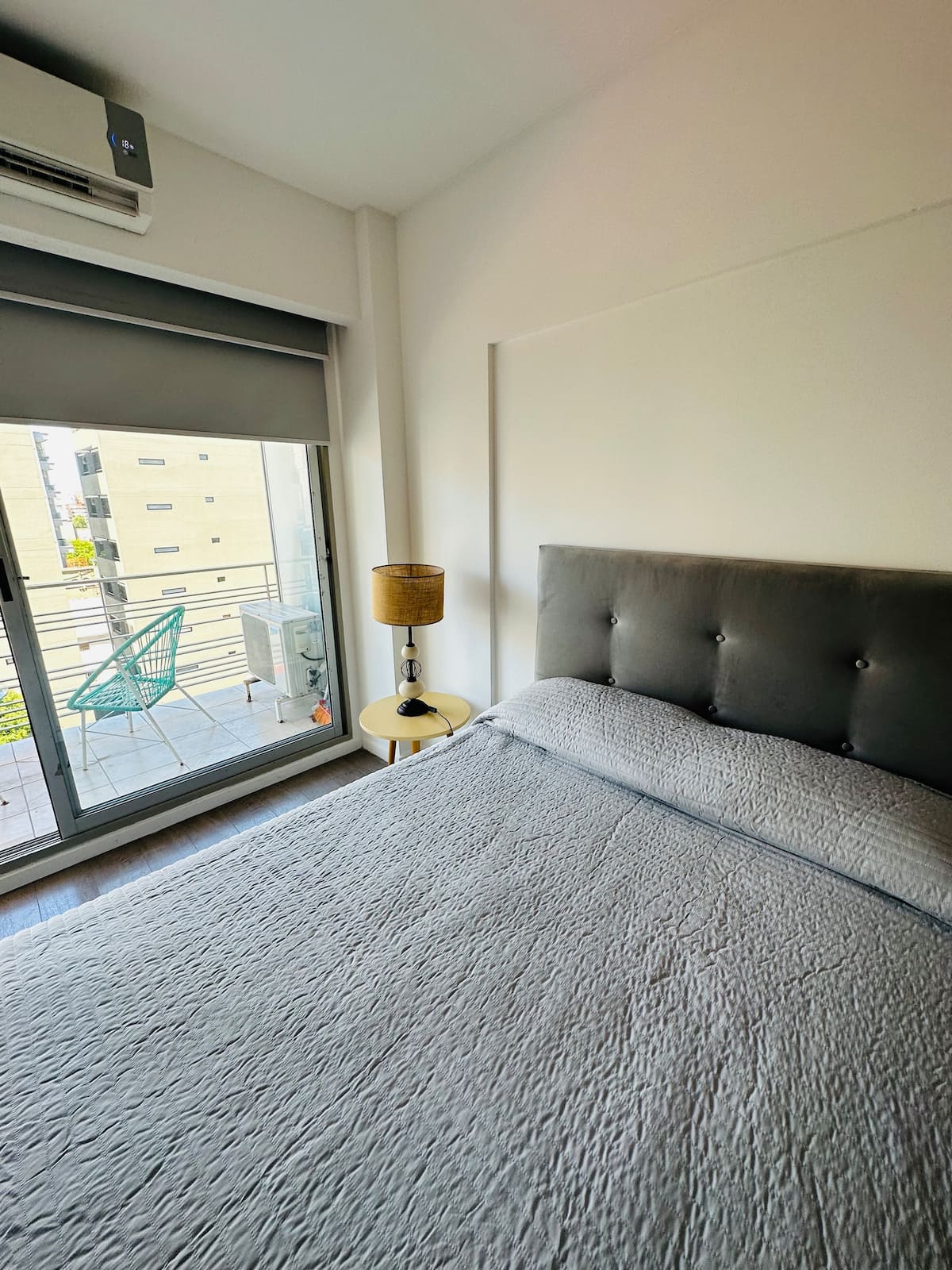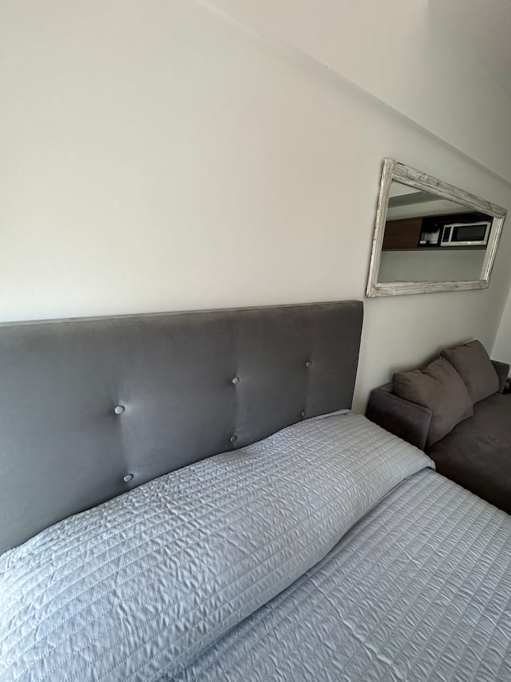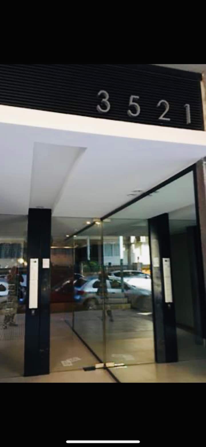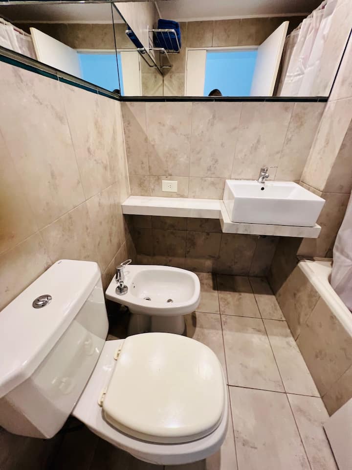 Apartamento de 1 ambiente em Chacarita, no 7º andar, com boa insolação e vista. Prédio novo e silencioso. O apartamento tem decoração minimalista e conta com recursos para estadias.