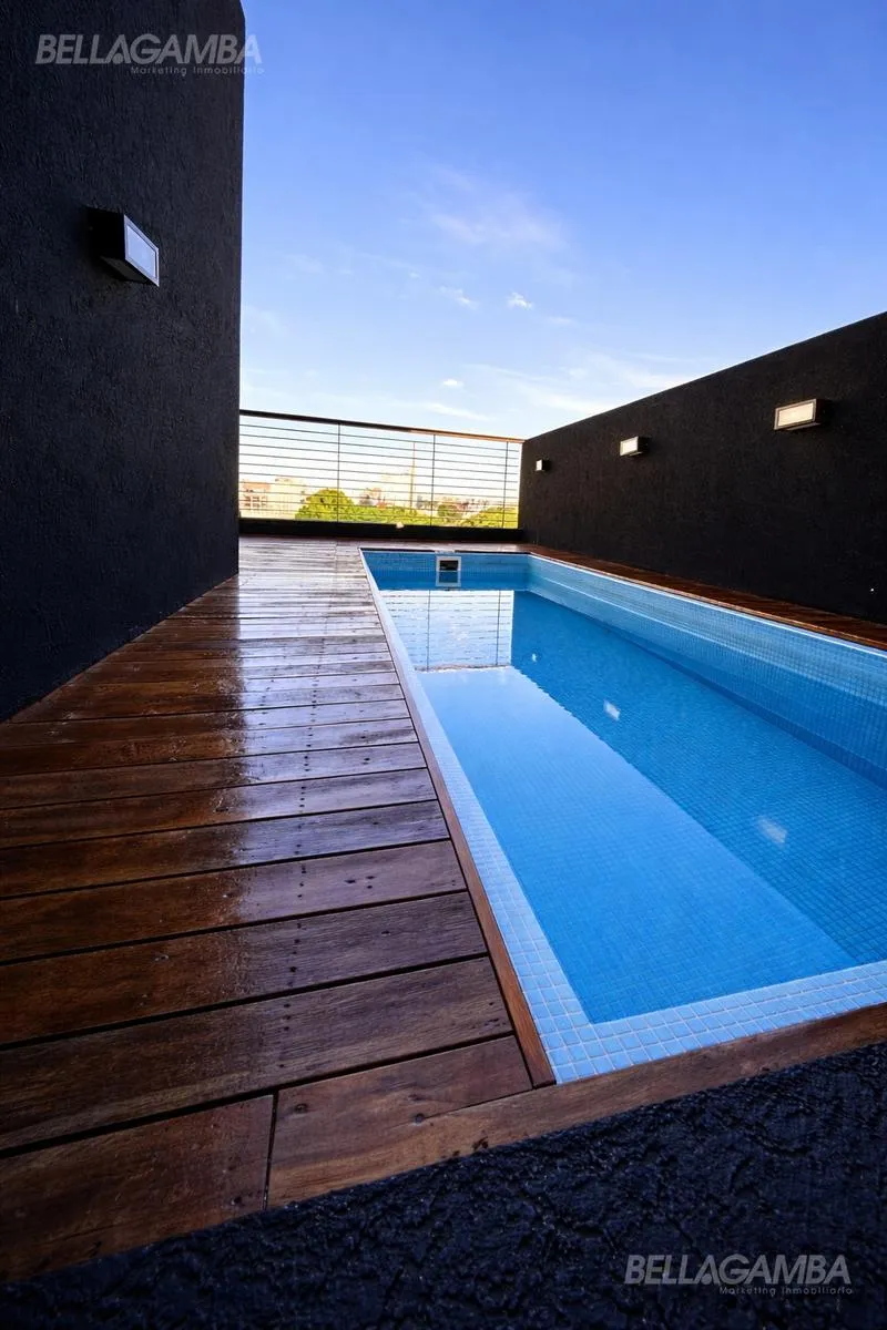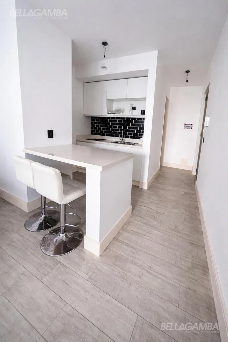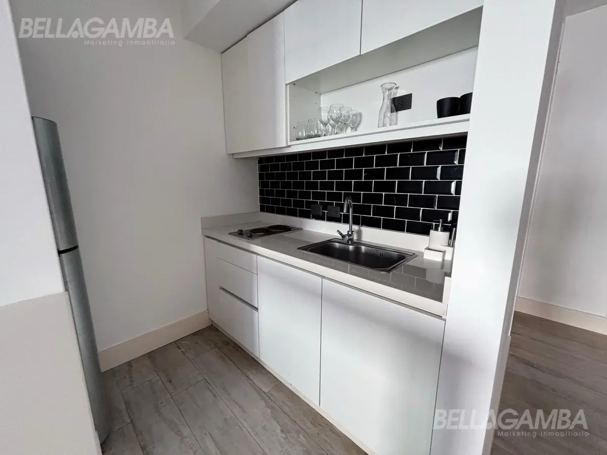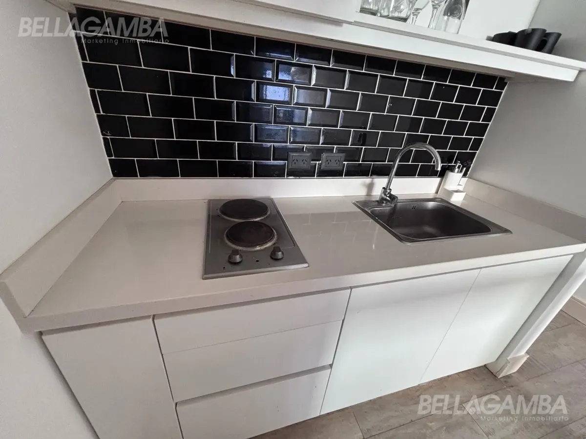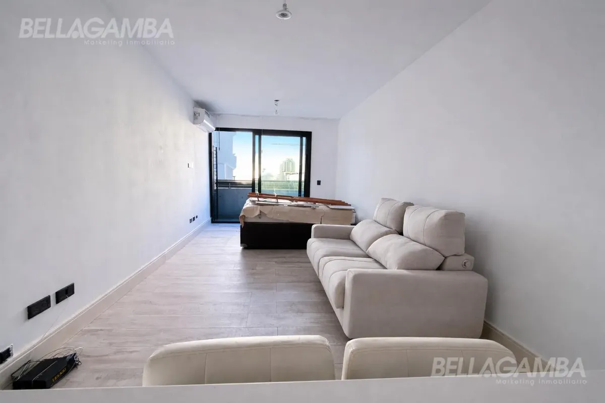 Apartamento tipo kitnet em Chacarita, de fundos (contrafrente), com varanda. Edifício novo com cerca de 2 anos, com piscina, área de churrasco e lavanderia, além de solário e salão comunitário (SUM). Cozinha equipada e varandas para área externa. La metragem e as superfícies informadas dependem do proprietário; o anunciante não garante a exatidão.