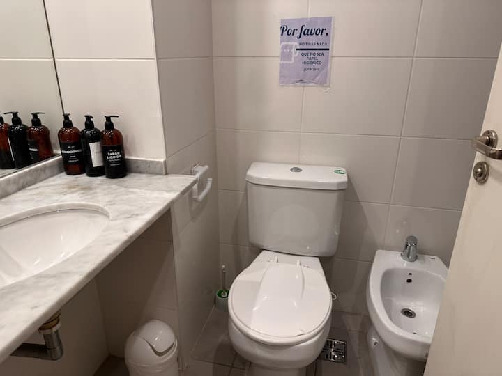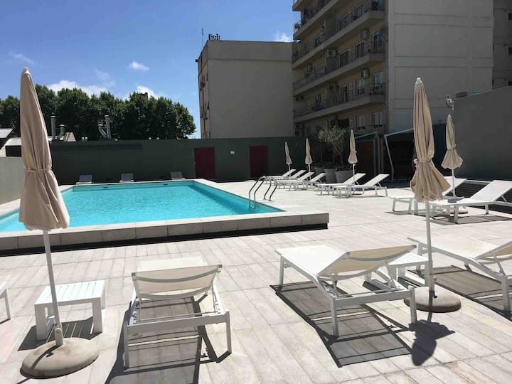 Kitnet em edifício com segurança, academia, piscina (na temporada de verão) e área de lavanderia. Fica na Av. Corrientes, a poucos metros da Movistar Arena, com ligação ao metrô que passa pela Av. Corrientes. O apartamento tem cama queen (sommier), Smart TV de 32”, fogão elétrico, forno micro-ondas, torradeira e chaleira elétrica. A hospedagem permite no máximo 2 pessoas, sem fumar.