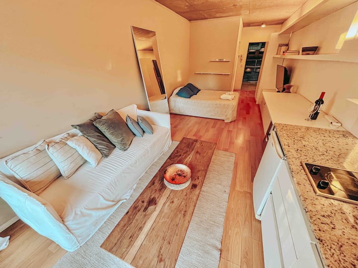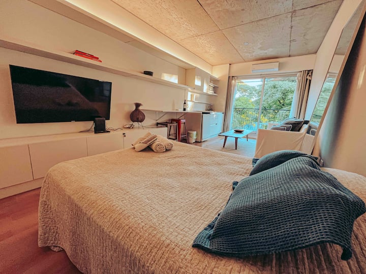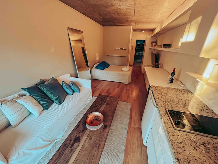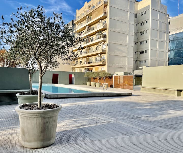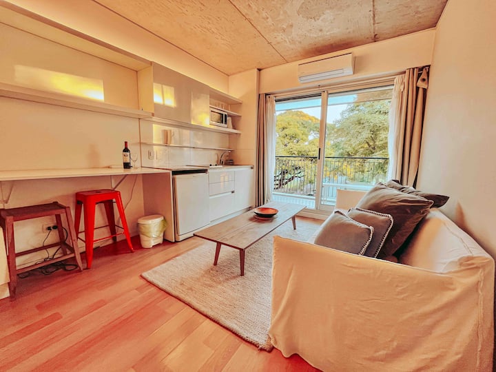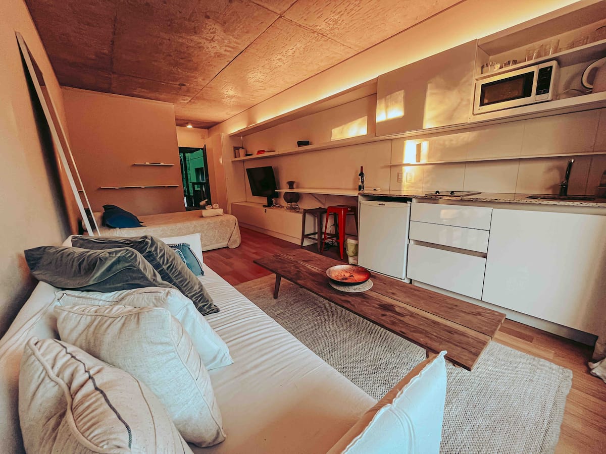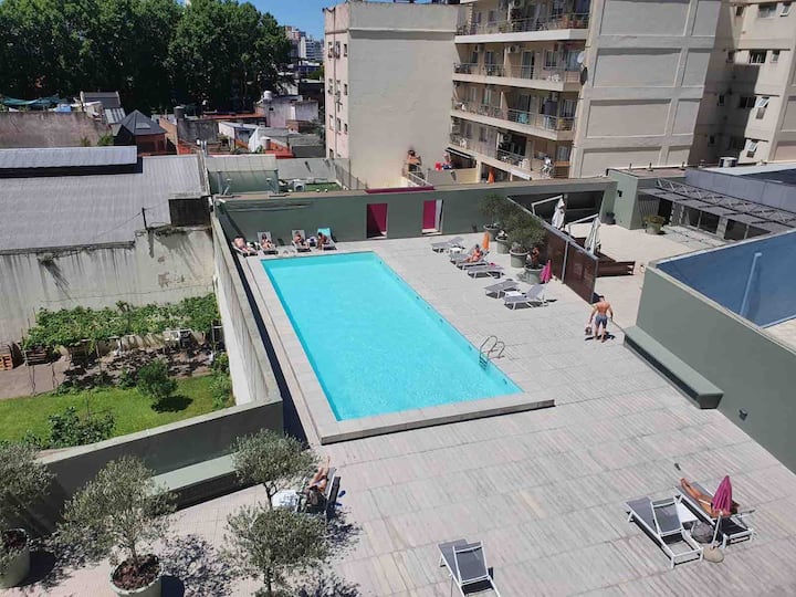 Kitnet em torre em Chacarita. Para estadias de 20 dias ou mais, há política de consumo de eletricidade: se o uso durante a estadia ultrapassar 500 kWh, pode haver cobrança adicional pelo excedente. Para entrada, é necessário enviar previamente a identificação de todos os passageiros para cadastro no prédio e liberação do acesso.