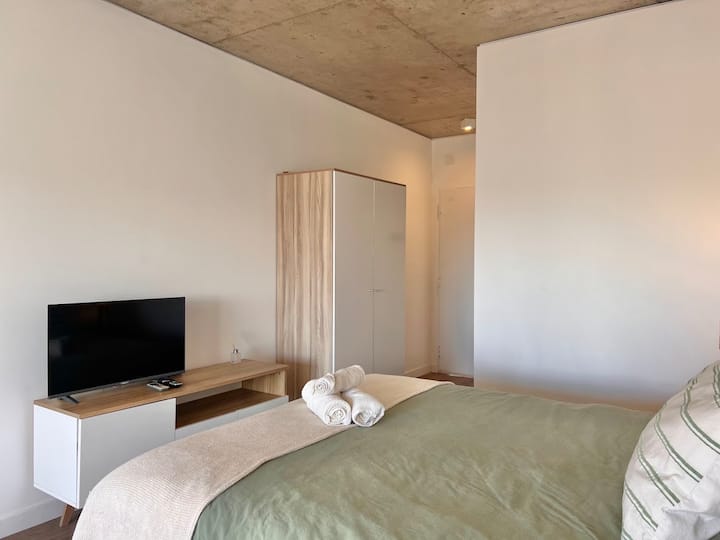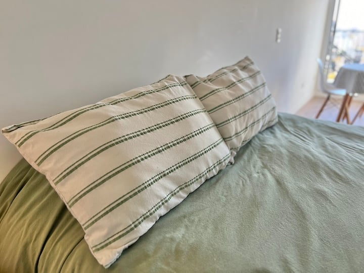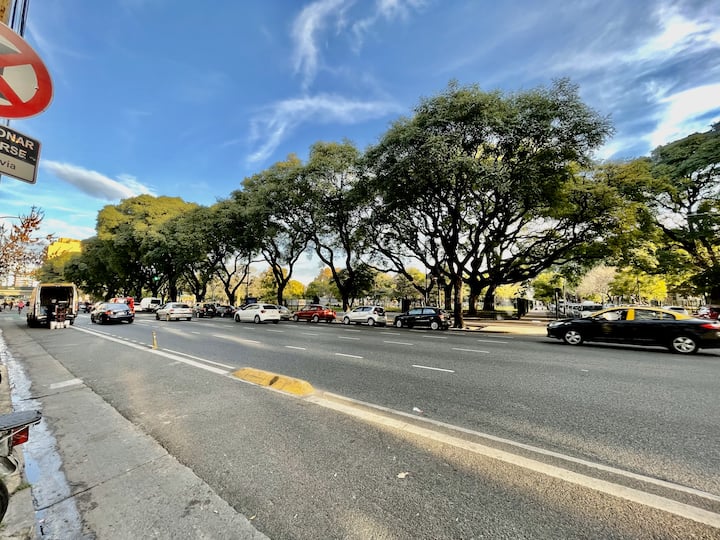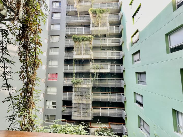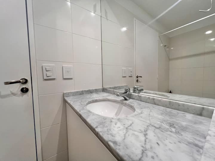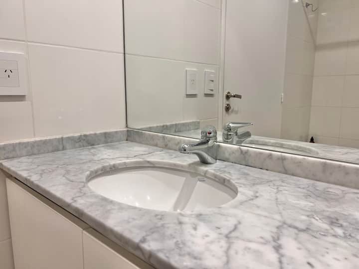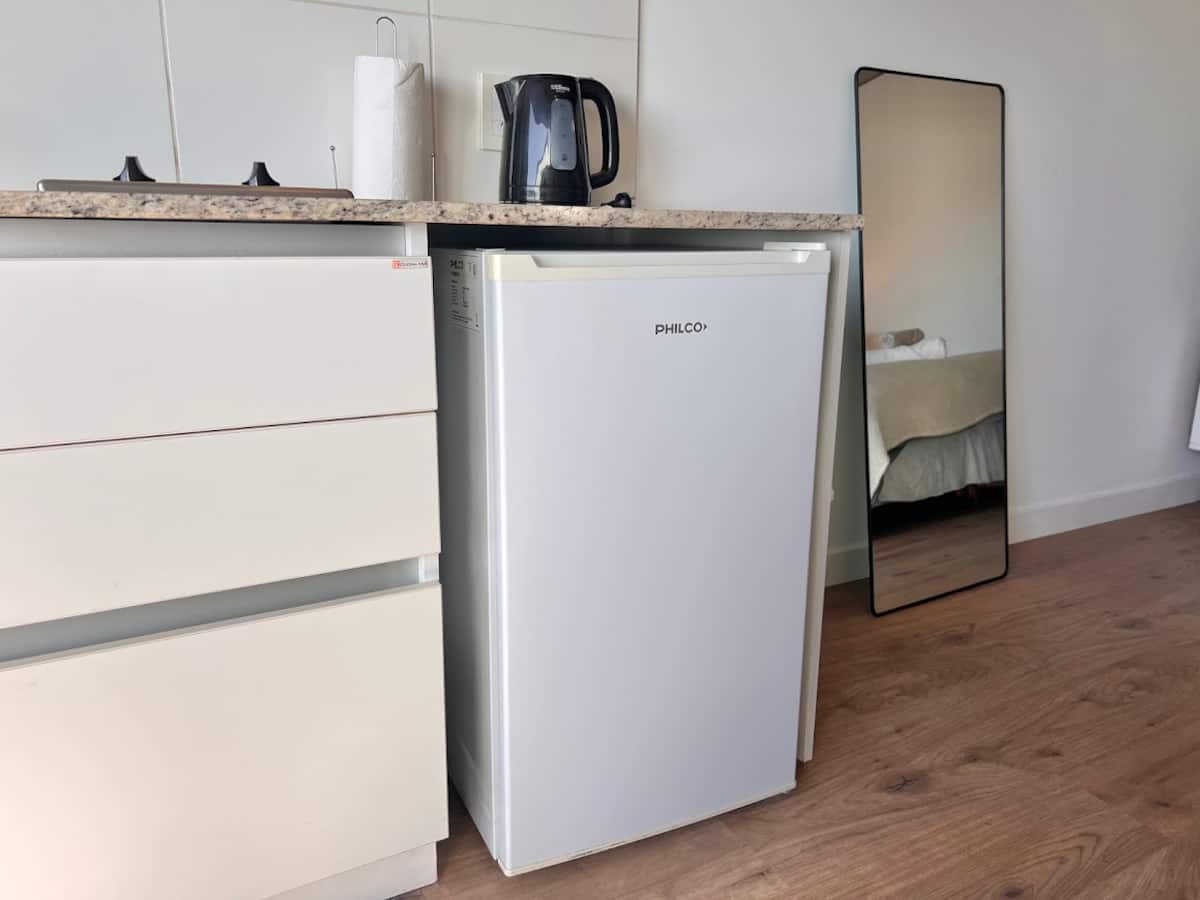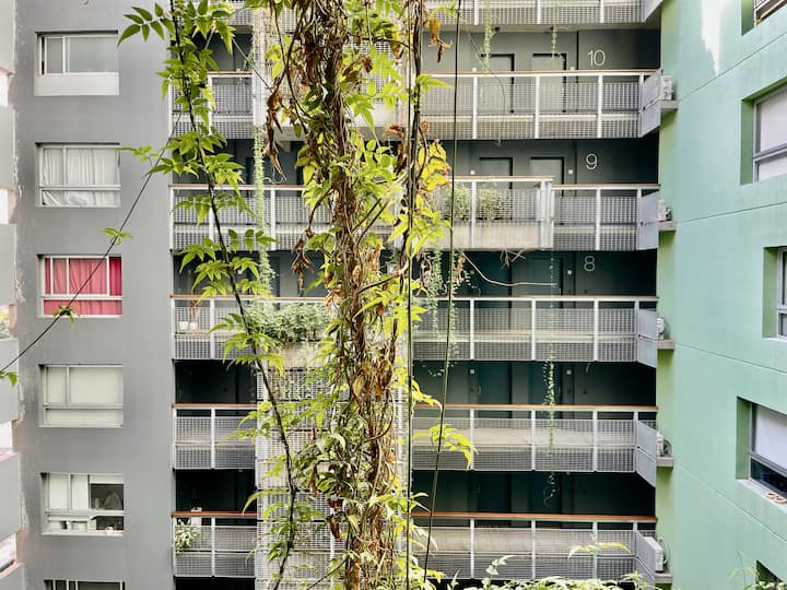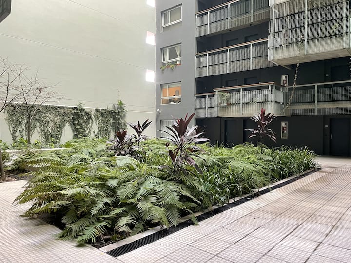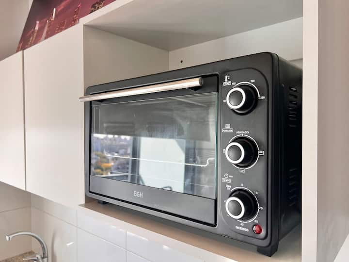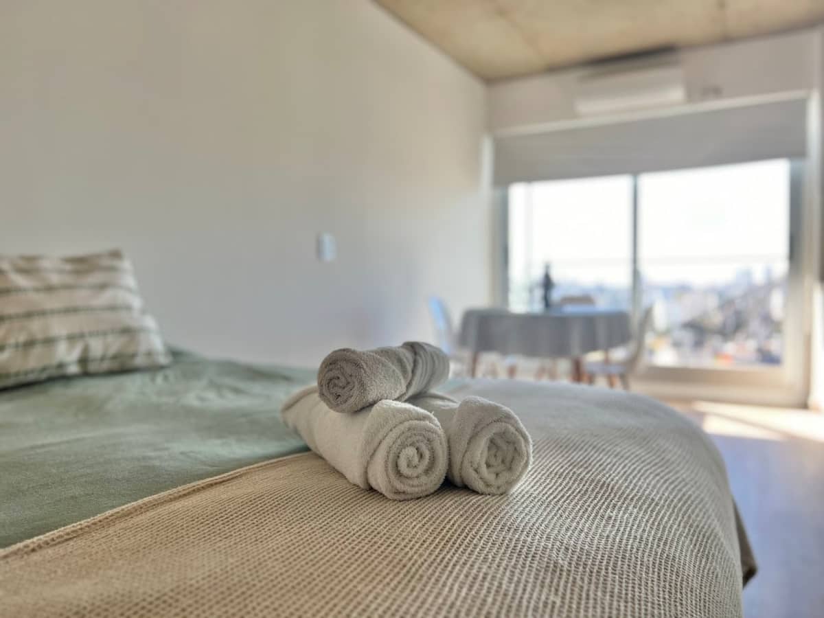 Kitnet em Chacarita com vista panorâmica. O prédio conta com academia e lavanderia. Para reservas de 20 dias ou mais, há política de consumo de eletricidade: se o uso exceder 500 kWh durante a estadia, pode haver cobrança adicional pelo excedente.