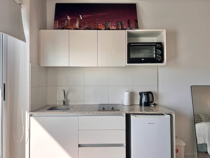 Kitnet com vista panorâmica, academia e lavanderia em Chacarita