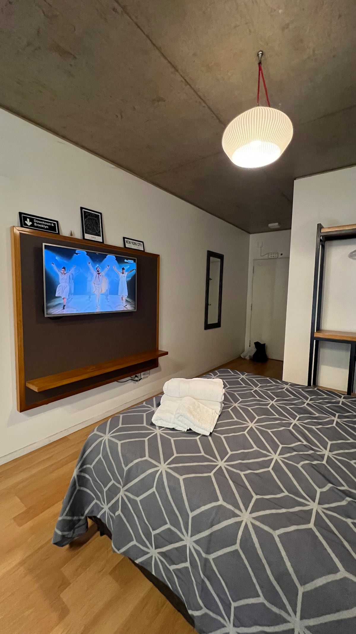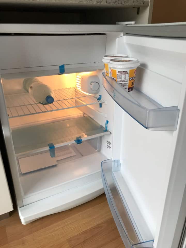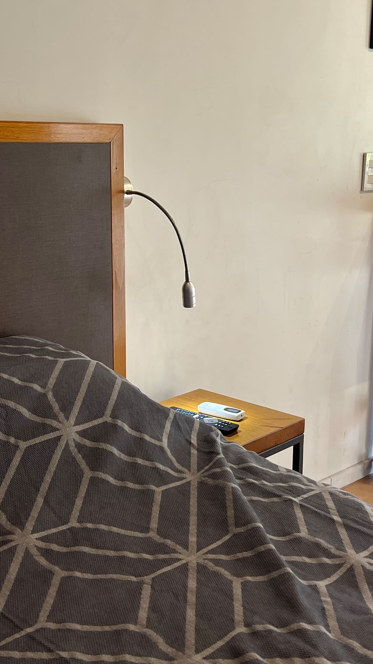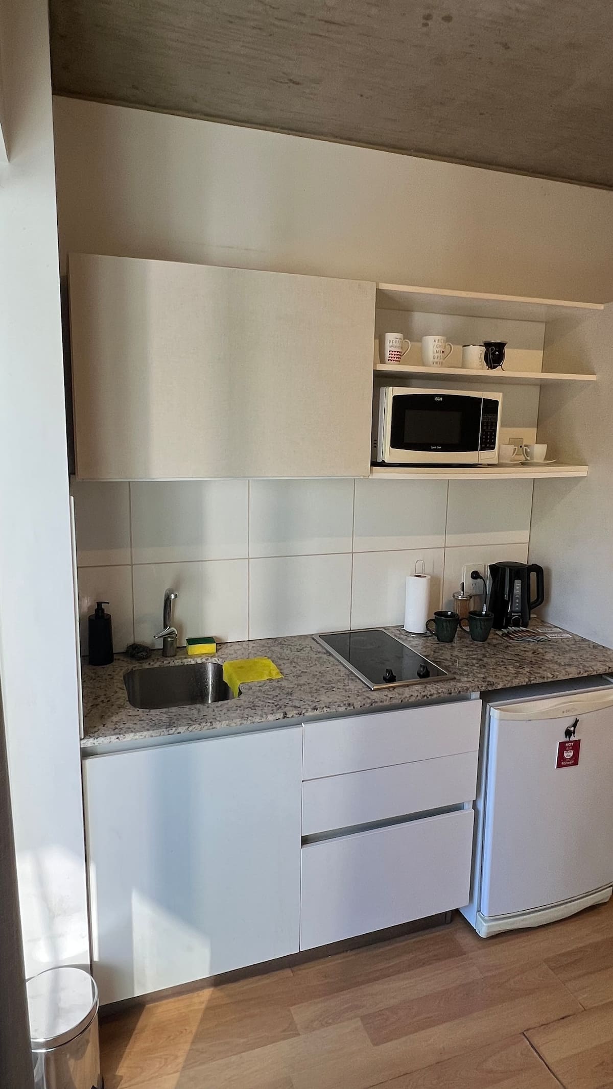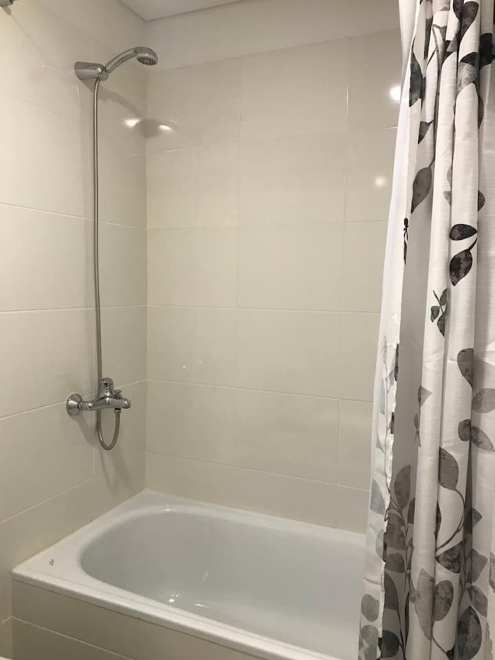 Kitnet em Chacarita, com cozinha equipada (geladeira, 2 fogões elétricos, chaleira elétrica e micro-ondas) e banheiro com banheira. Conta com smart TV, Wi-Fi e ar-condicionado frio/quente. Há varanda com toldo e janelas com isolamento acústico. No prédio: piscina, academia, sala de reuniões, lavanderia e segurança 24 horas. O apartamento fica a alguns minutos de Palermo, com acesso a transporte público, e a 5 minutos a pé da Movistar Arena e do complexo cultural C Art Media.
