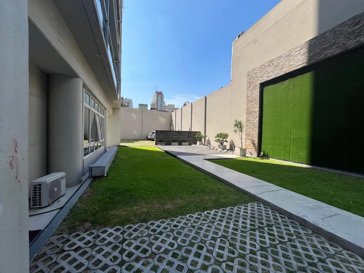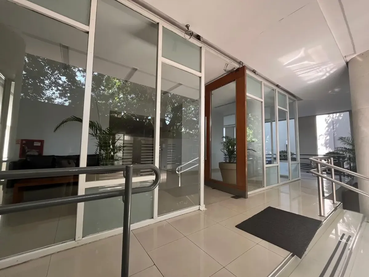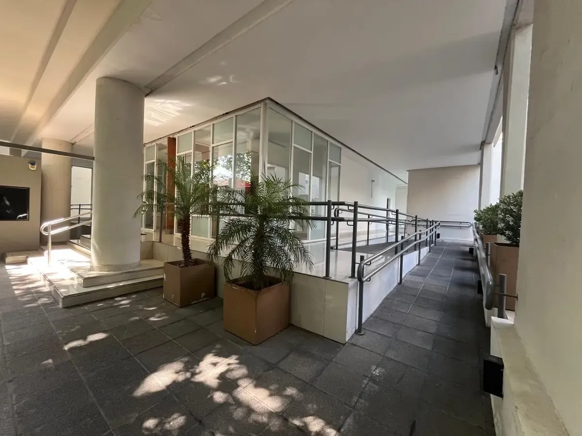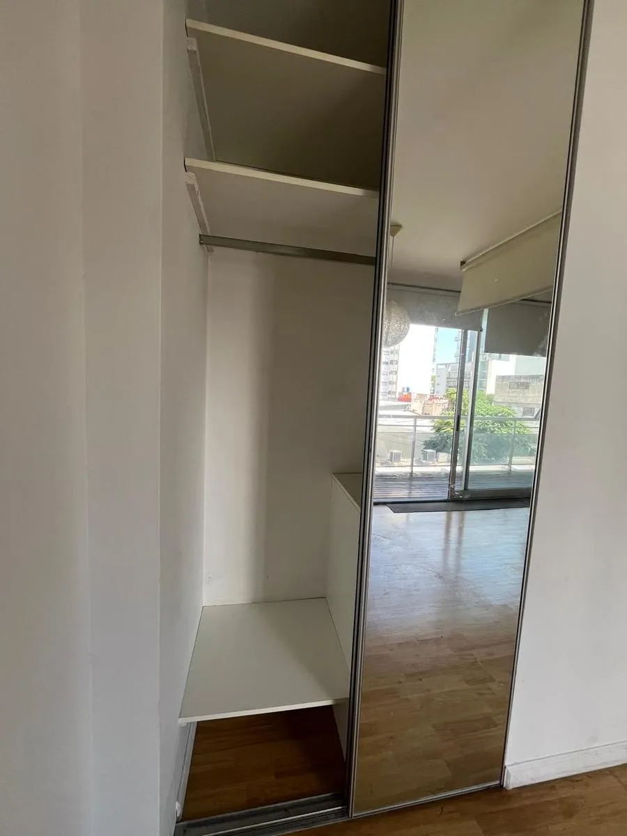 Studio (monoambiente) para aluguel em Chacarita, no 3º andar, de fundos. 35 m² no total, com grandes janelas e acesso a varanda; cozinha integrada com fogão a gás, exaustor, pia dupla e bancadas, com armários inferiores e superiores. Guarda-roupa embutido do piso ao teto com portas de correr e banheiro completo com banheira, revestimentos cerâmicos e espelho grande. O edifício tem duas piscinas, jacuzzi, salão de festas (SUM) com capacidade aproximada para 40 pessoas e academia.