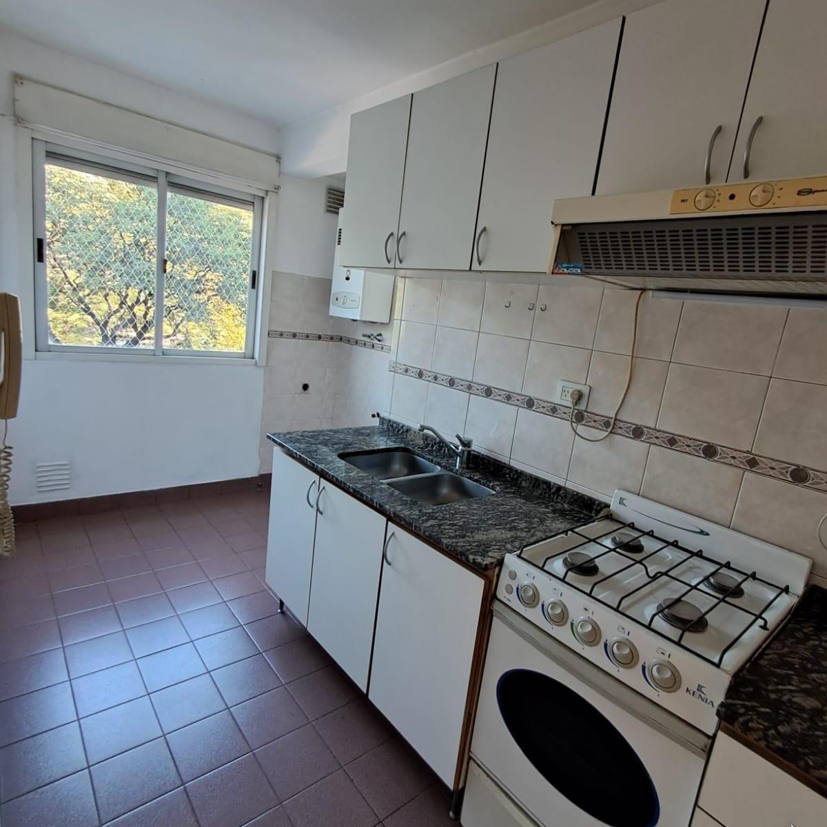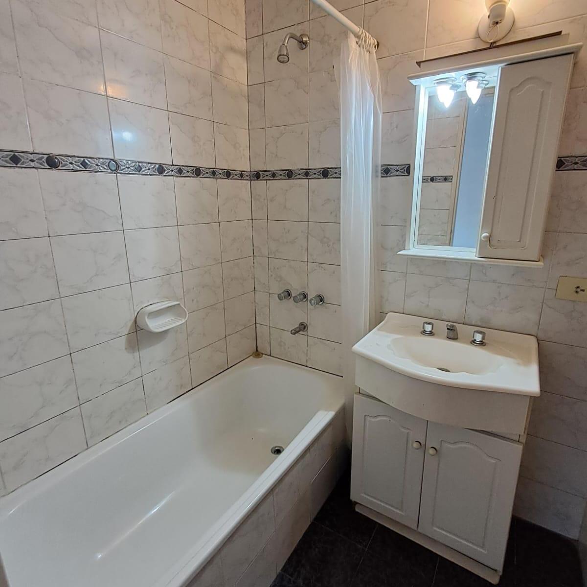 Kitnet de 1 ambiente de frente para a rua em Chacarita, com varanda. Cozinha com área de serviço e banheiro completo. O prédio tem piscina e espaço verde. Fica na Av. Corrientes, a 1 quadra da Av. Dorrego e a 4 quadras da Av. Juan B. Justo.