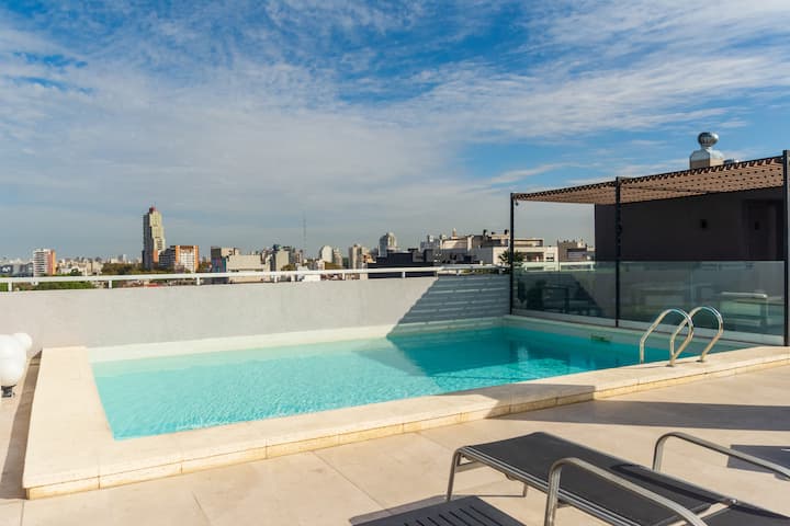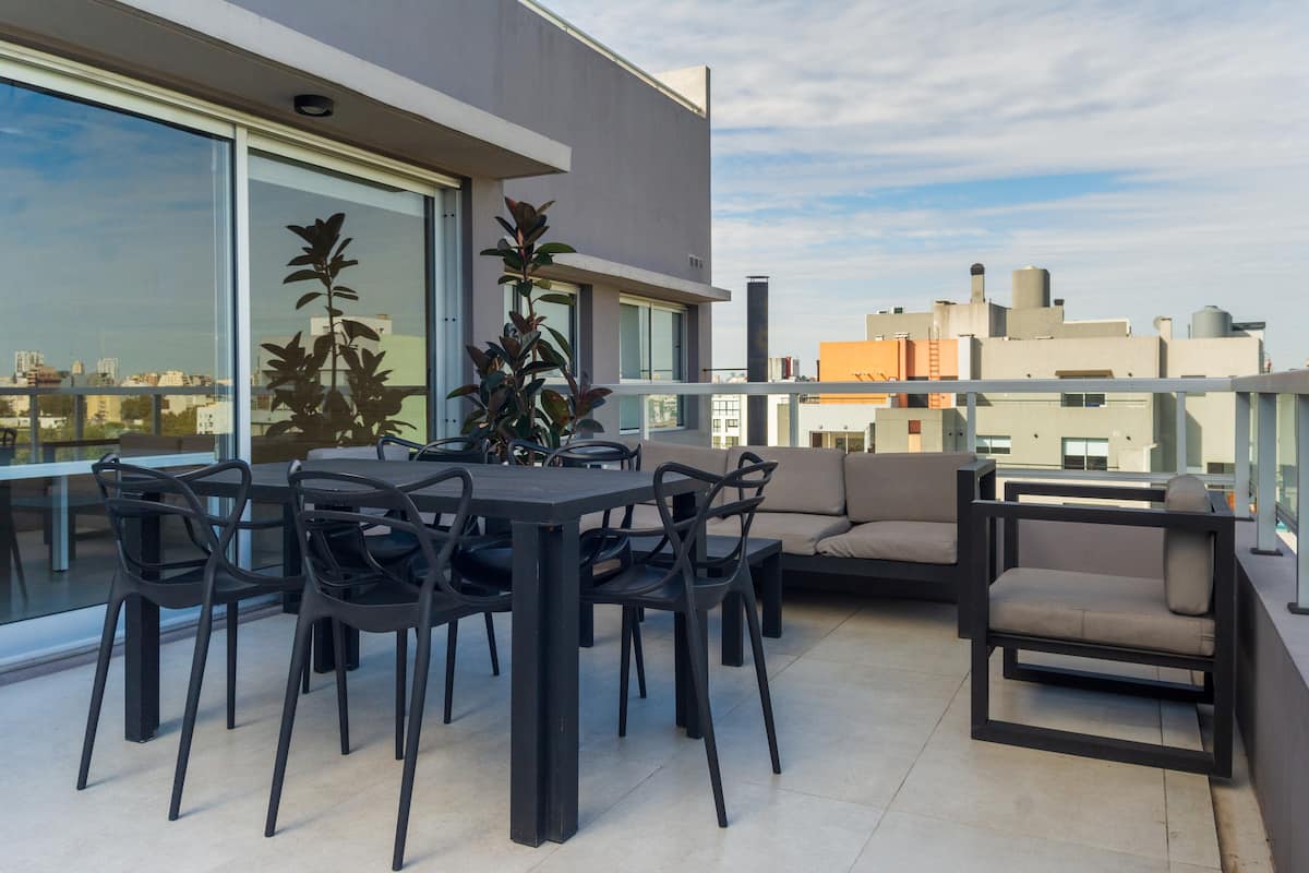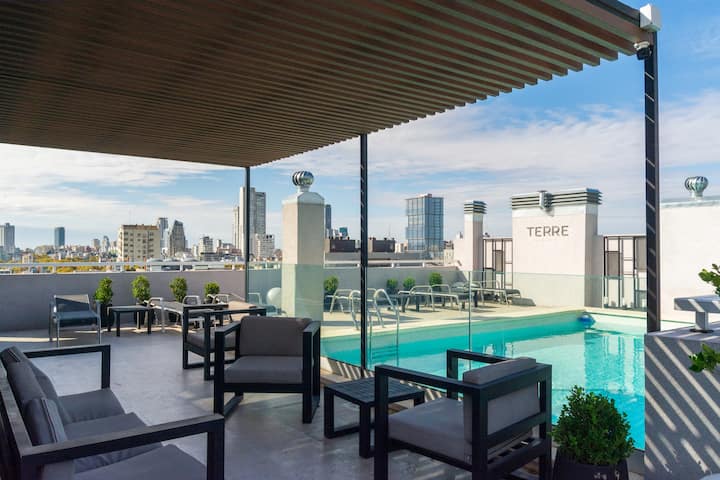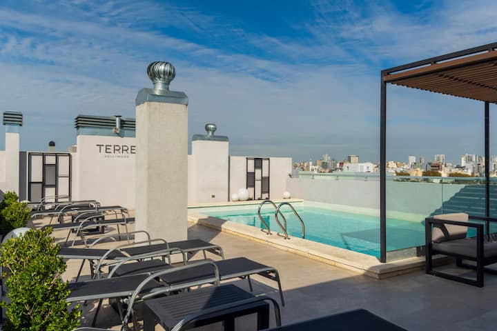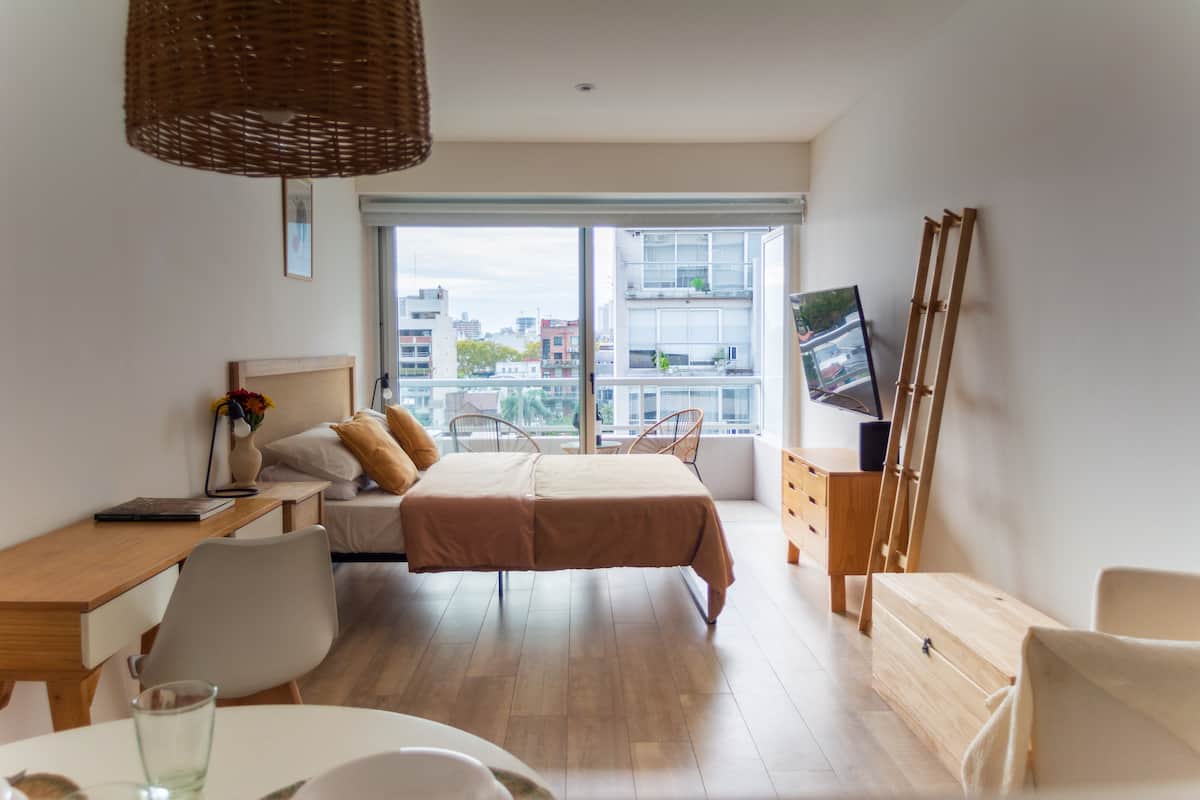 Kitnet em Palermo Hollywood, com área descrita como estúdio. O prédio conta com piscina na cobertura e academia. Há acesso a Wi-Fi. A localização é a poucos metros da Av. Juan B. e com diversas linhas de ônibus e proximidade do metrô.