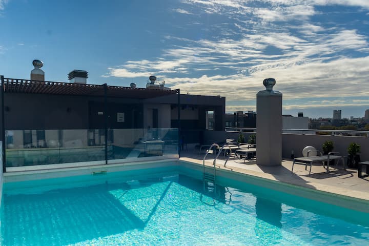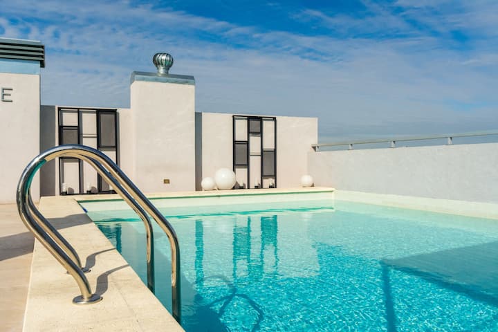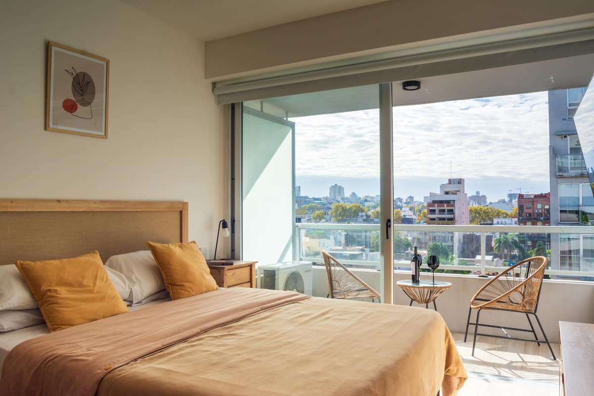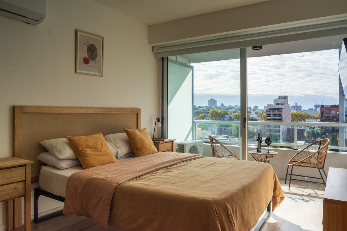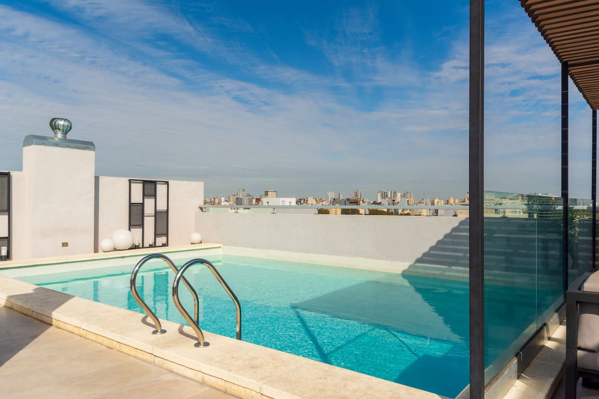 Kitnet em Palermo Hollywood, com área descrita como estúdio. O prédio conta com piscina na cobertura e academia. Há acesso a Wi-Fi. A localização é a poucos metros da Av. Juan B. e com diversas linhas de ônibus e proximidade do metrô.