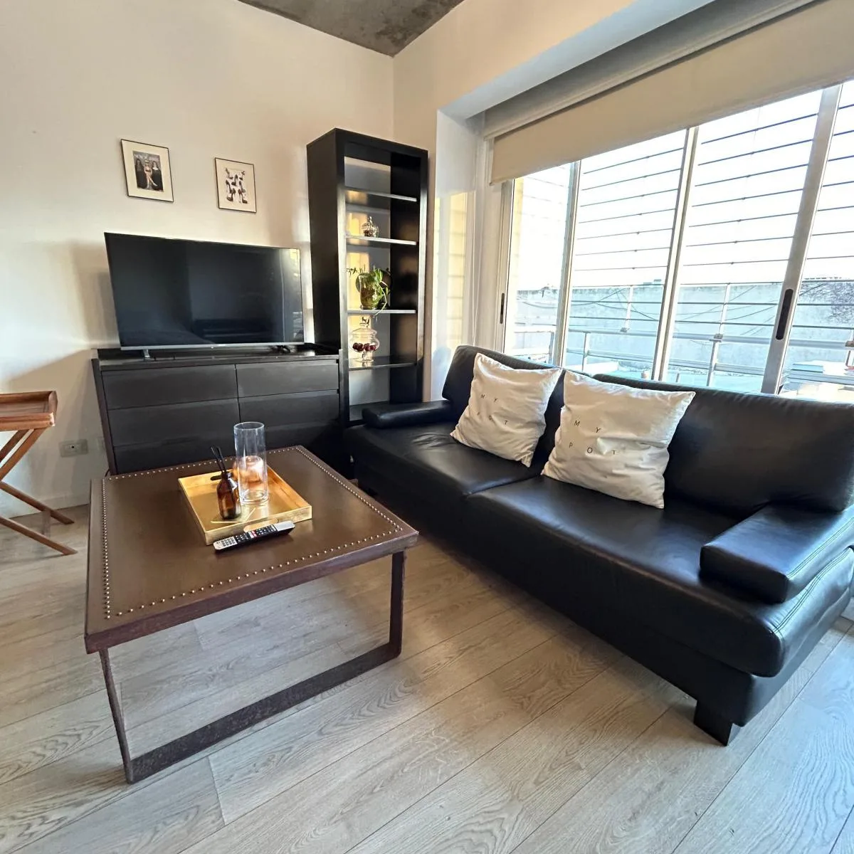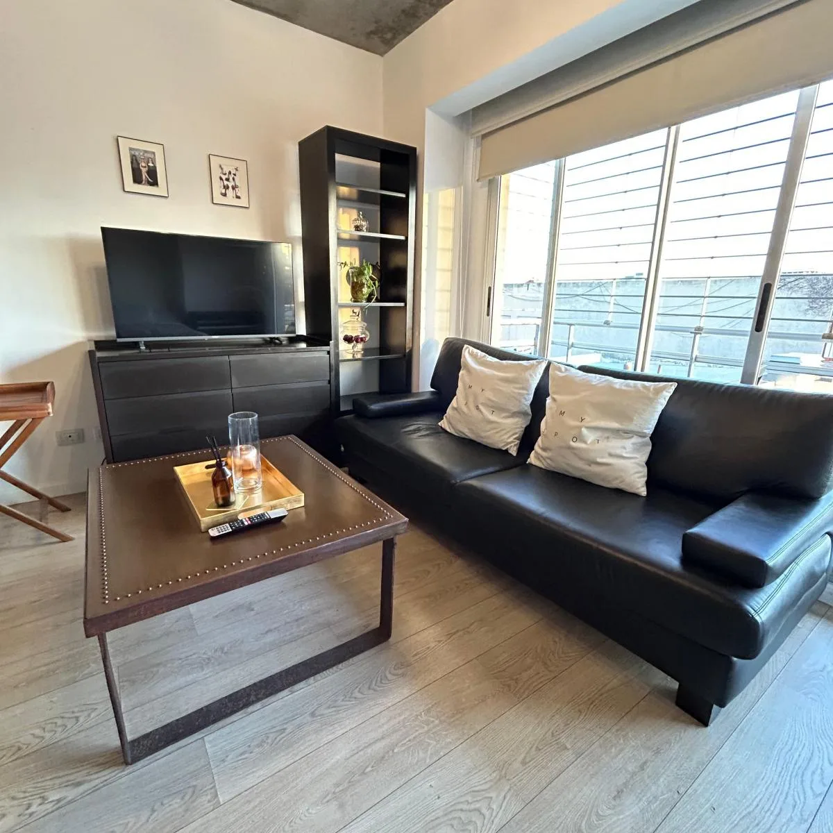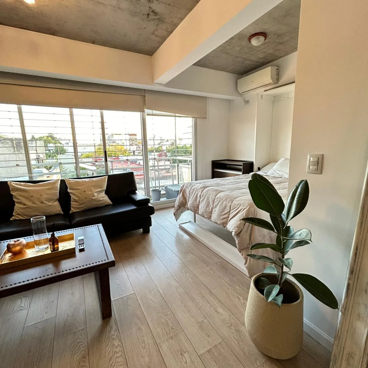 Kitnet mobiliada no bairro de Palermo Hollywood, na Av. Córdoba, a poucos metros da Av. Niceto Vega. O imóvel tem área de estar e jantar com sofá de dois lugares, mesa de apoio, mesa com cadeiras e TV a cabo, além de cozinha equipada com louças, geladeira com freezer, forno e fogareiros elétricos. Inclui somier duplo, banheiro completo com banheira e roupa de cama. Há aquecimento e refrigeração por ar-condicionado frio/calor. O prédio tem entrada com controle magnético, laundry, área de churrasc