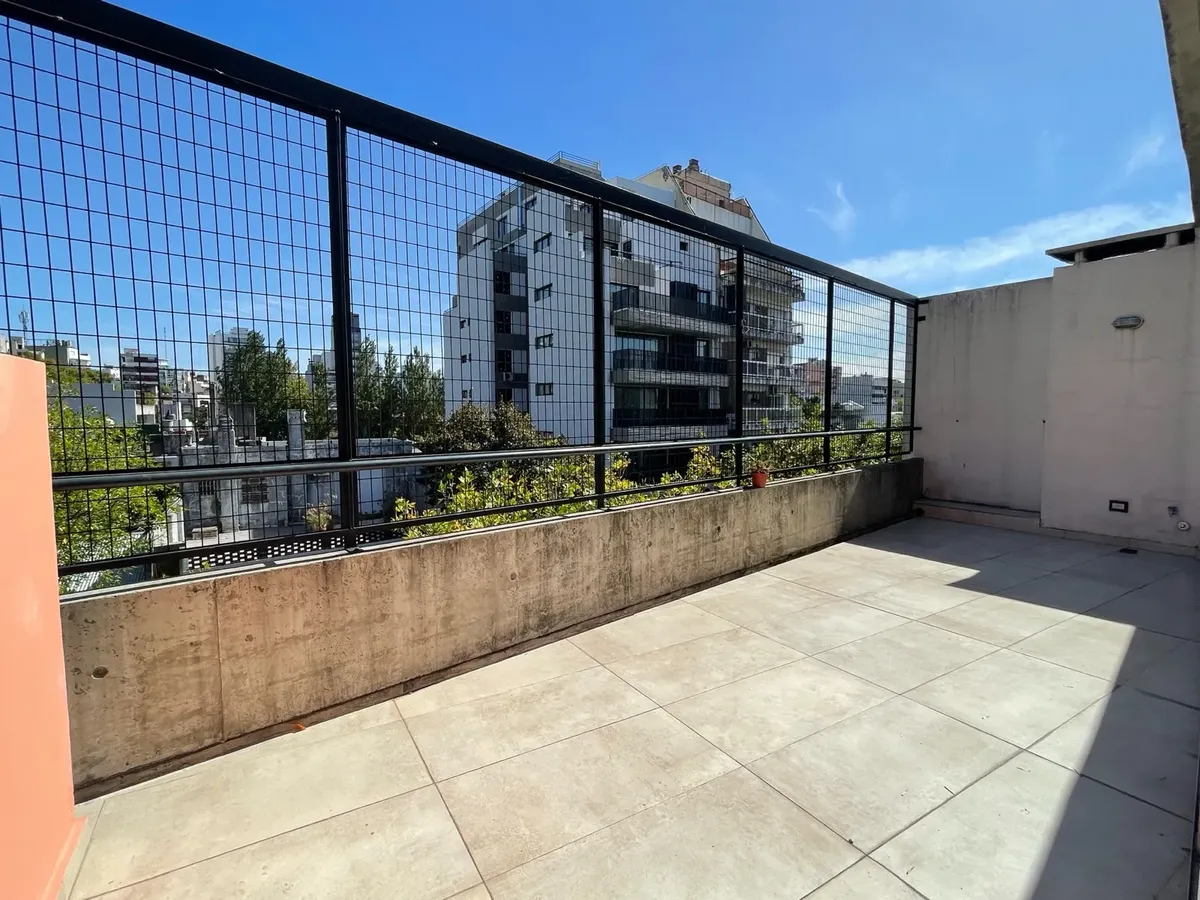 Apartamento tipo dúplex (2 plantas) no 4º andar, unidade A, com 41,8 m² cobertos em Chacarita. Possui varanda-terraço de 20 m² com área de churrasco e terraço privativo de 40 m² na segunda planta, além de cozinha, 1 banheiro completo e armário. Tem ar-condicionado e aquecimento por losa radiante com caldeira individual; eletricidade (Edesur) e gás. Não há vaga de garagem.