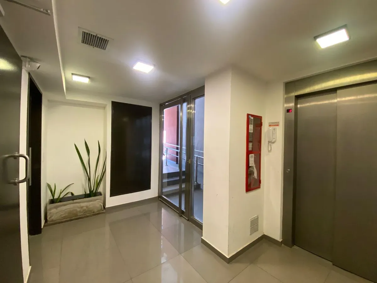 Kitnet (monoambiente) em Coghlan, apta para uso profissional, com 38,9 m² totais (28,9 m² cobertos e 10 m² semicobertos). Fica no 6º andar, de fundos, com orientação nordeste. O imóvel tem living integrado com piso de porcelanato, grande janela, ar-condicionado por duto com previsão (tiro balanceado), cozinha separada com fogão a gás natural, pia de aço e monocomando, aquecimento de água central e conexão para lavar roupas no antebanheiro. Há banheiro completo, varanda dupla, janelas com vidro d
