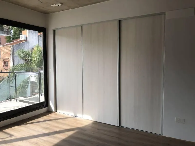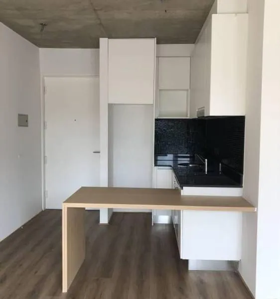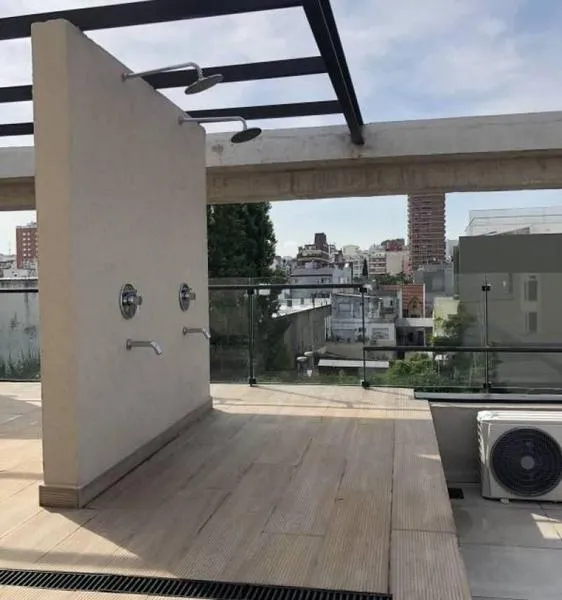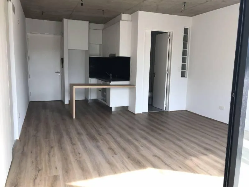 Kitnet para uso profissional em prédio moderno de 4 andares, com 1 quarto e banheiro. Unidade de fundos, com varanda aberta para o contrafrente, cozinha completa com armários inferiores e superiores, forno Domec, air spray e fogão elétrico, além de espaço para geladeira. Piso Legno tipo madeira e área de armazenamento. Há conexão para ar-condicionado. O prédio oferece espaço para bicicletas, terraço de uso comum com área de churrasco (parrilla), banheiro e solarium. Próximo à Av. Congreso e à Av