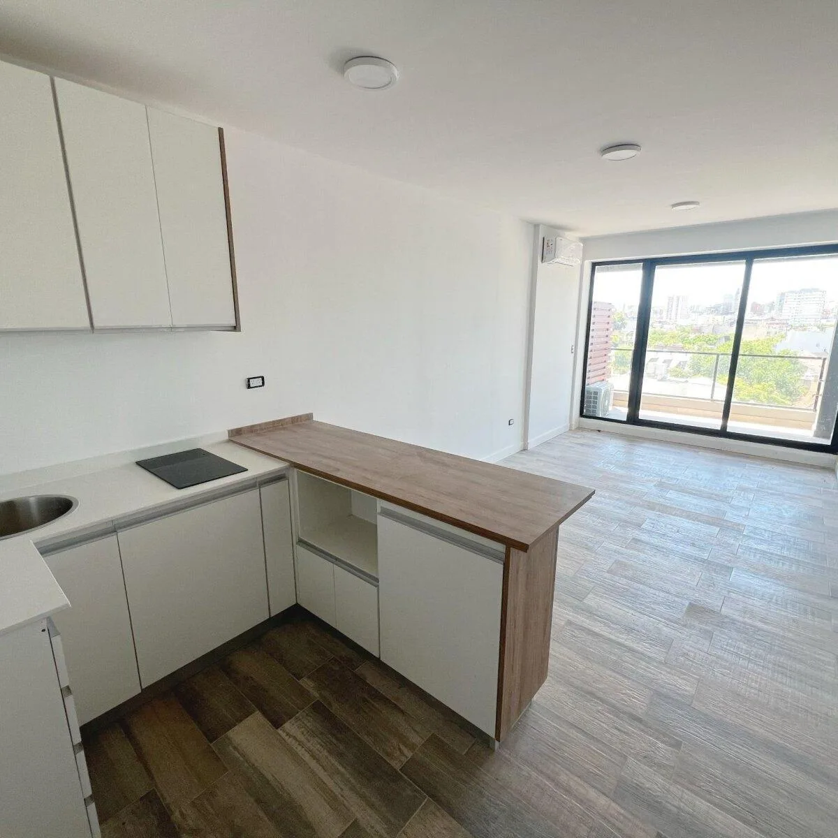 Kitnet novo (nunca habitado) em Coghlan. Inclui ar-condicionado frio/calor. O prédio tem coworking, piscina com orientação norte, áreas de churrasco, parque de uso comum e lavanderia, além de vagas de garagem opcionais em 2 subsolos (não incluídas no valor). Contrato de 12 ou 24 meses; garantia com Seguro Caución. Não são permitidos animais. Exige renda comprovável, 1 mês de depósito e 1 mês adiantado.
