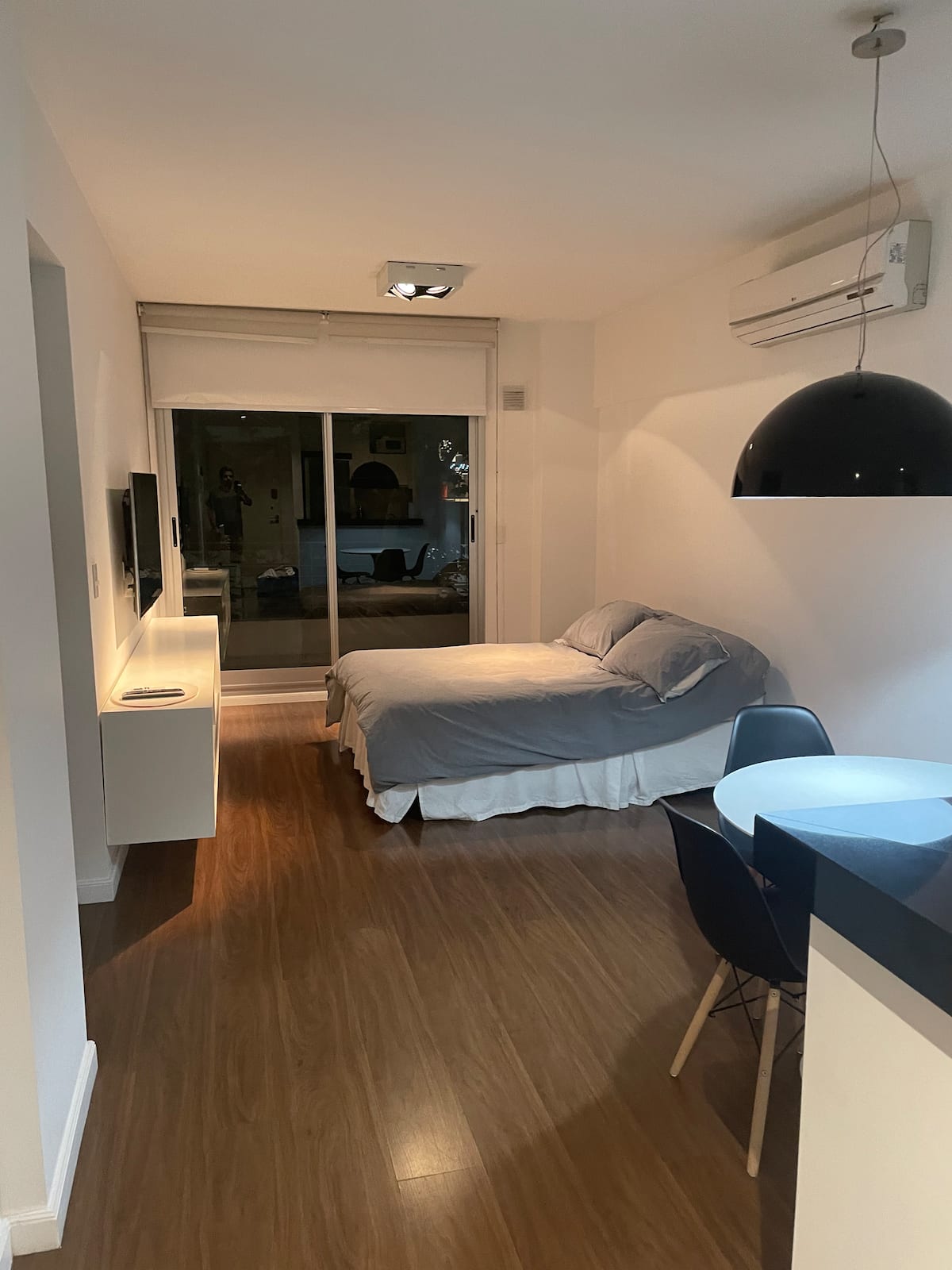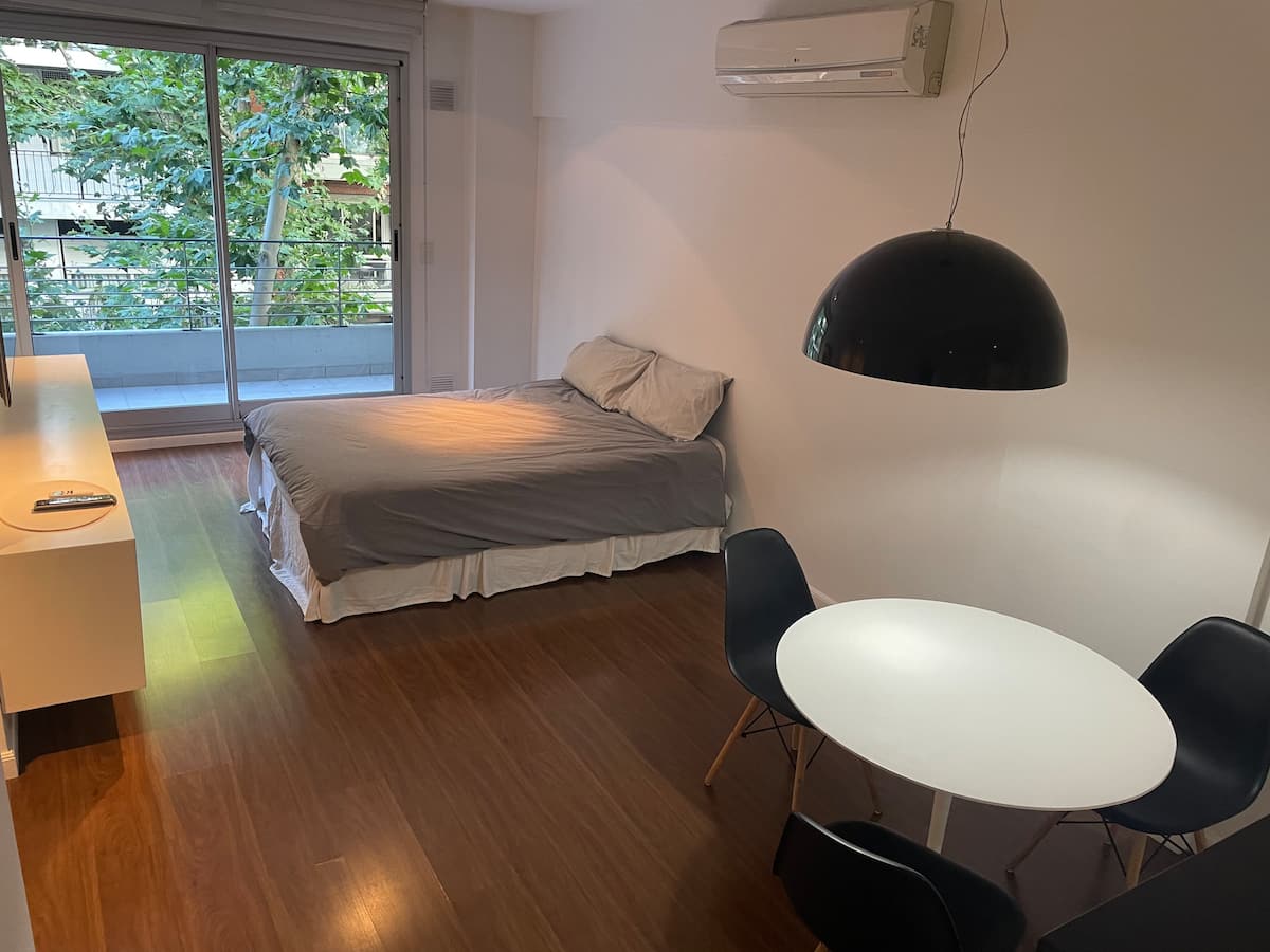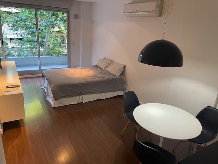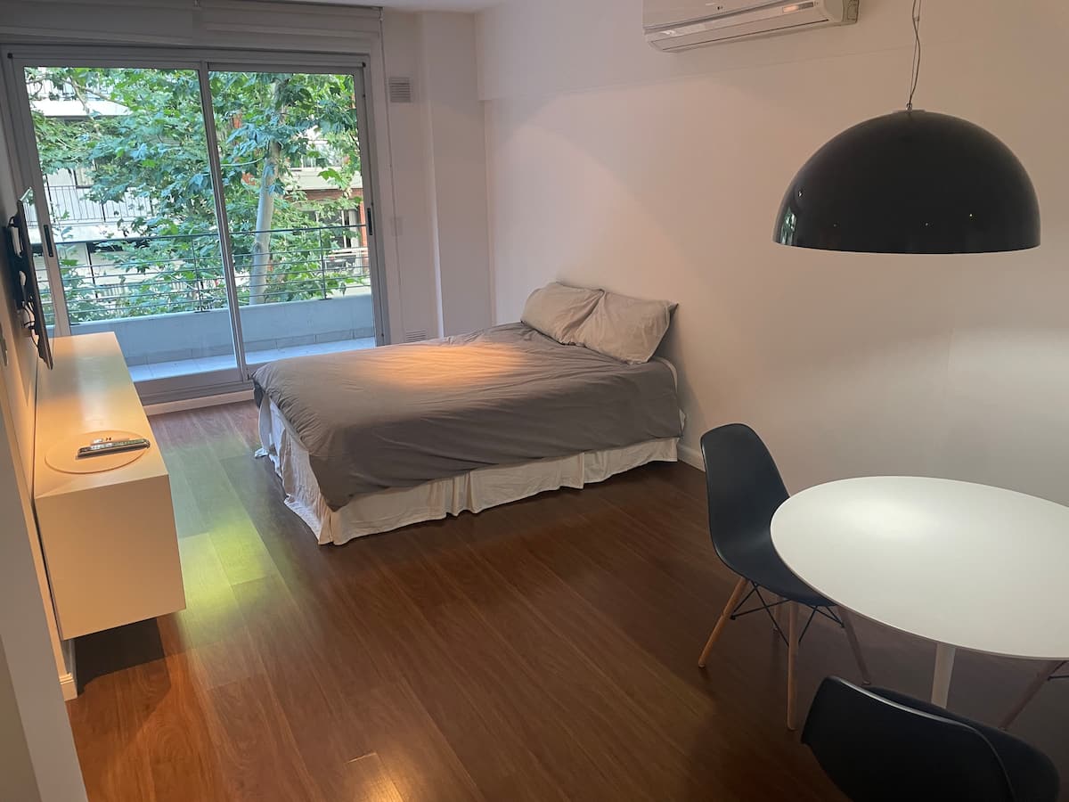 Kitnet em prédio novo em Colegiales. Fica a 1 quarteirão de uma estação de ônibus e a 2 quarteirões do metrô. Acomoda até 2 hóspedes em sofá-cama de casal.