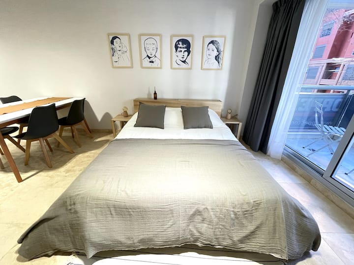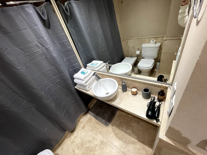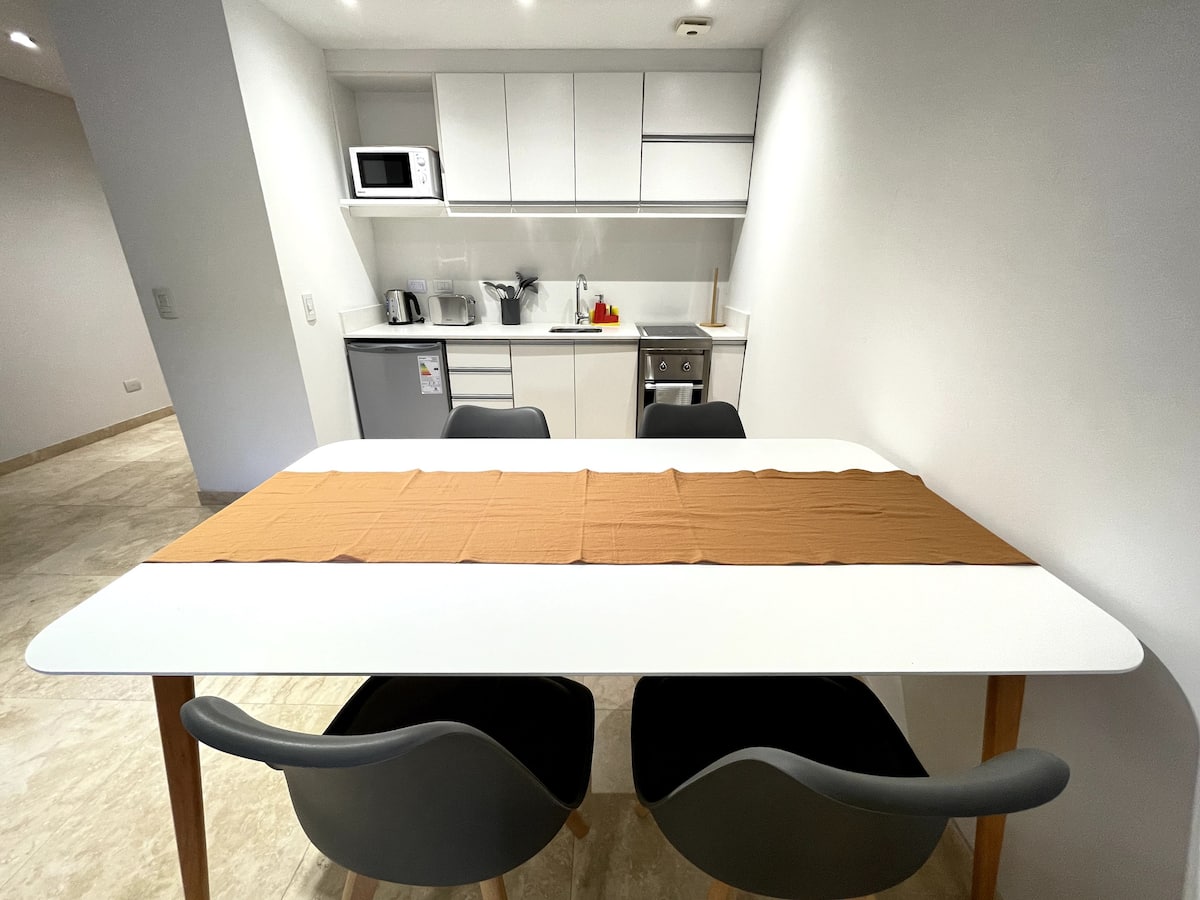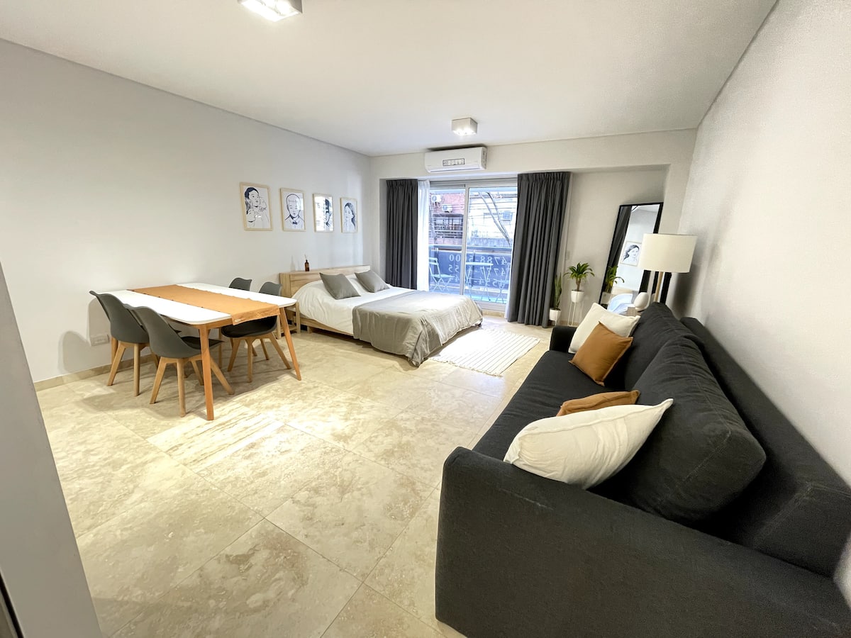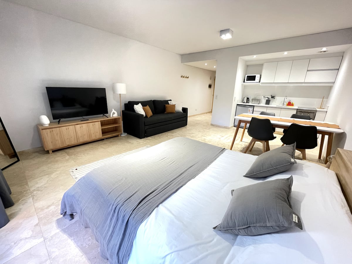 Kitnet (studio) de 40 m² em Colegiales, mobiliada e totalmente equipada. Capacidade para 4 hóspedes: cama queen e sofá-cama para 2. Conta com ar-condicionado frio-quente, Smart TV e mesa de jantar, além de utensílios de cozinha. Acesso por carro, ônibus e metrô, com opções próximas de metrô e principais linhas de ônibus.