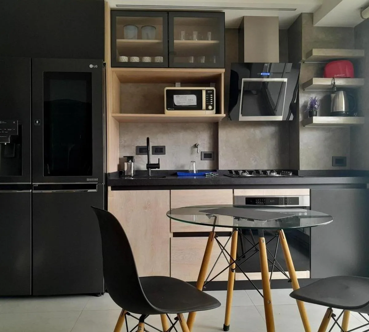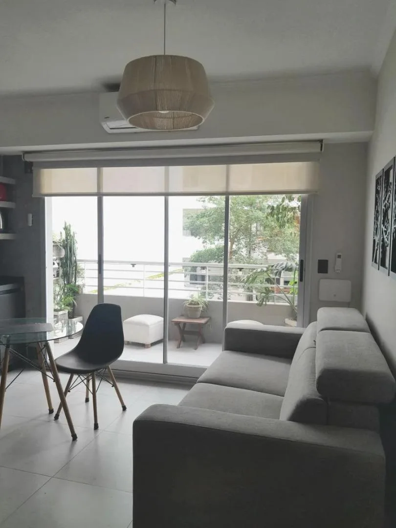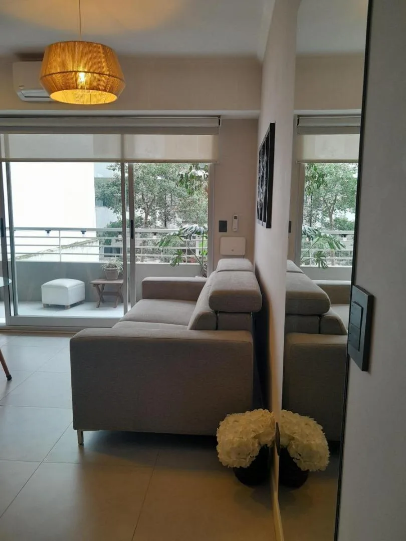 Kitnet mobiliada de 34 m² em Palermo Hollywood, com 2 anos de uso. Fica no contrafrente. Possui varanda com churrasqueira e internet de 300 MB. O valor inclui condomínio e serviços (Wi-Fi, água, gás e luz com limite).