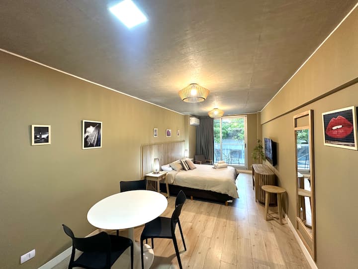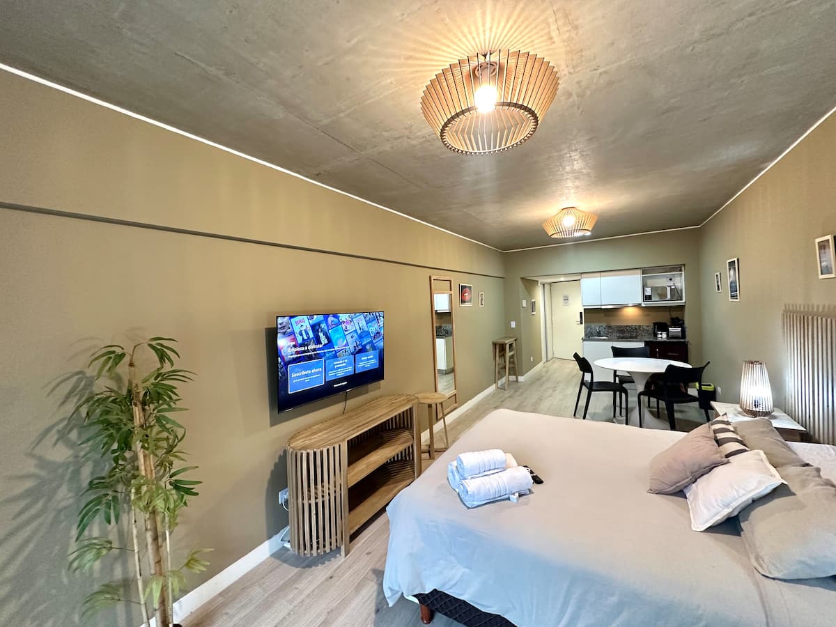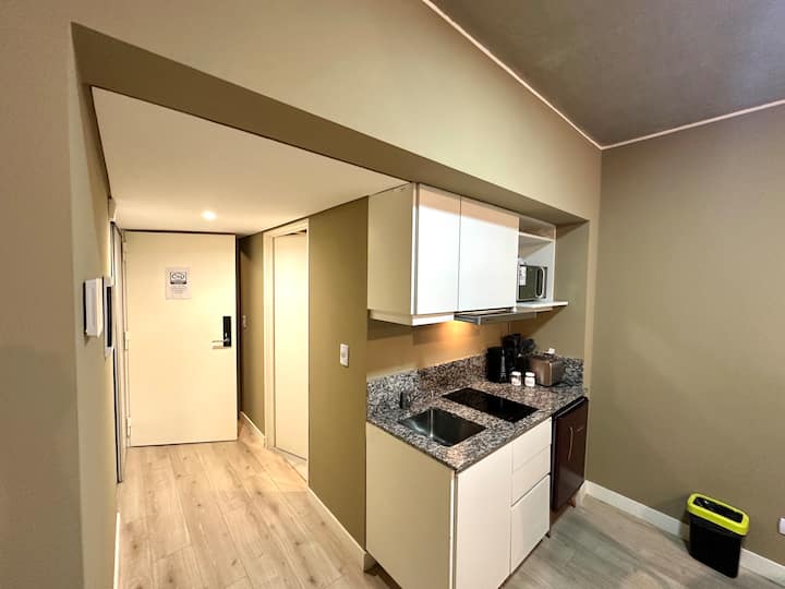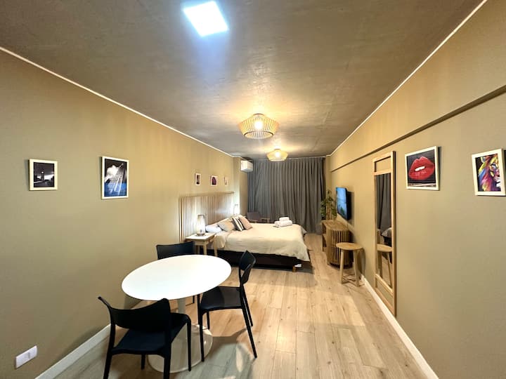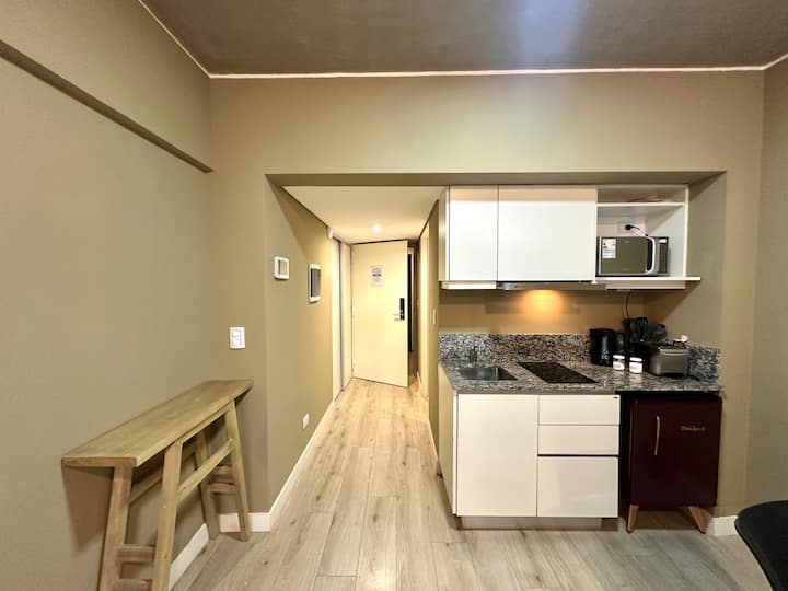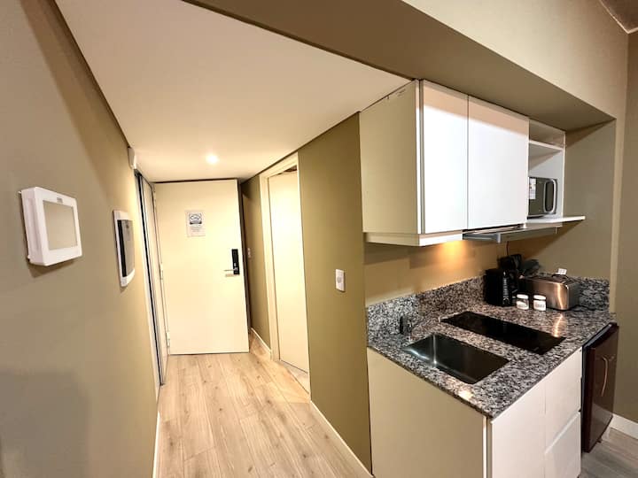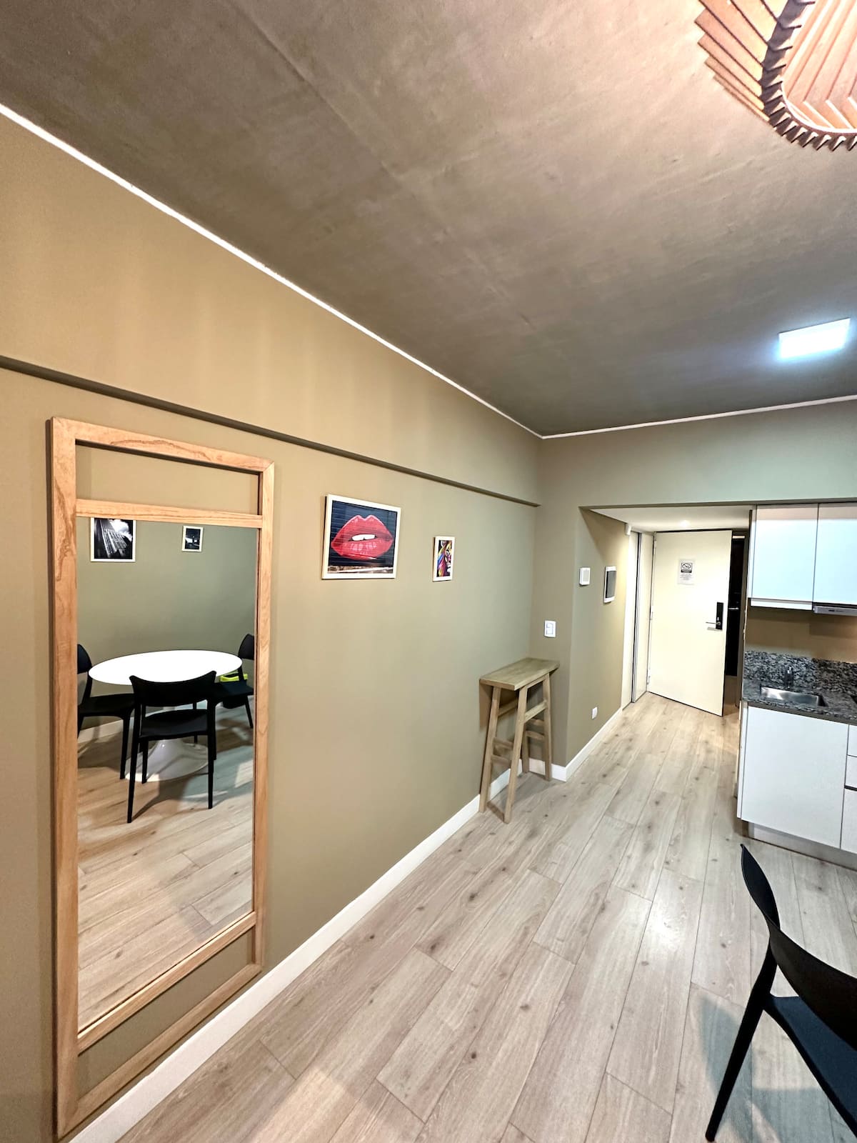 Estúdio em prédio voltado a apartamentos temporários, com varanda. Unidade equipada com SMART TV com acesso a serviços de streaming e Wi-Fi de alta velocidade. Em janeiro de 2025, iniciou-se obra ao lado, com possível ruído entre 7h e 17h.