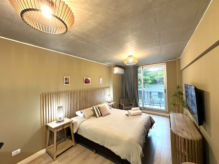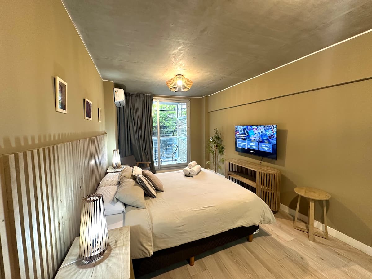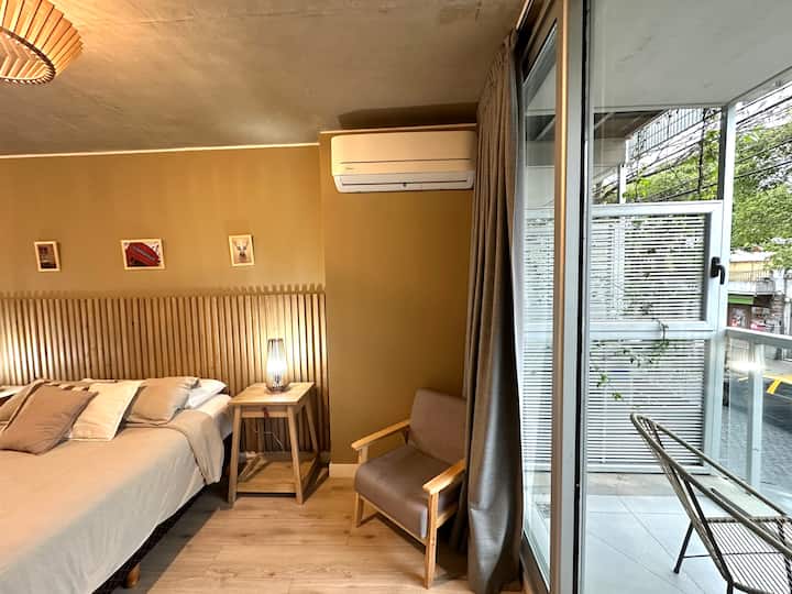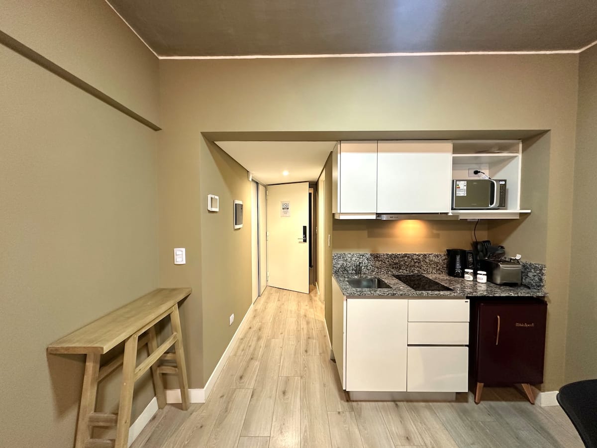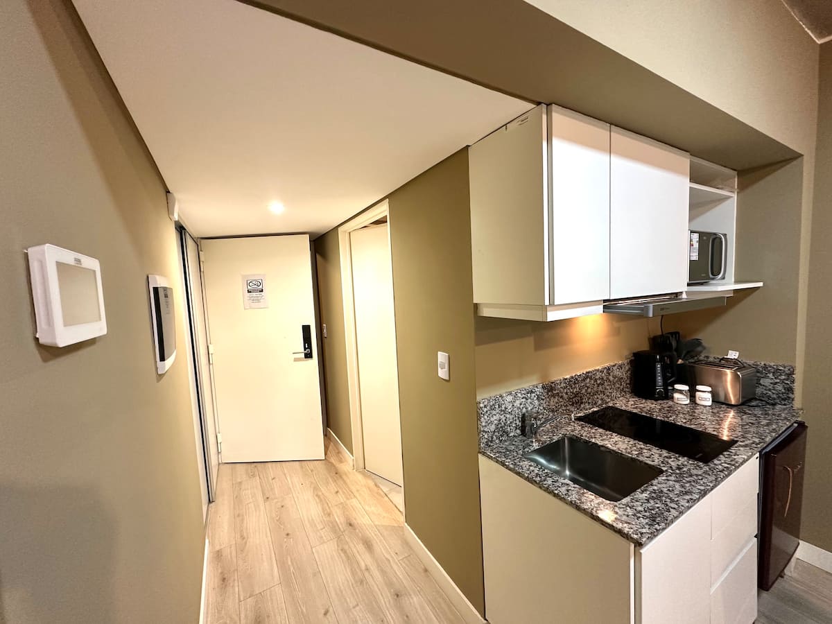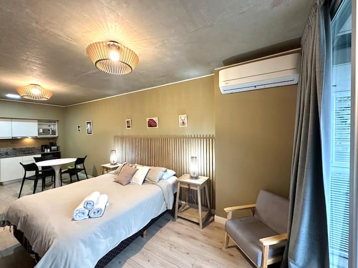 Estúdio em prédio voltado a apartamentos temporários, com varanda. Unidade equipada com SMART TV com acesso a serviços de streaming e Wi-Fi de alta velocidade. Em janeiro de 2025, iniciou-se obra ao lado, com possível ruído entre 7h e 17h.