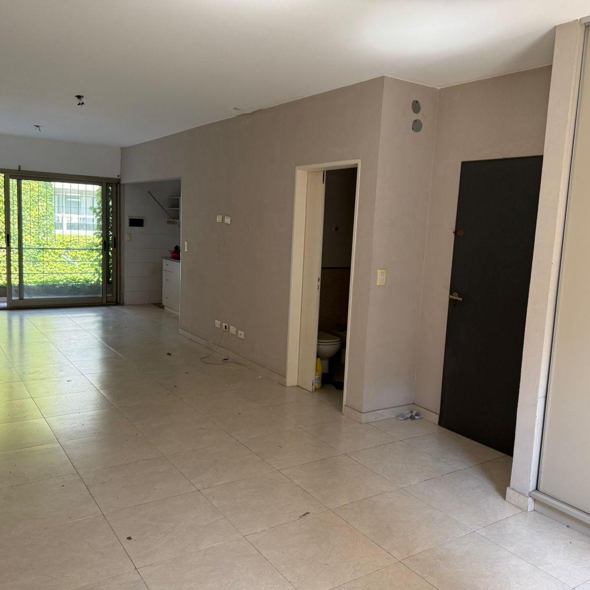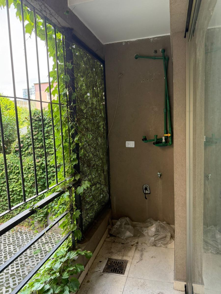 Kitnet divisível com cozinha integrada ao living, 1 banheiro completo, ventilação cruzada e janelas de alumínio anodizado. A planta tem balcão de fundos com conexão para máquina de lavar e termotanque. Inclui aquecimento frio-calor por ar e armário grande; vaga de garagem coberta no térreo.
