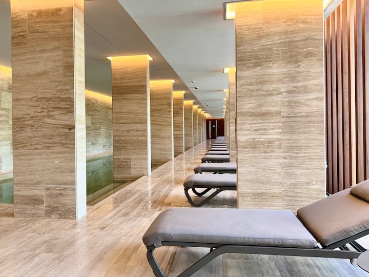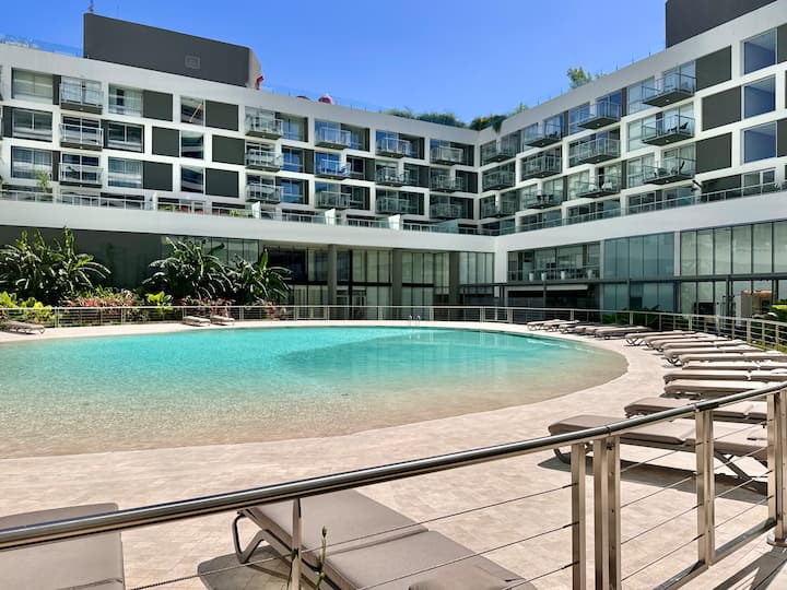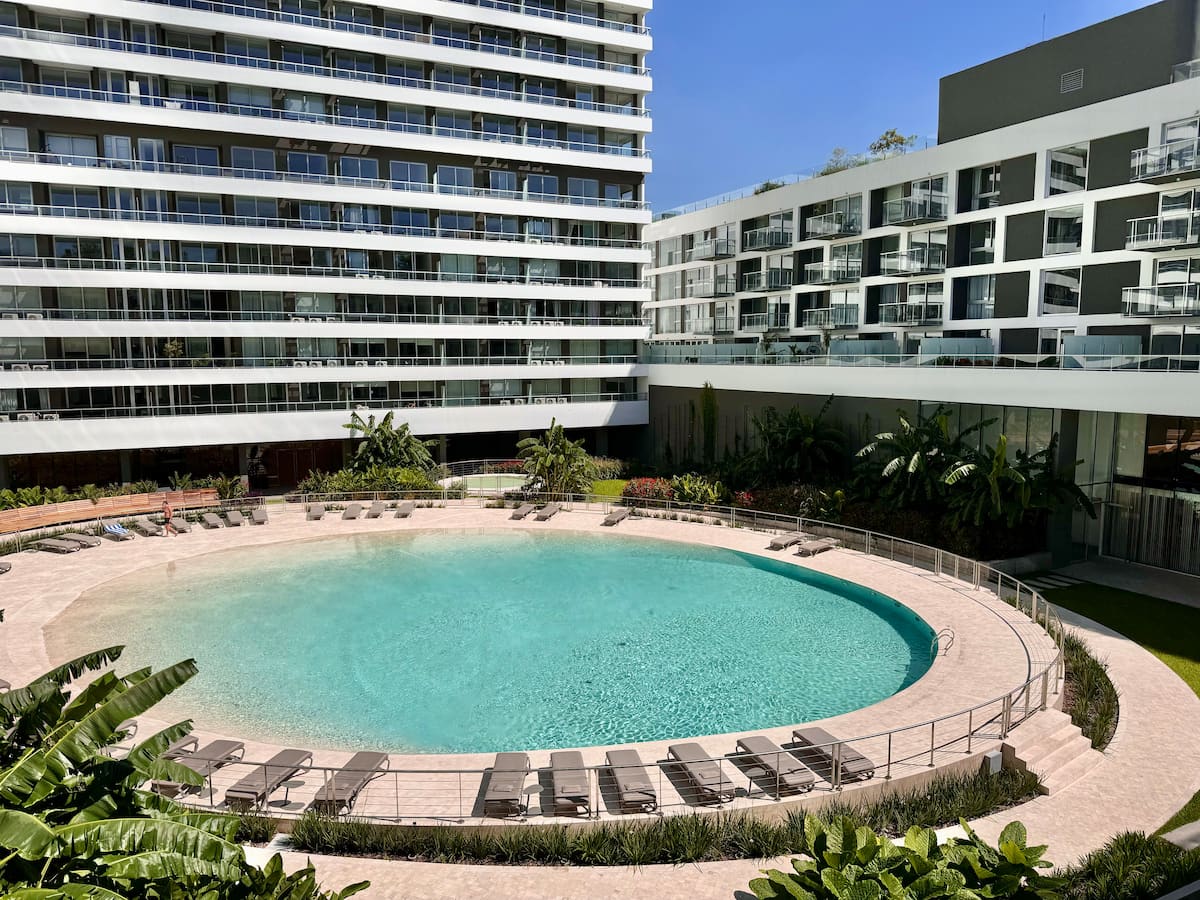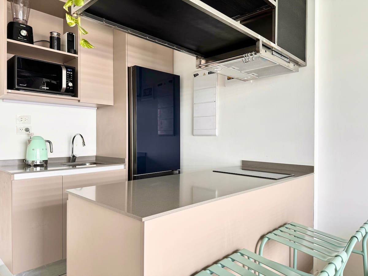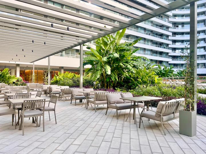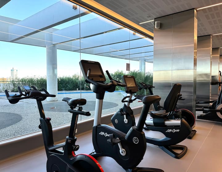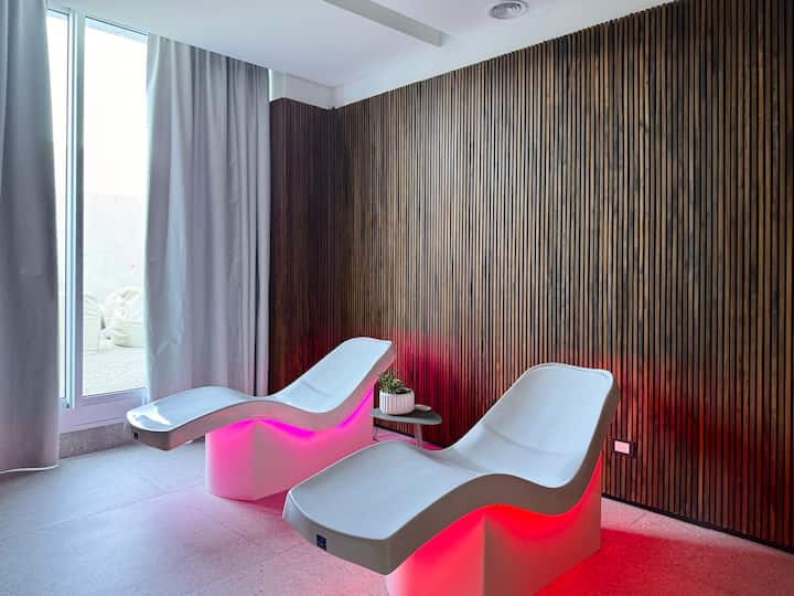 Kitnet mobiliada em um complexo residencial. Estúdio totalmente equipado para 2 pessoas. Fica na fronteira entre Palermo Hollywood e Colegiales. O complexo tem co-working no 1º andar para maiores de 18 anos, com pátios internos e mesas comunitárias. A área de bem-estar fica no 6º andar, com piscina de 25 m, whirlpool escandinavo, jacuzzi, sauna, sala de massagens e sala de relaxamento, além de academia e salas para pilates e yoga, e uma pista para corrida e caminhada em área parquizada de 350 m.