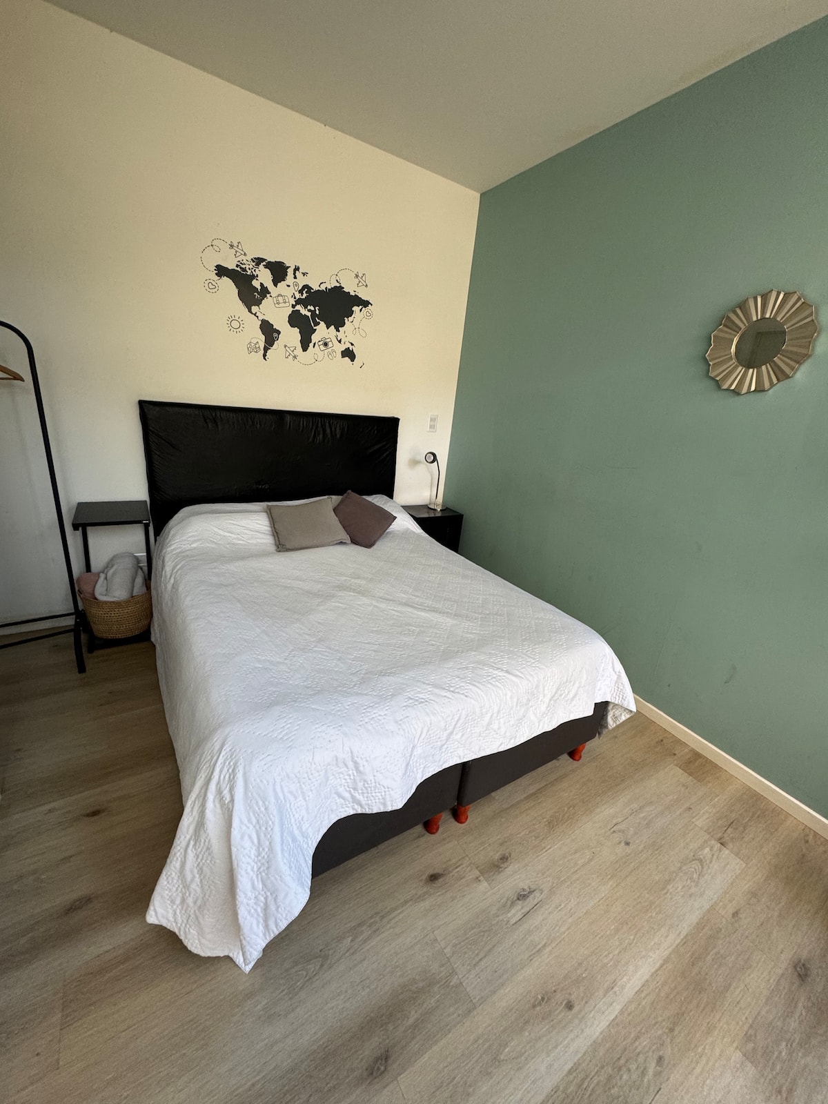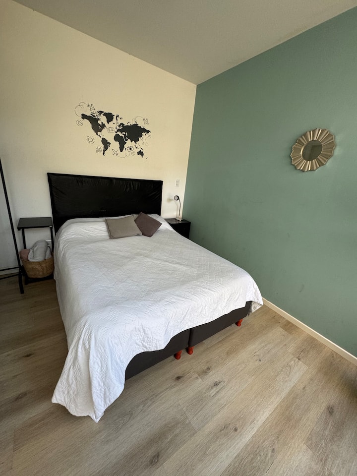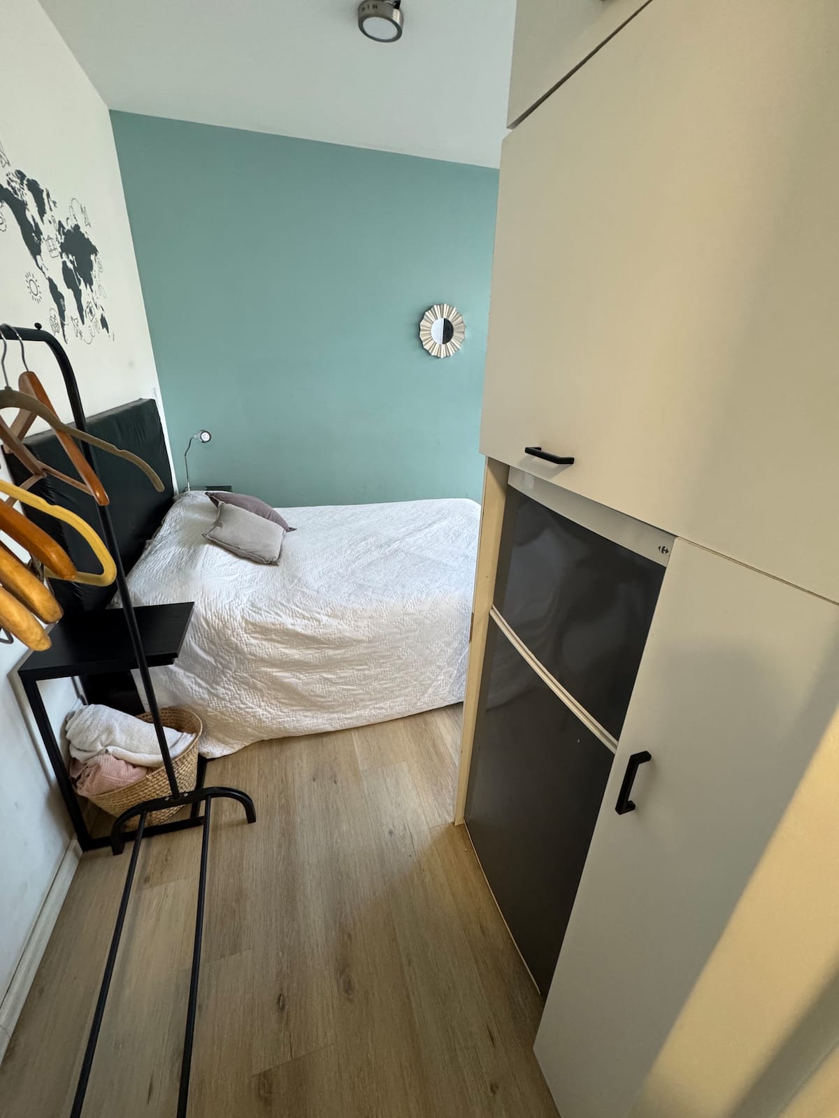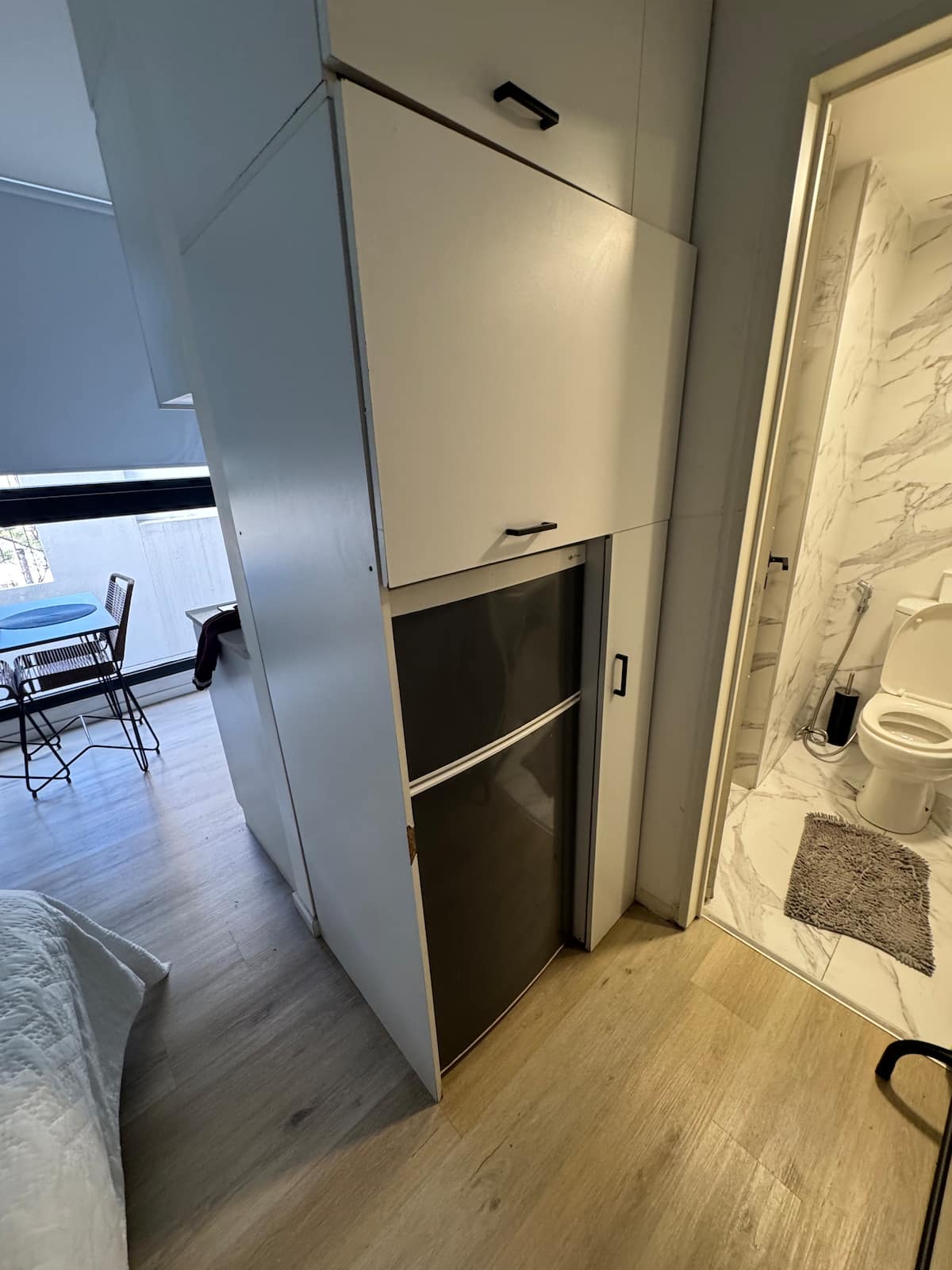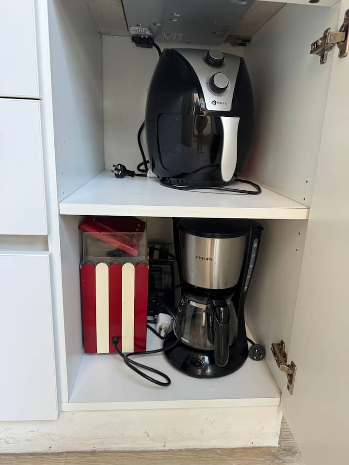 Kitnet em Colegiales, com ambiente único, mobiliada com cama de casal. Inclui Smart TV, Wi-Fi de alta velocidade, ar-condicionado e cozinha equipada com air fryer, cafeteira e geladeira, além de utensílios. O prédio tem piscina e câmeras de segurança. Não são permitidas festas e não é permitido fumar.