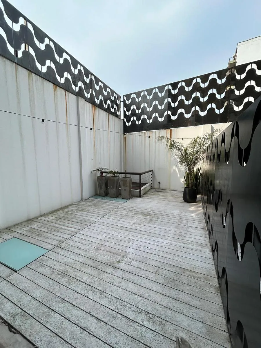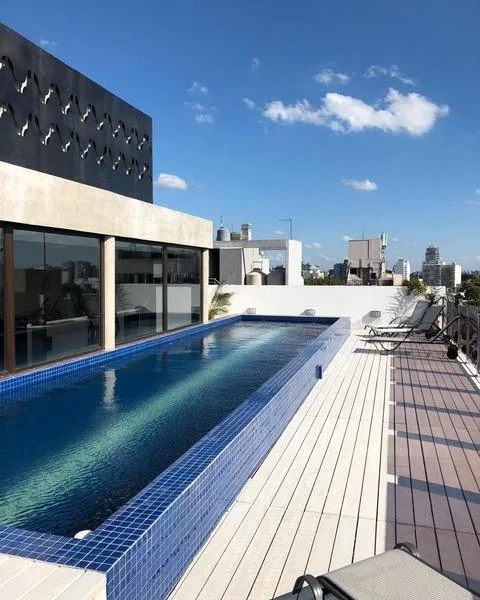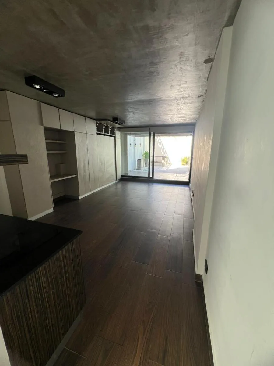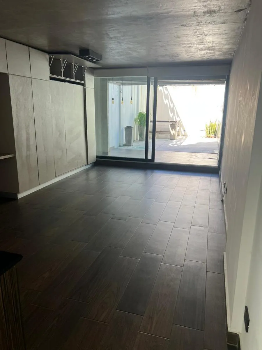 Kitnet em duplex com um ambiente, em edifício em Colegiales. Inclui armário e cama retrátil. Tem pátio, cozinha com cooktop elétrico e acesso a itens do condomínio como piscina, academia, área de churrasco, lavanderia.