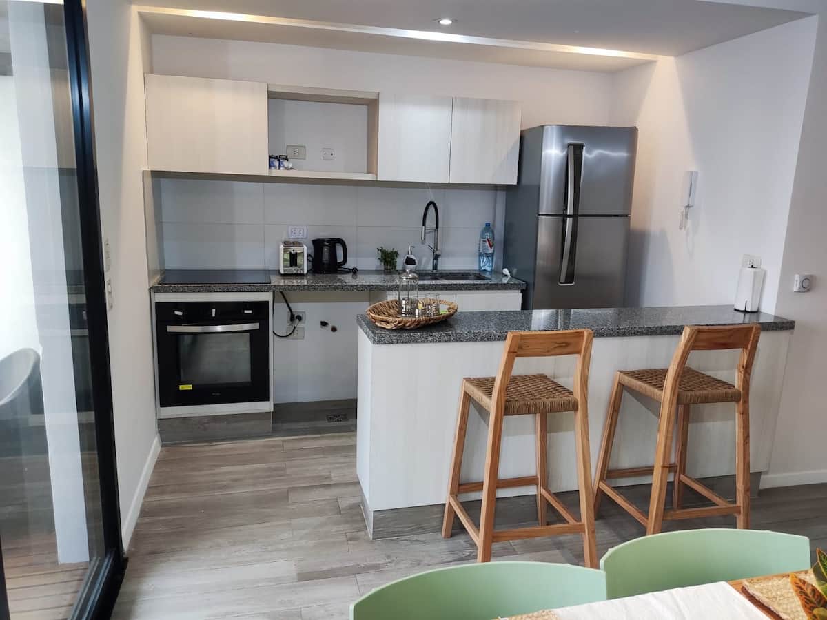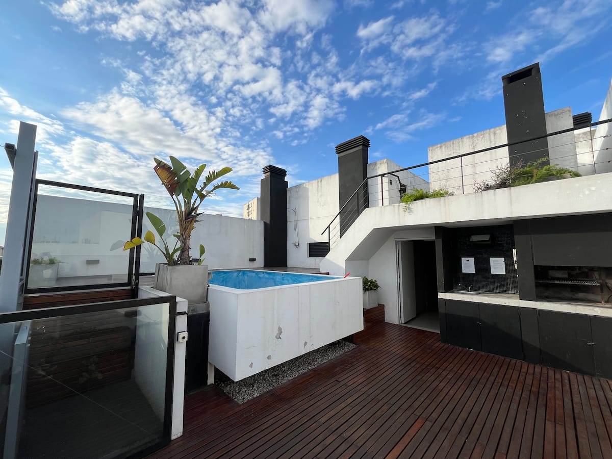 Apartamento tipo kitnet com varanda e área de churrasco privativa. Fica de frente para o Mercado de las Pulgas. A unidade está no bairro Colegiales.