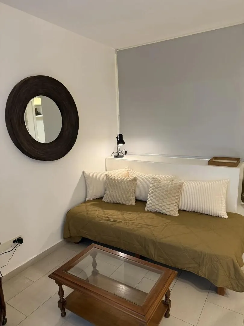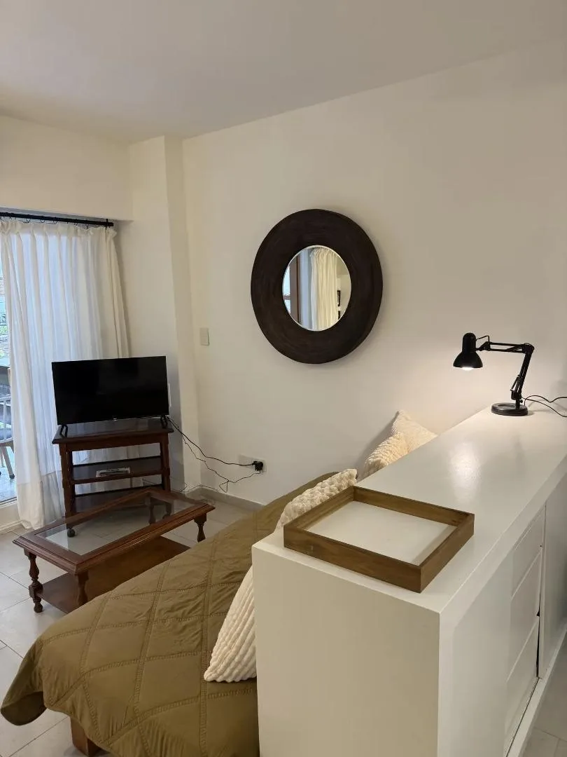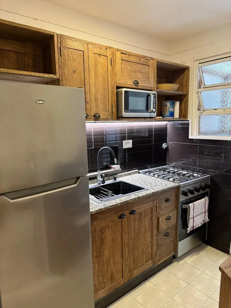 Kitnet (monoambiente) com varanda-terraço em Las Cañitas, em Av. Jorge Newbery entre Av. del Libertador e Migueletes. Unidade equipada com fechadura eletrônica, cortina de enrolar elétrica, Smart TV e Wi-Fi de fibra óptica, além de ar-condicionado frio/calor. Cozinha independente com geladeira com freezer GAFA, micro-ondas BGH e fogão industrial, e área de lavanderia com lavadora instalada. Aluguel temporário com mínimo de 90 dias por US$ 750; há opção de contrato tradicional por 2 anos.