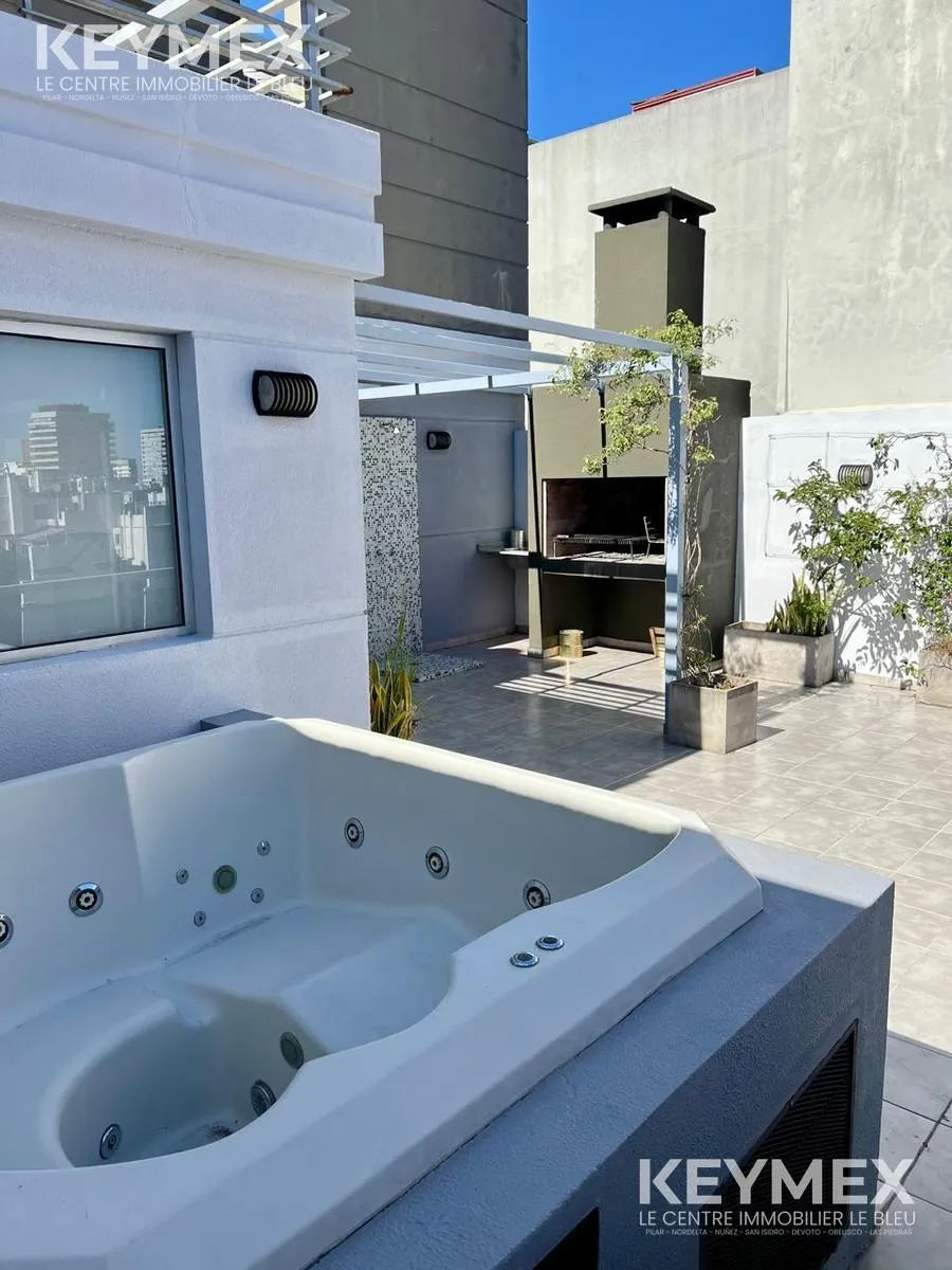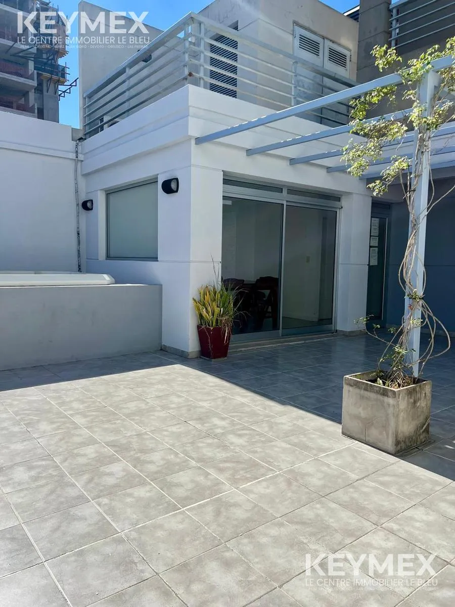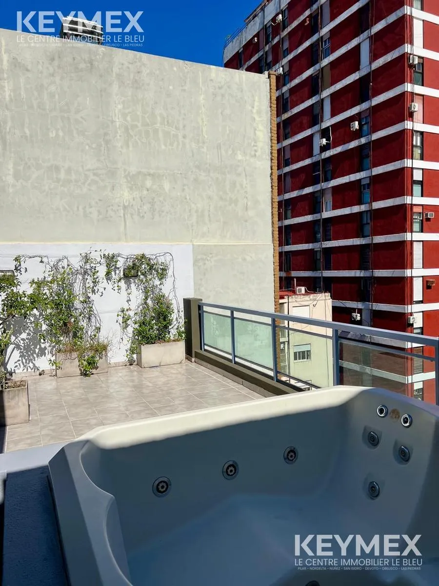 Kitnet mobiliada para locação em Colegiales, apto profissional, com varanda corridas de fundos. 30,4 m² cobertos e 4,2 m² de varanda; unidade recém-pintada, com piso de porcelanato. Sala de estar e jantar com janela e acesso à varanda; água quente central, forno elétrico e fogão (4 bocas) integrados, split frio-calor e banheiro com bancada em mármore Sahara. O prédio tem SUM com área de churrasco, hidromassagem e solarium, além de lavanderia. Locação com contrato de 2 anos, reajuste trimestral p