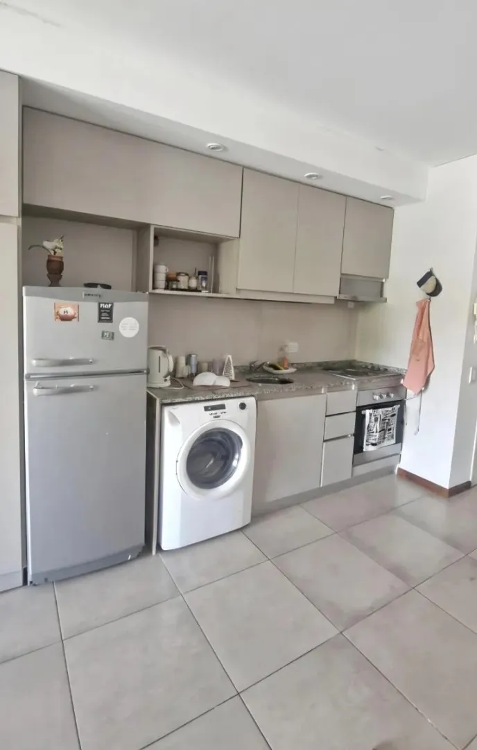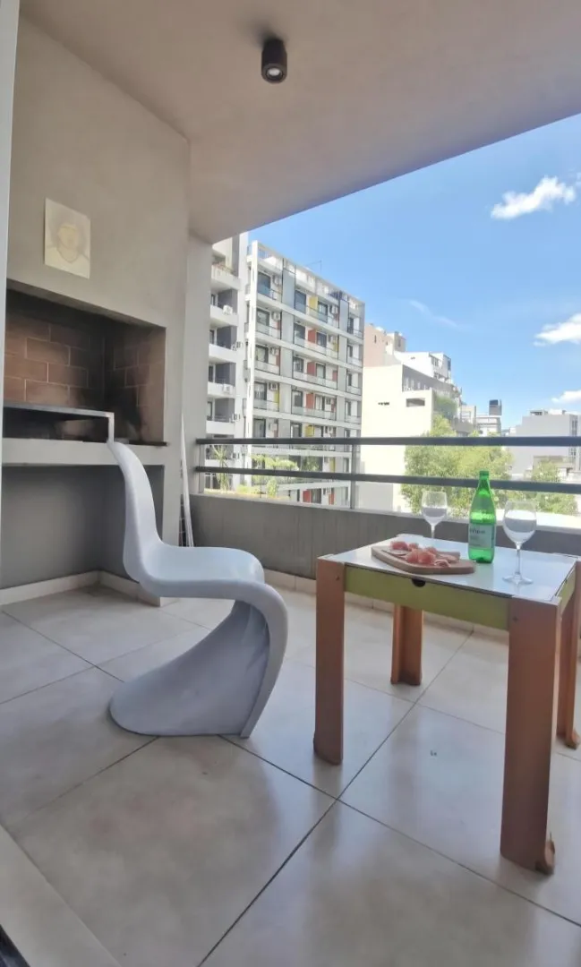 Studio mobiliado de 38 m² em Colegiales, com ambientes integrados e grandes janelas. Inclui varanda-terraço com churrasqueira própria e itens de cozinha. O prédio tem terraço comum com hidromassagem. Aluguel temporal por USD 850, com WiFi, luz e água incluídos; condomínio de aproximadamente $130.000. Contrato mínimo de 6 meses e máximo de 1 ano, com possibilidade de extensão; entrada imediata em maio.
