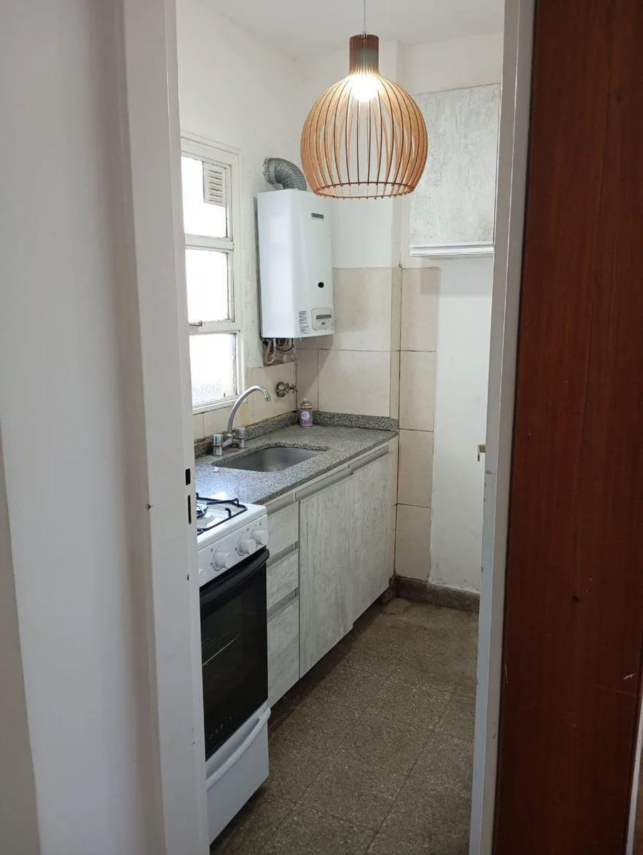 Kitnet (monoambiente) para alugar em San Telmo, com banheiro completo com box, cozinha separada e equipada e varanda com vista para a rua. O imóvel está em bom estado de conservação. Requer fiança via seguro de caución, comprovante de renda e contrato de 24 meses com atualização pelo índice de IPC, além de aluguel e depósito.