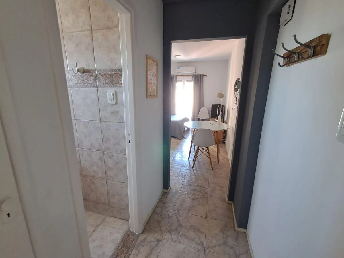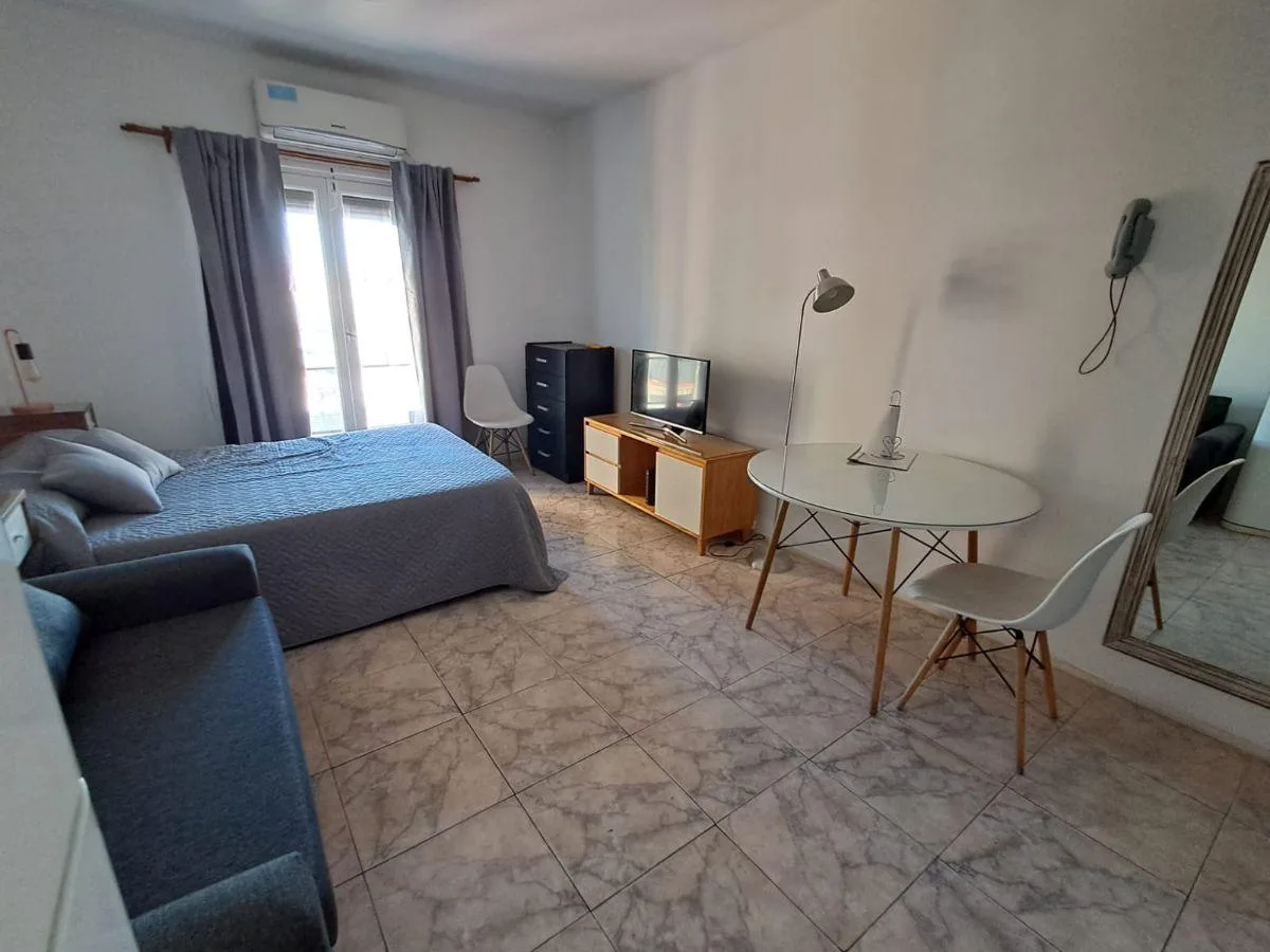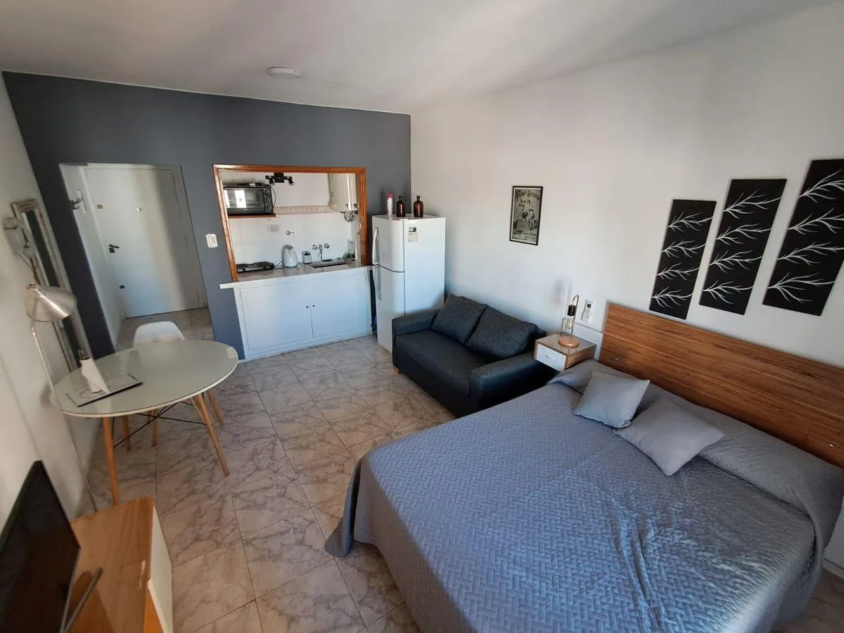 Apartamento tipo kitnet em andar alto em Montserrat, com mobiliário e eletrodomésticos. Inclui roupa de cama, cama de casal, TV smart e conjunto completo de louças, com parte do equipamento novo. Tem varanda francesa com vista aberta para a cidade e fica a 1 quadra da linha C do metrô, além de estar a poucas quadras de San Telmo e a 10 quadras de Puerto Madero. Contrato de 24 meses com reajuste trimestral pelo IPC; são solicitados garantidor de CABA ou seguro de caución, comprovação de renda e p