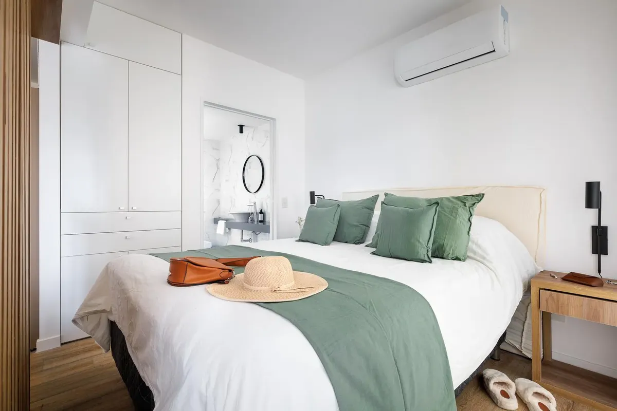 Apartamento studio em San Telmo com terraço privativo e acesso à piscina do edifício. Conta com área de lavanderia e encarregado 24 horas. Inclui luz, água, ABL e WiFi. Não inclui condomínio.