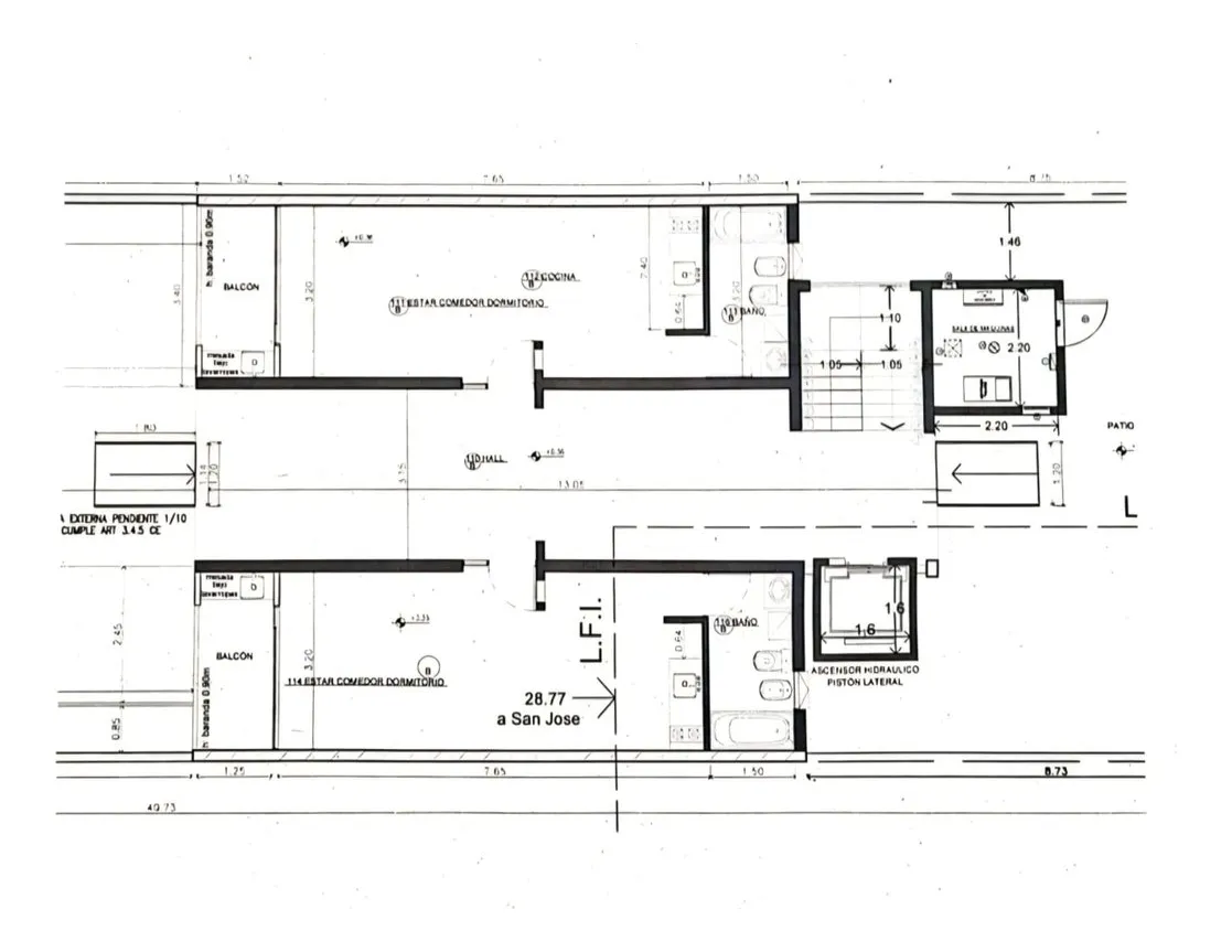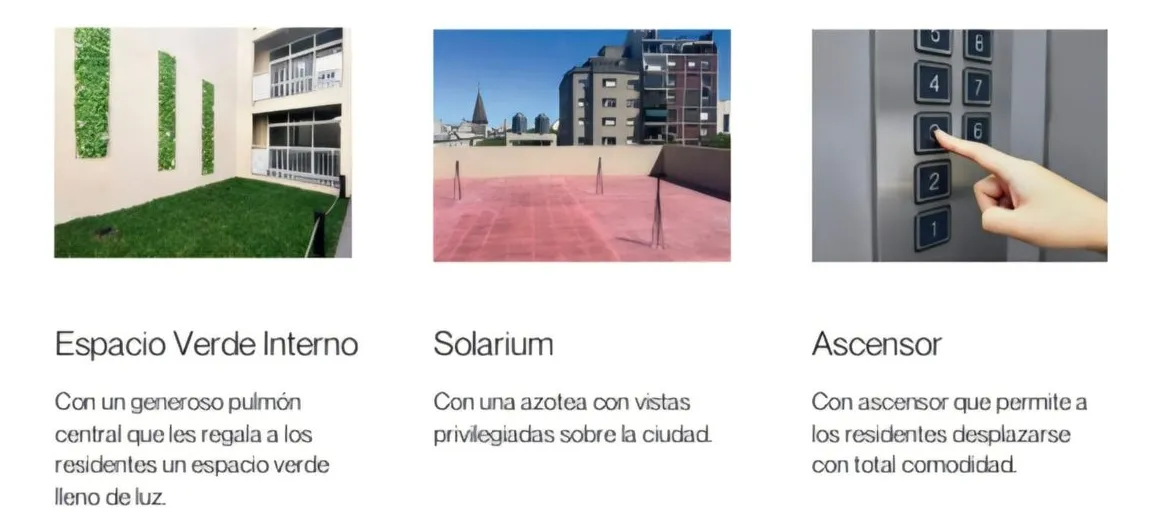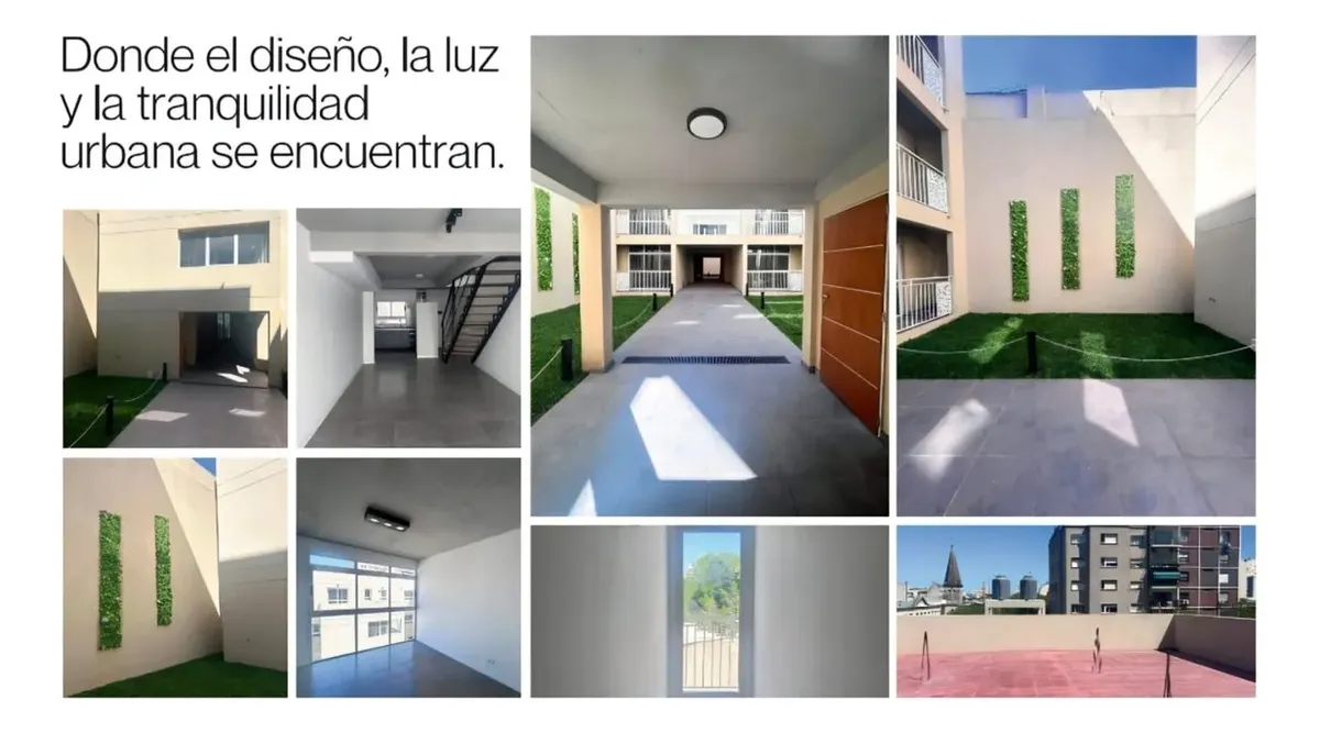 Kitnet (1 ambiente) para alugar em San José, Constitución, com 36 m² no total, sendo 31 m² cobertos e 4 m² semicobertos, em planta baixa de um prédio de 3 andares. Fica de fundos e tem varanda. O ambiente principal inclui área de descanso, zona de trabalho e banheiro completo. O prédio tem elevador e solarium; há áreas verdes.