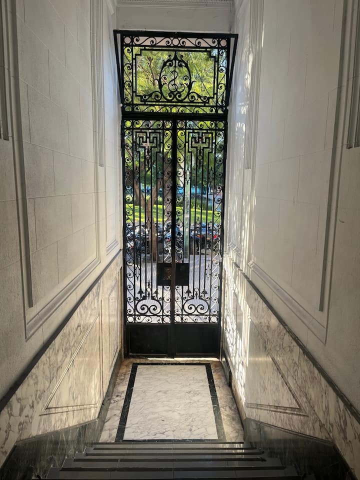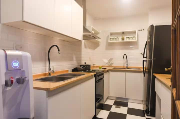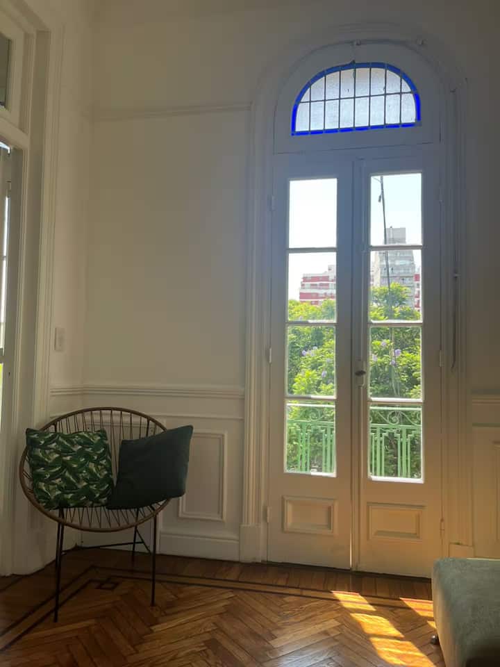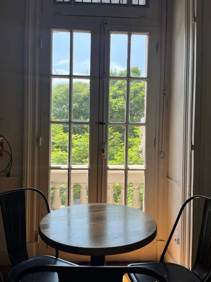 Apartamento tipo kitnet em Constitución, no 2º andar. O anúncio situa o imóvel na Avenida 9 de Julio, a poucos metros da estação de metrô, em frente ao Metrobus e à estação ECOBICI.