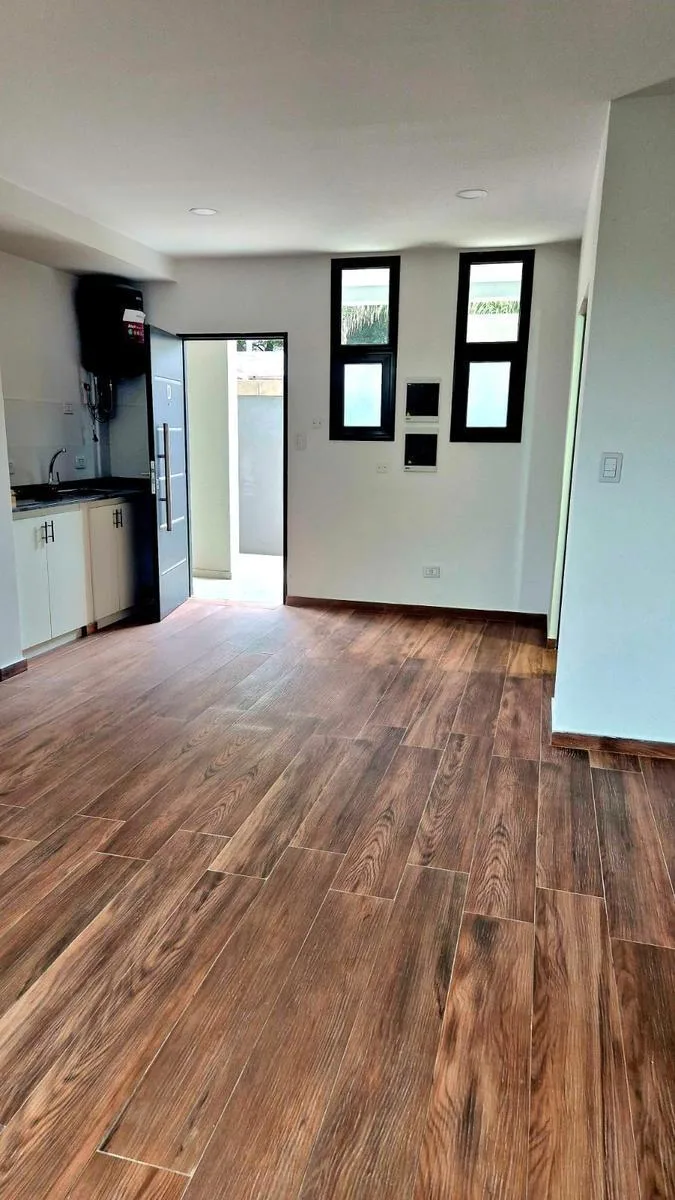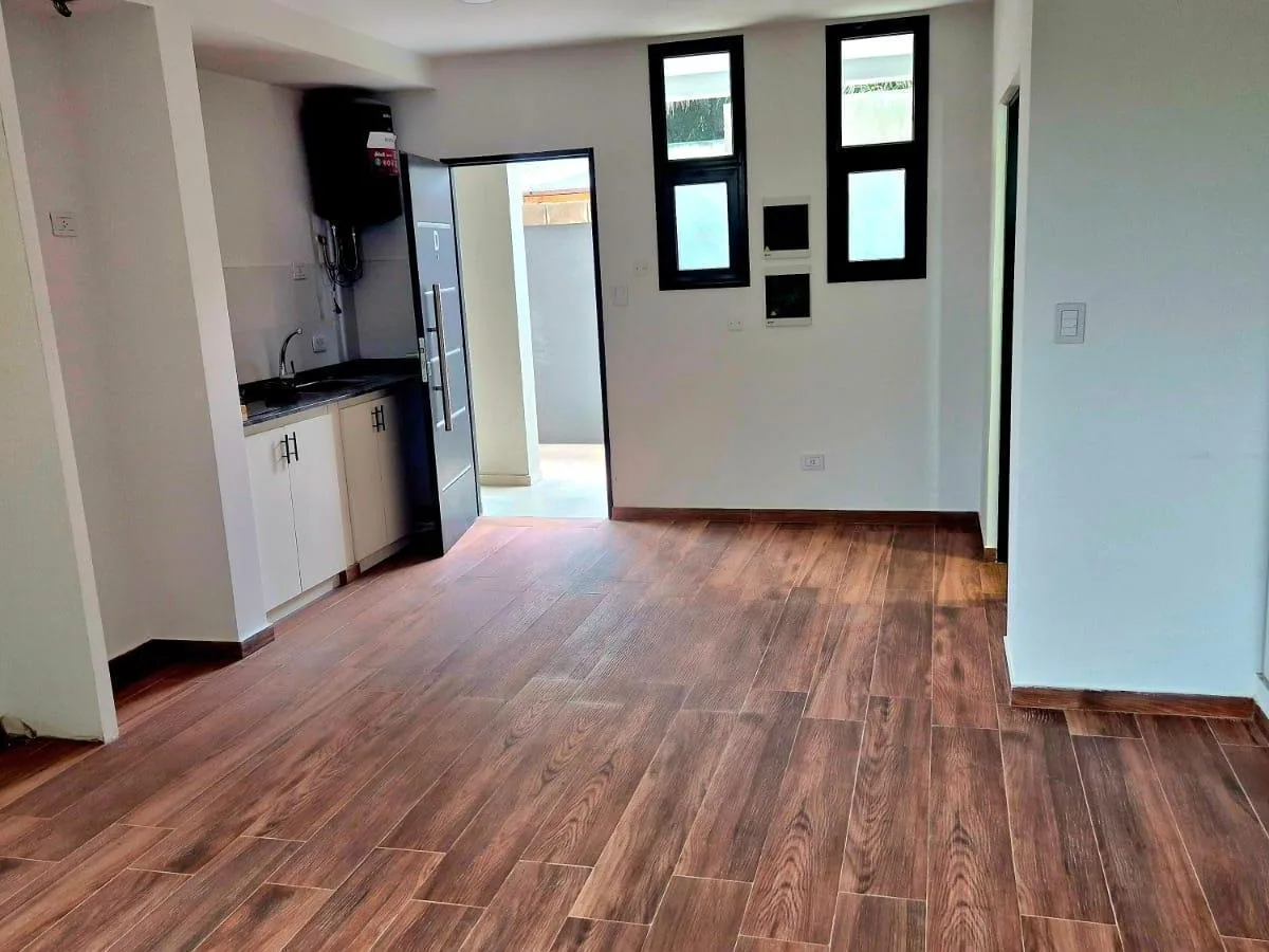 Kitnet térrea (piso térreo) novo (nunca habitado) com cozinha integrada e pátio. Inclui ar-condicionado e aquecimento por laje radiante. Prédio com salão comunitário e área de churrasco na cobertura. Sistema totalmente elétrico e condomínio baixo. Localizado a uma quadra de Av. San Martin, a 4 quadras do Colegio Preuniversitario de la UBA e do Distrito Boero. Não aceita animais de estimação. Exige garantia do proprietário e comprovação de renda. Entrada: 1 mês de aluguel como depósito, 1 mês adi