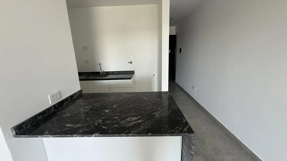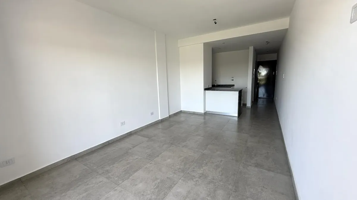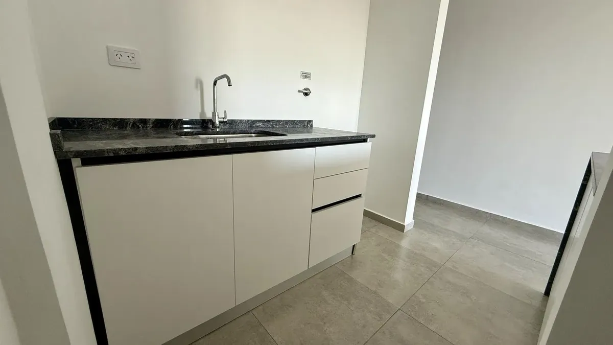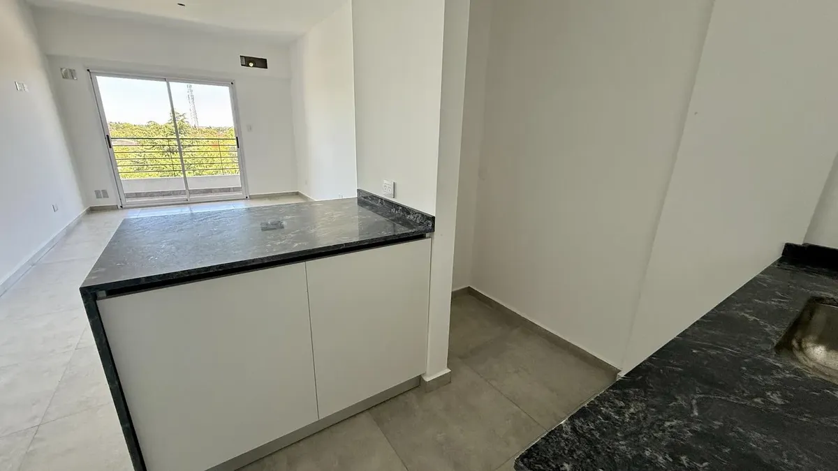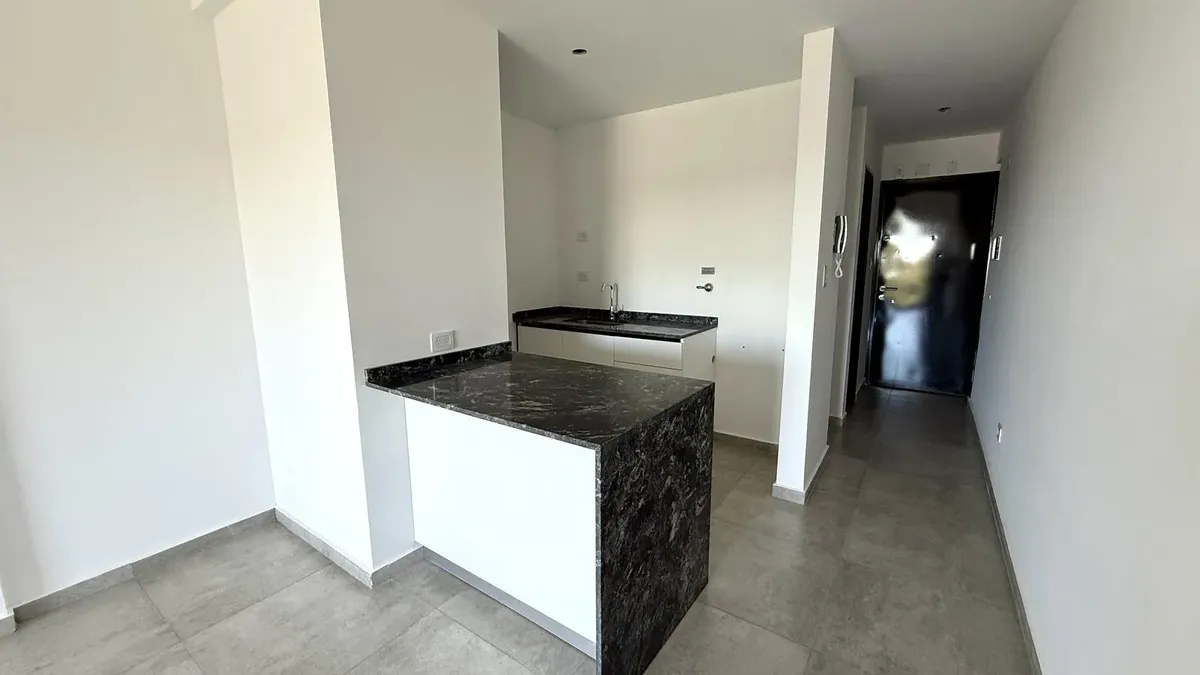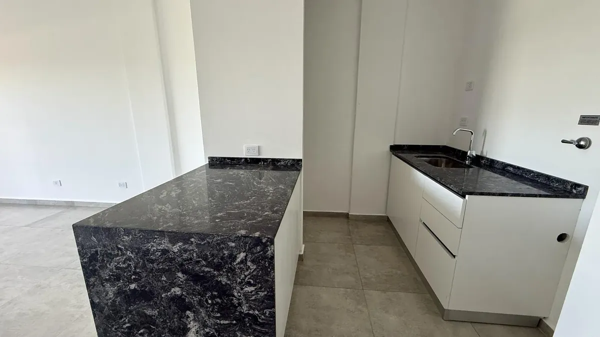Kitnet de 1 ambiente novo (nunca habitado) com cerca de 38 m², no 4º andar de um edifício de 4 pisos, de fundos com varanda e vista aberta. Cozinha com armário baixo e bancada de granito cinza Mara com cuba de aço inox, além de torneiras para cozinha e banheiro. Inclui aquecedor de água elétrico de 30 litros, banheiro completo com box, preparação para ar-condicionado e previsão para conexão de máquina de lavar; sem vaga de garagem. Fica entre Calle Rojas e Mariano Acosta, em Monte Grande, perto