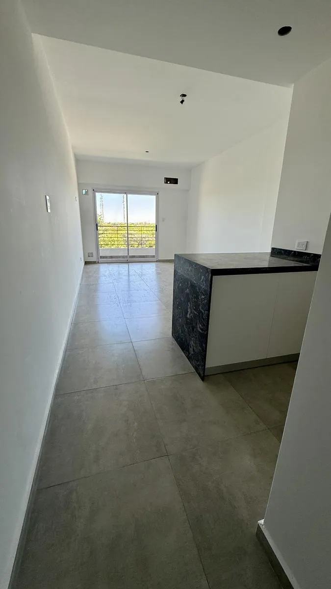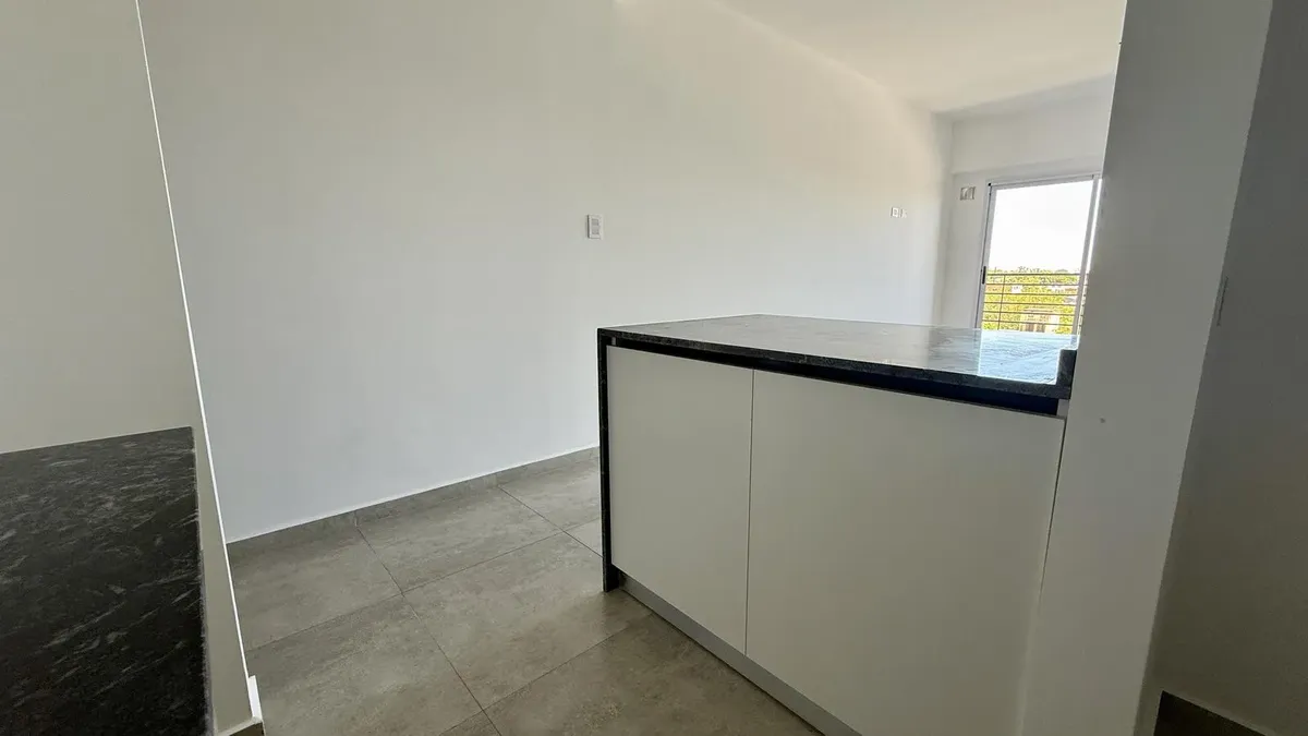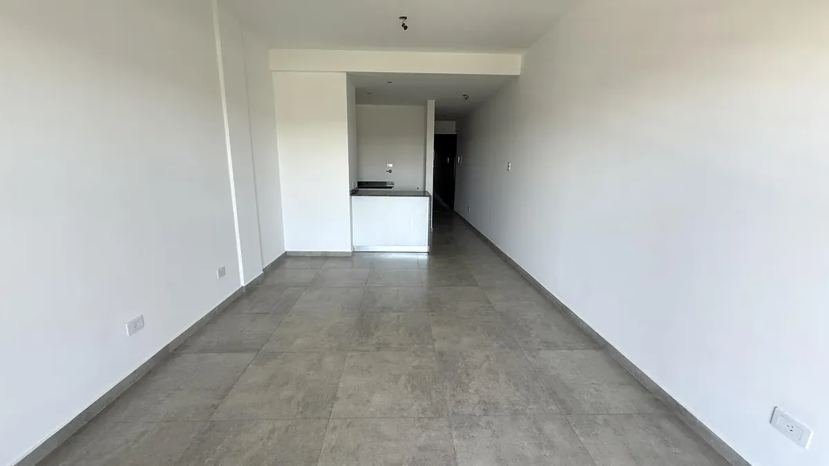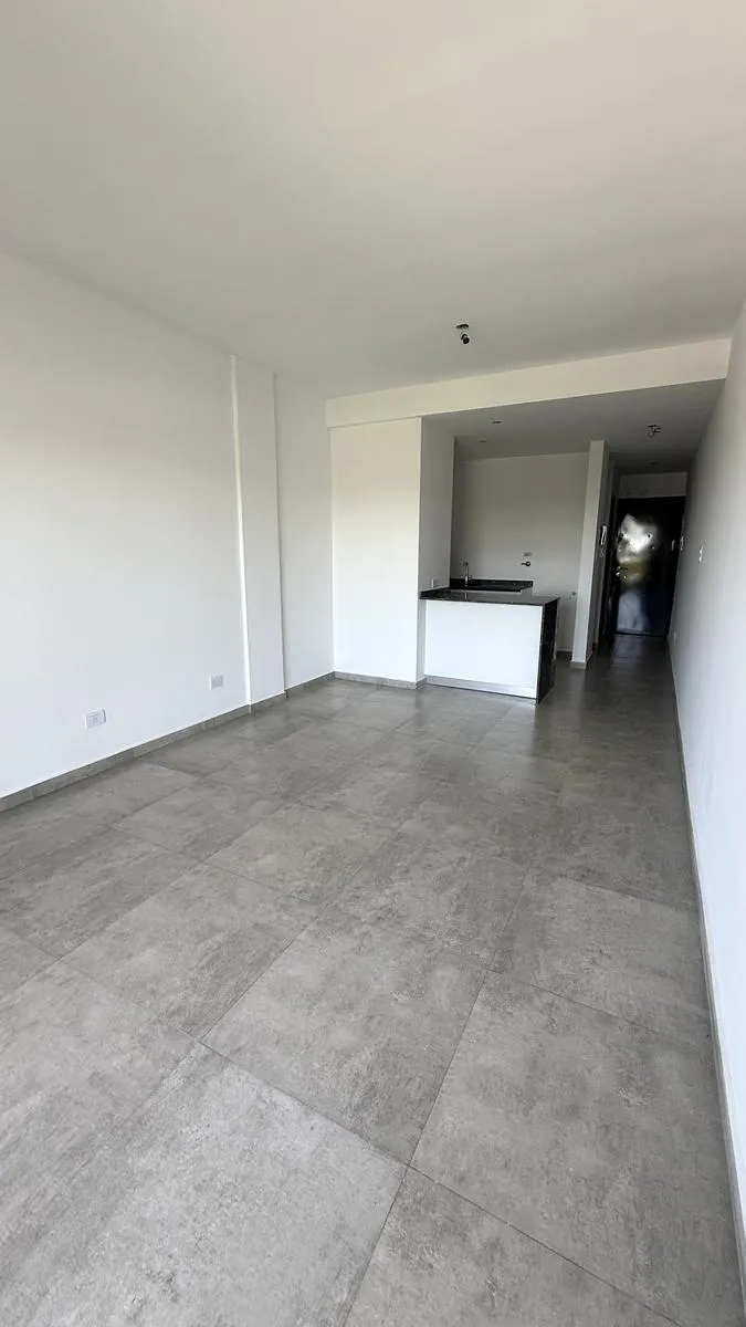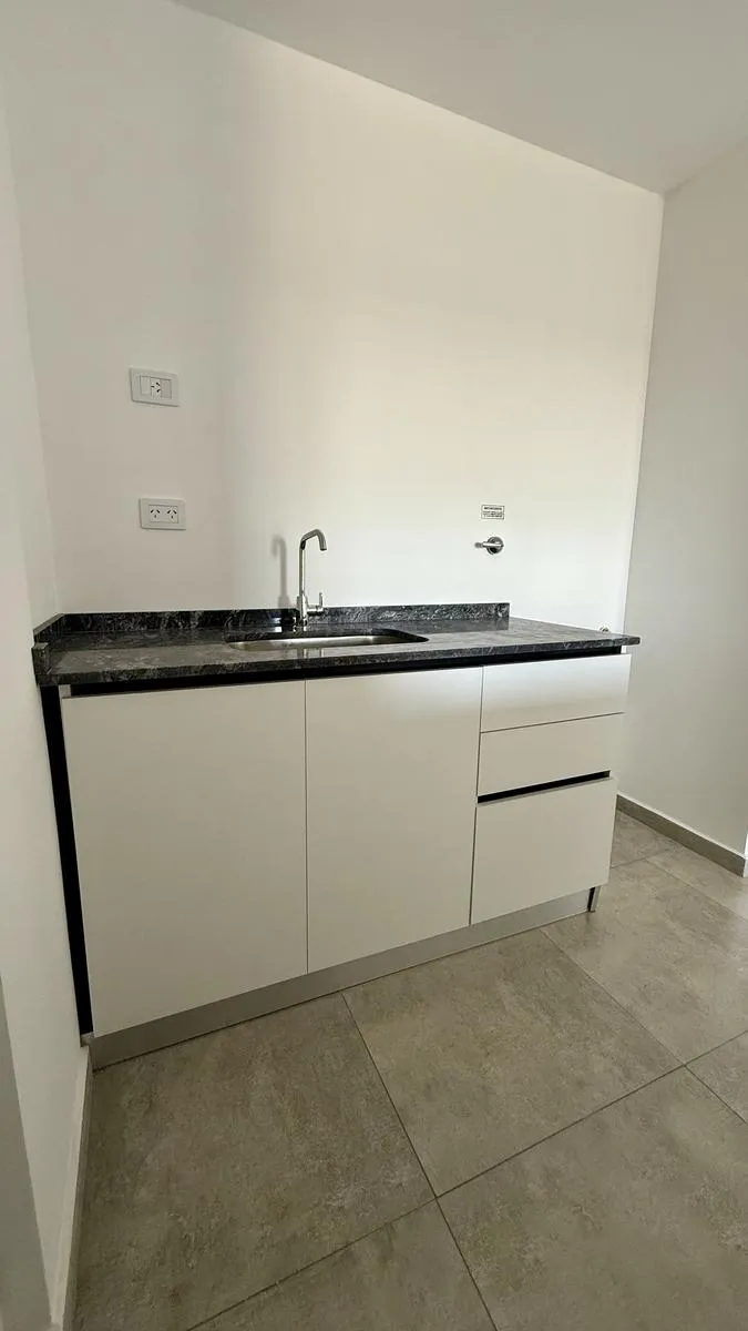 Kitnet de 1 ambiente novo (nunca habitado) com cerca de 38 m², no 4º andar de um edifício de 4 pisos, de fundos com varanda e vista aberta. Cozinha com armário baixo e bancada de granito cinza Mara com cuba de aço inox, além de torneiras para cozinha e banheiro. Inclui aquecedor de água elétrico de 30 litros, banheiro completo com box, preparação para ar-condicionado e previsão para conexão de máquina de lavar; sem vaga de garagem. Fica entre Calle Rojas e Mariano Acosta, em Monte Grande, perto