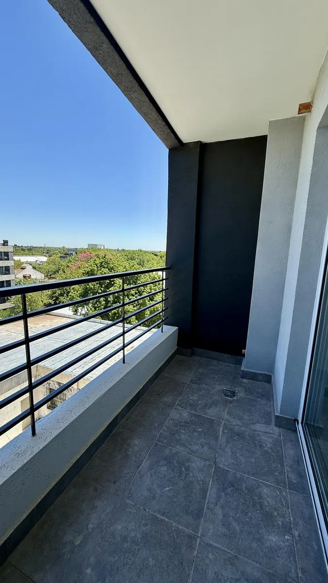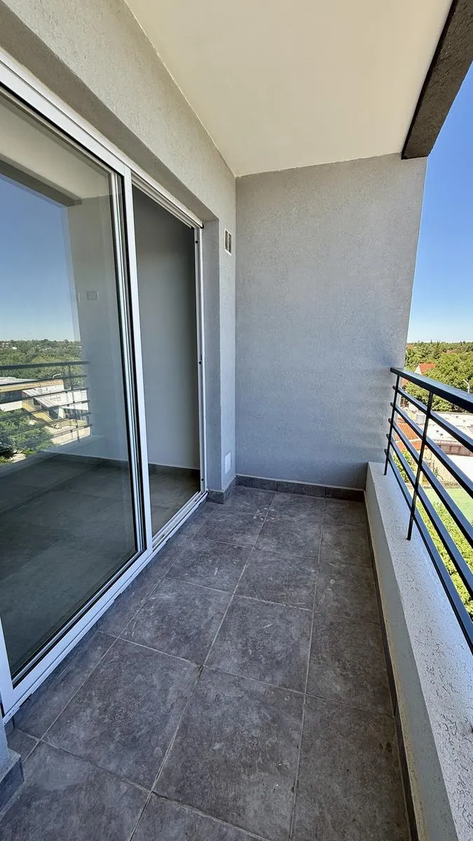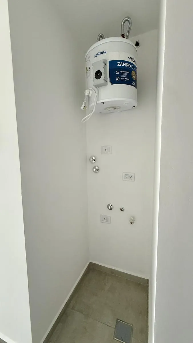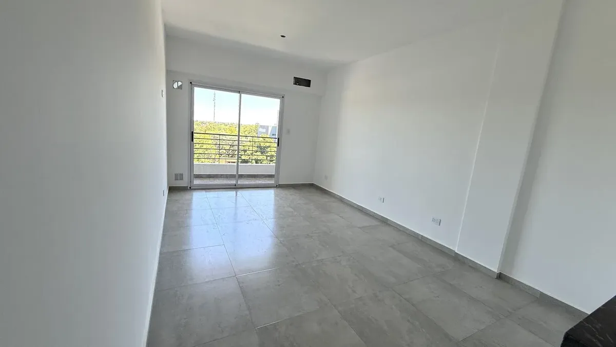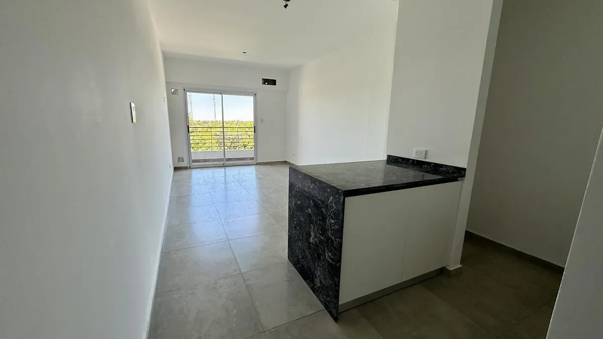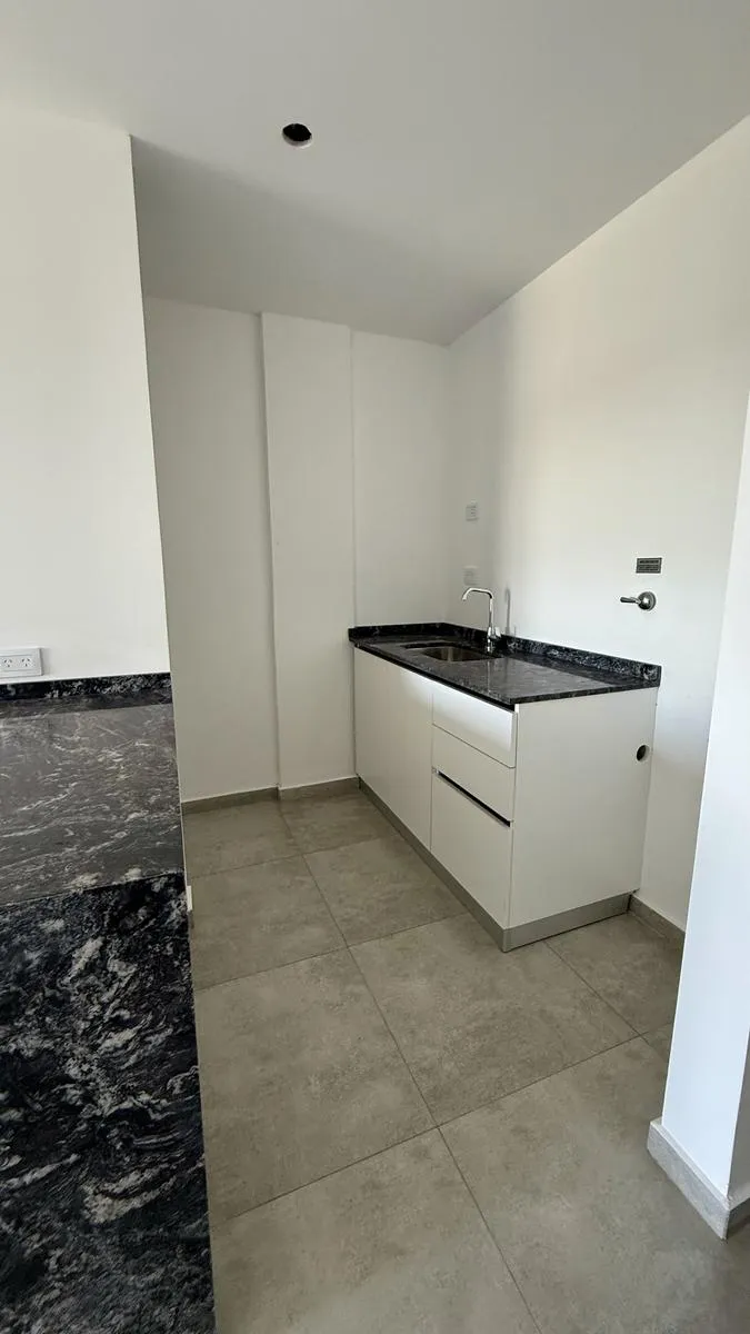 Kitnet de 1 ambiente novo (nunca habitado) com cerca de 38 m², no 4º andar de um edifício de 4 pisos, de fundos com varanda e vista aberta. Cozinha com armário baixo e bancada de granito cinza Mara com cuba de aço inox, além de torneiras para cozinha e banheiro. Inclui aquecedor de água elétrico de 30 litros, banheiro completo com box, preparação para ar-condicionado e previsão para conexão de máquina de lavar; sem vaga de garagem. Fica entre Calle Rojas e Mariano Acosta, em Monte Grande, perto