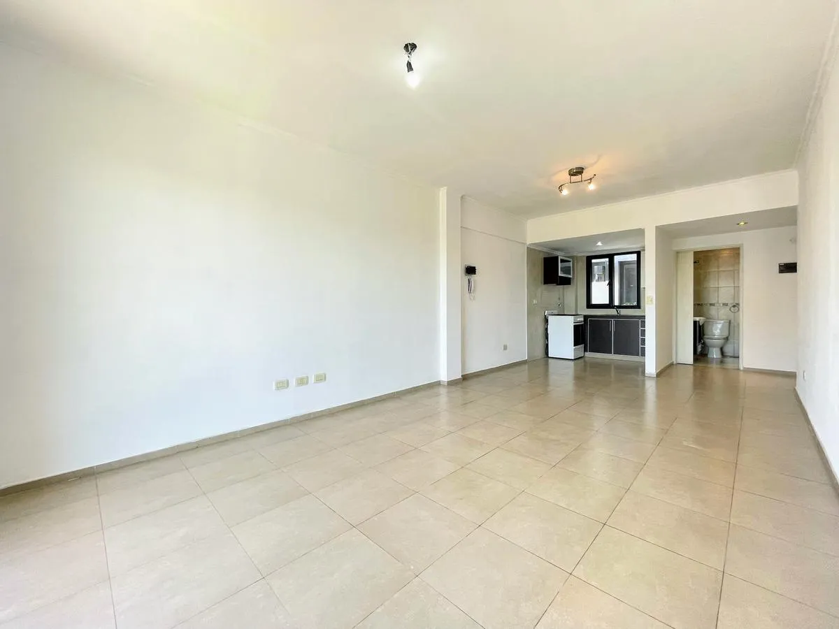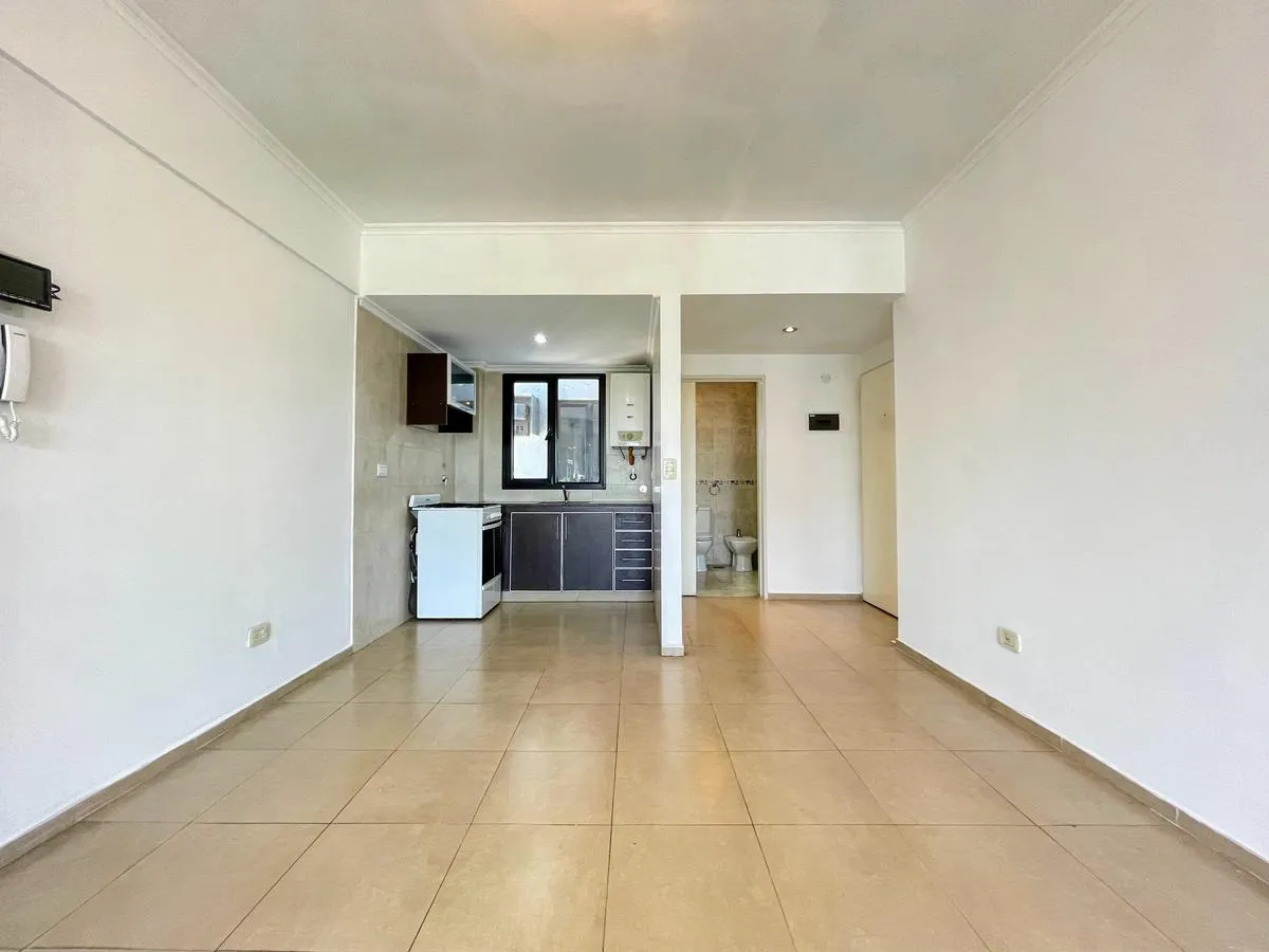 Kitnet de 1 ambiente com 35 m², com varanda (3 x 1,20 m). Cozinha integrada ao ambiente. Há conexão na varanda para lavadora (lavarropas). Banheiro completo com banheira. A metragem e as medidas parciais informadas são aproximadas.